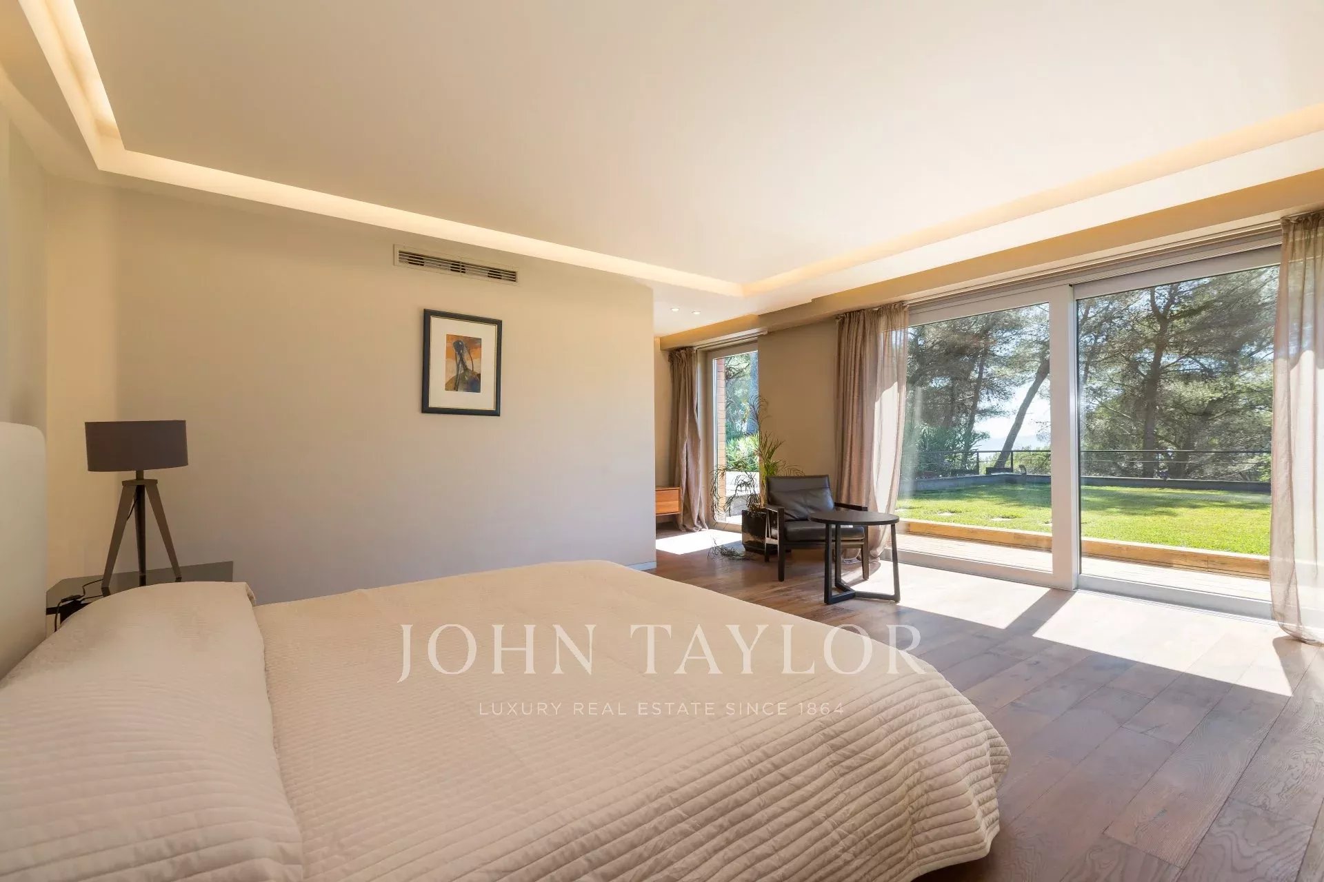 Mit separatem Eingang, Eingangshalle mit Zugang zu zwei Master-Suiten, die sich jeweils zur Terrasse hin öffnen und ein großes Schlafzimmer (Kingsize-Bett), ein Ankleidezimmer und ein Badezimmer/Dusche/WC bieten.