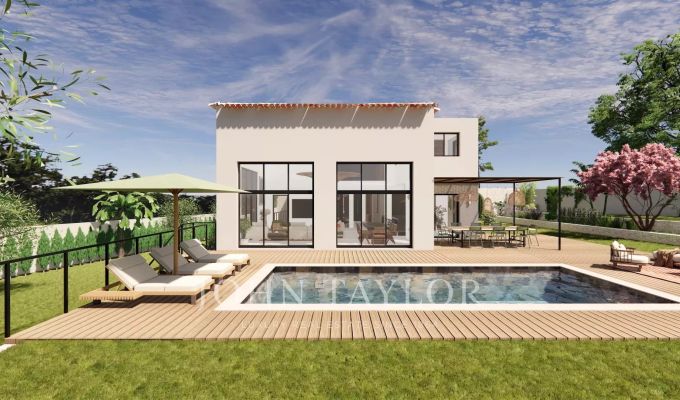 Diese zeitgenössische Villa mit einer Fläche von ca. 490 m² auf zwei Ebenen mit Pool ...
