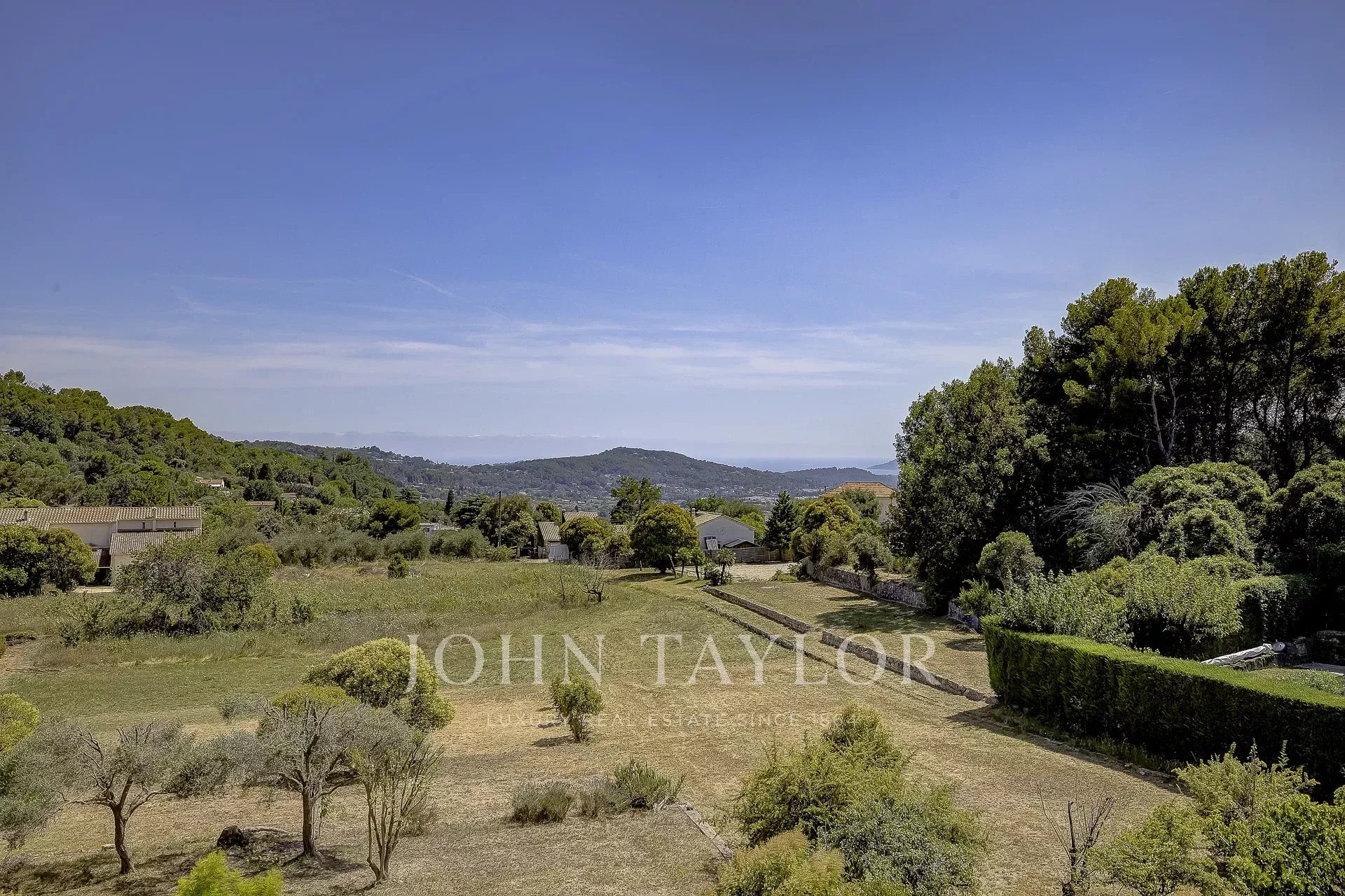 Eingebettet in eine provenzalische Landschaft genießt das Grundstück eine privilegierte Lage und einen freien Blick auf die umliegende Landschaft und einen Blick auf das Meer.