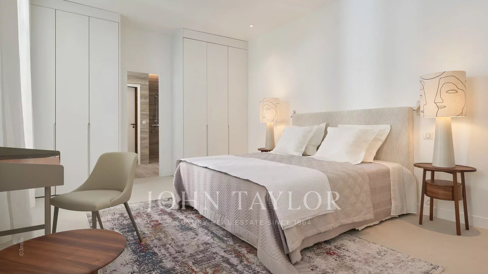 Es ist uneinsehbar und ruhig gelegen, verfügt über eine Wohnfläche von 132 m² und besteht im Erdgeschoss aus einem Wohn- und Esszimmer mit amerikanischer Küche sowie einem Schlafzimmer en suite. Im Obergeschoss befinden sich zwei Schlafzimmer en suite.