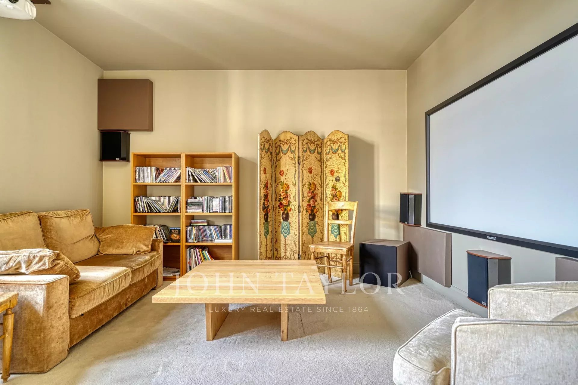 Auf der letzten Ebene, die nicht mit dem Aufzug erreichbar ist, befinden sich ein Kinosaal, eine Waschküche mit Wäschekammer sowie ein separates Apartment, das aus einem Wohnzimmer mit Küche und Blick auf die Chapelle Royale sowie zwei Schlafzimmern besteht.
