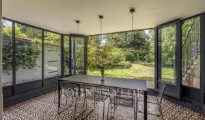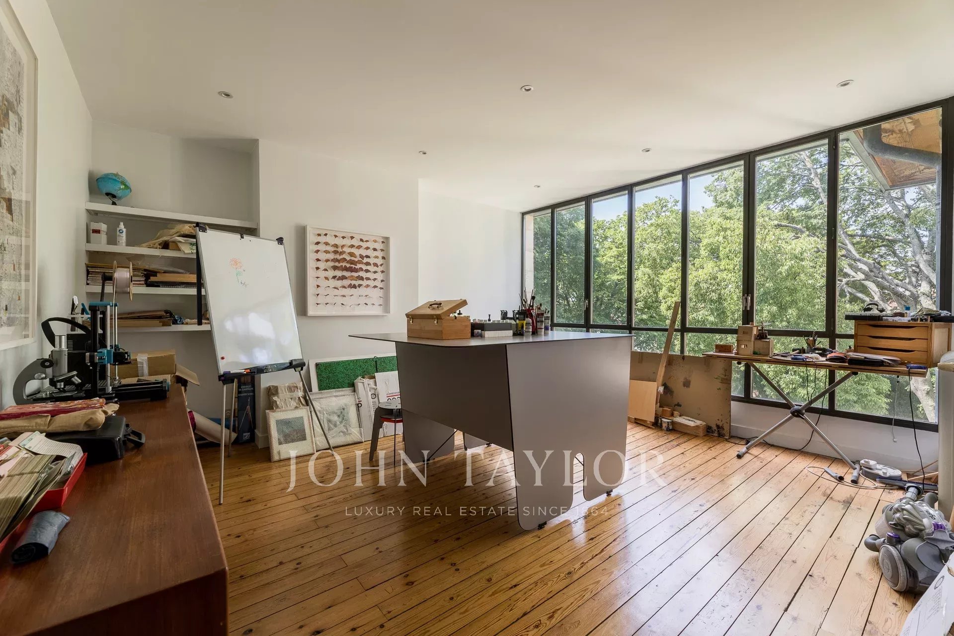 Im zweiten Stock vervollständigen drei weitere Schlafzimmer und ein Atelier, das dank seines Glasdachs zum Garten hin lichtdurchflutet ist, diese außergewöhnliche Immobilie.