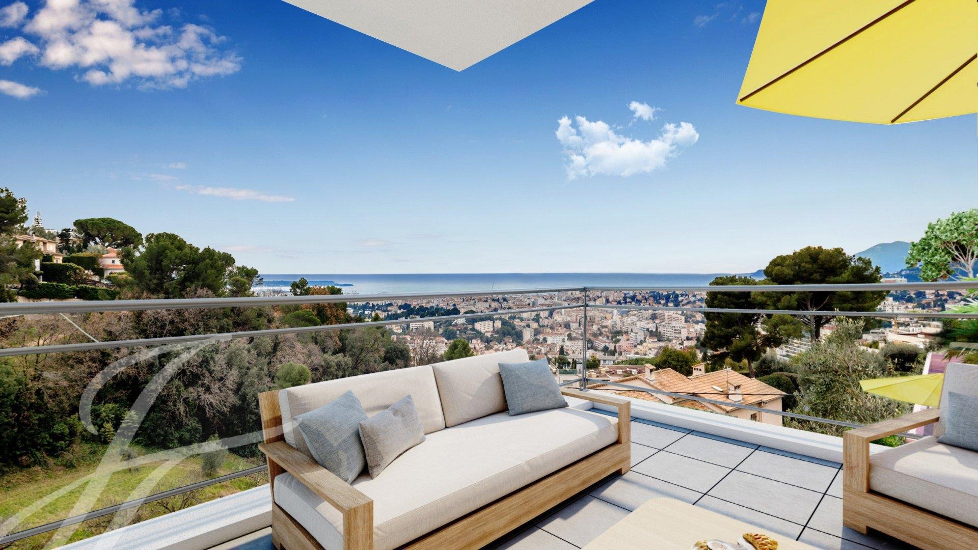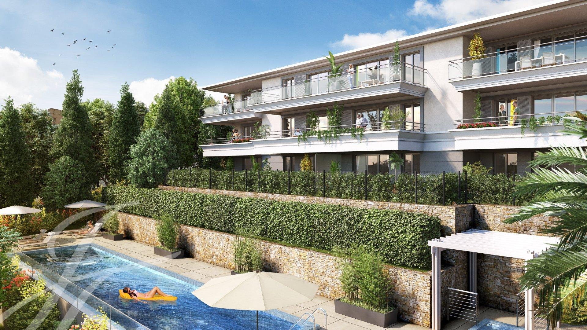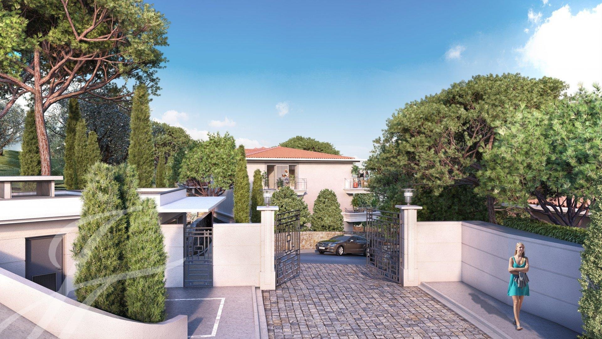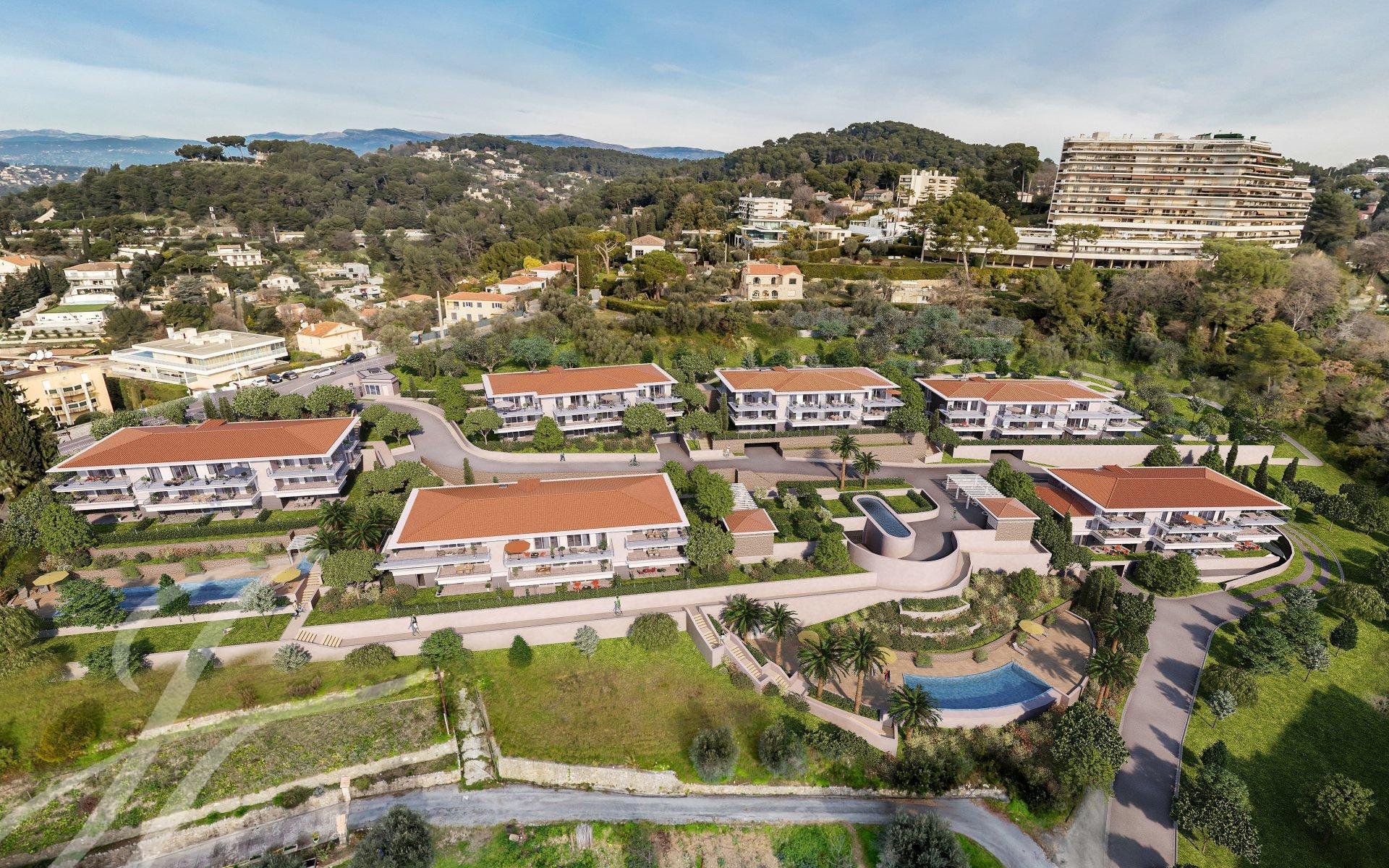 Ideal gelegen auf einem echten Aussichtspunkt mit Panoramablick auf die Bucht von Cannes, die Lérins-Inseln und das Esterel-Massiv, inmitten einer grünen Umgebung mit einem authentischen, geschützten Olivenhain, entsteht ein exklusives, geschlossenes Anwesen von sehr hohem Standard.