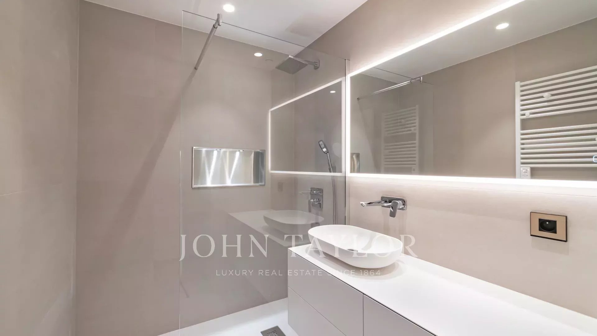 Die Wohnung wurde komplett neu renoviert und besteht aus 4 Zimmern mit einer Wohnfläche von ca. 104 m². Sie besteht aus einem Wohnzimmer, einer halbseparaten Küche, einem Hauptschlafzimmer mit Badezimmer und Ankleidezimmer, zwei weiteren Schlafzimmern und einem Badezimmer.