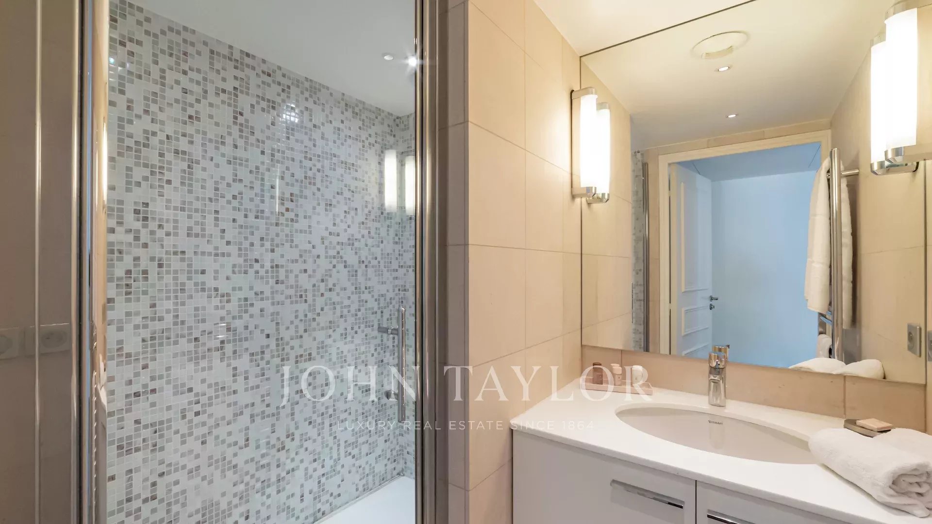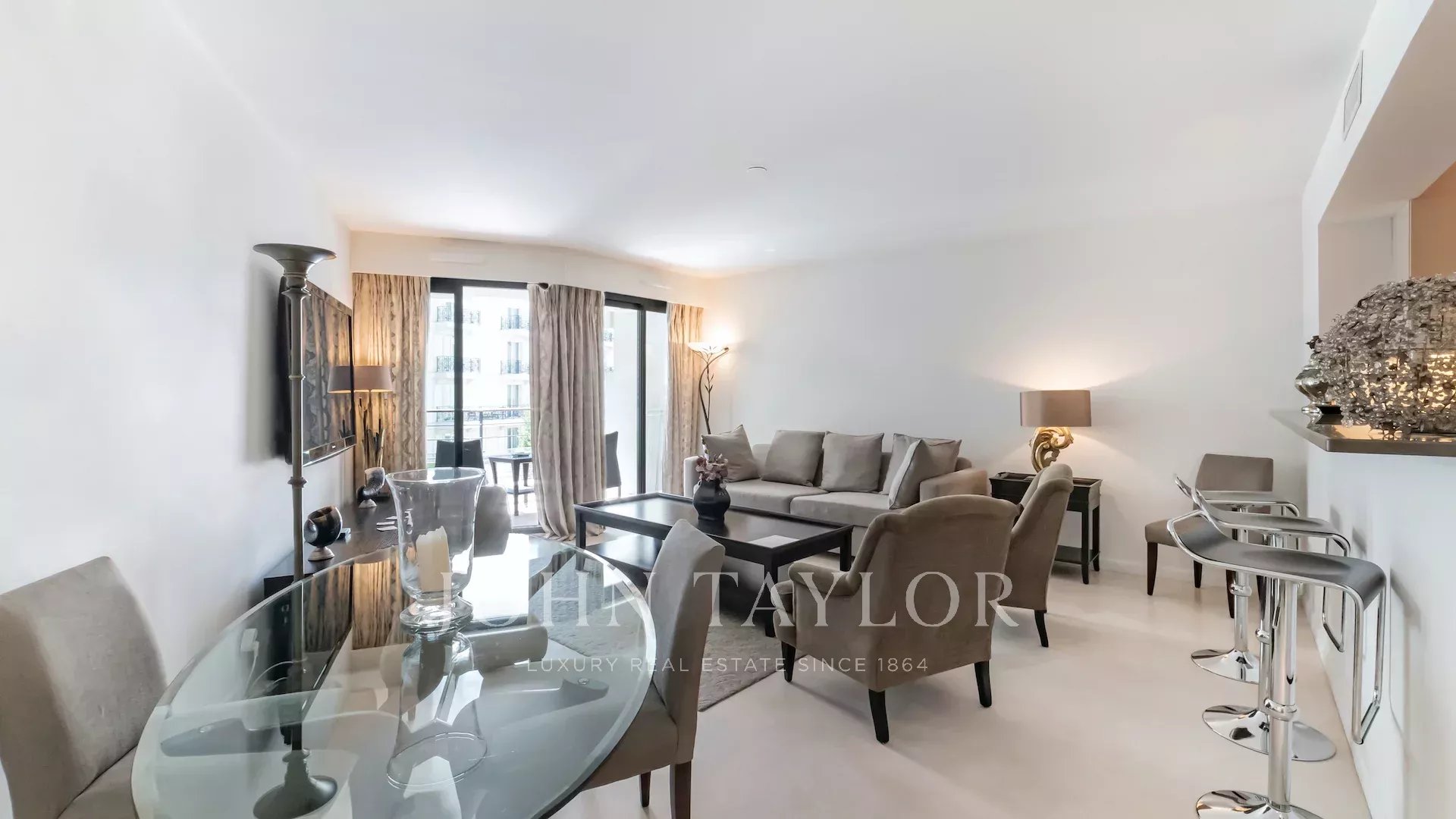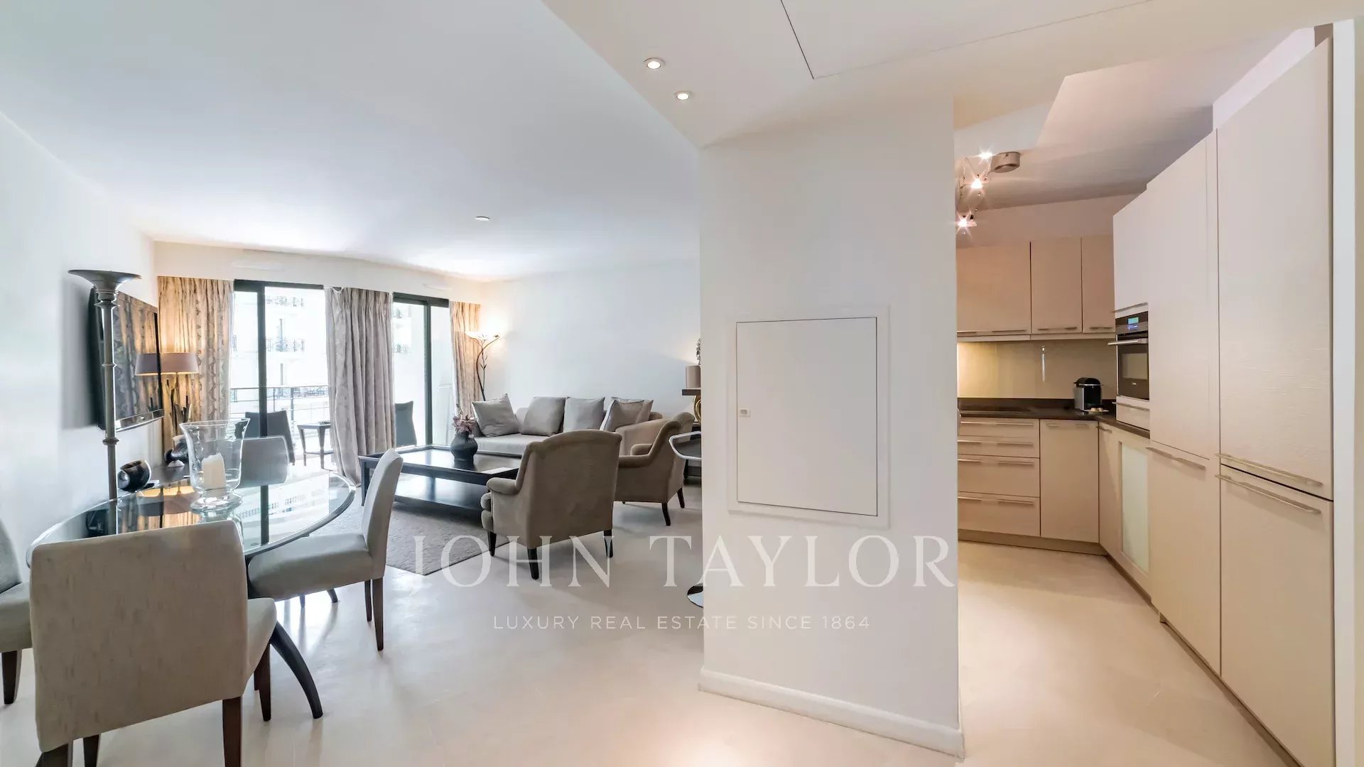 Nur wenige Meter von La Croisette entfernt, in einer luxuriösen Residenz mit Hausmeister, profitiert diese wunderschöne, durchgehende Wohnung von zwei Terrassen und einer idealen Raumaufteilung.