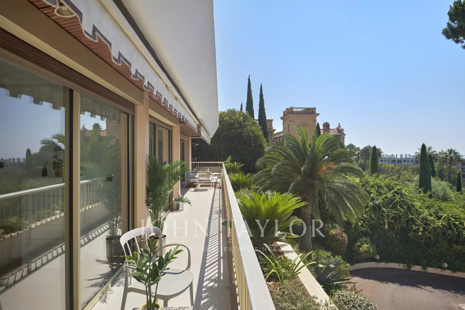 In einer prestigeträchtigen Residenz in Kalifornien mit Pool genießt diese schöne 5-Zimmer-Wohnung einen herrlichen Blick auf das Meer, die Lérins-Inseln und das Estérel-Massiv.
