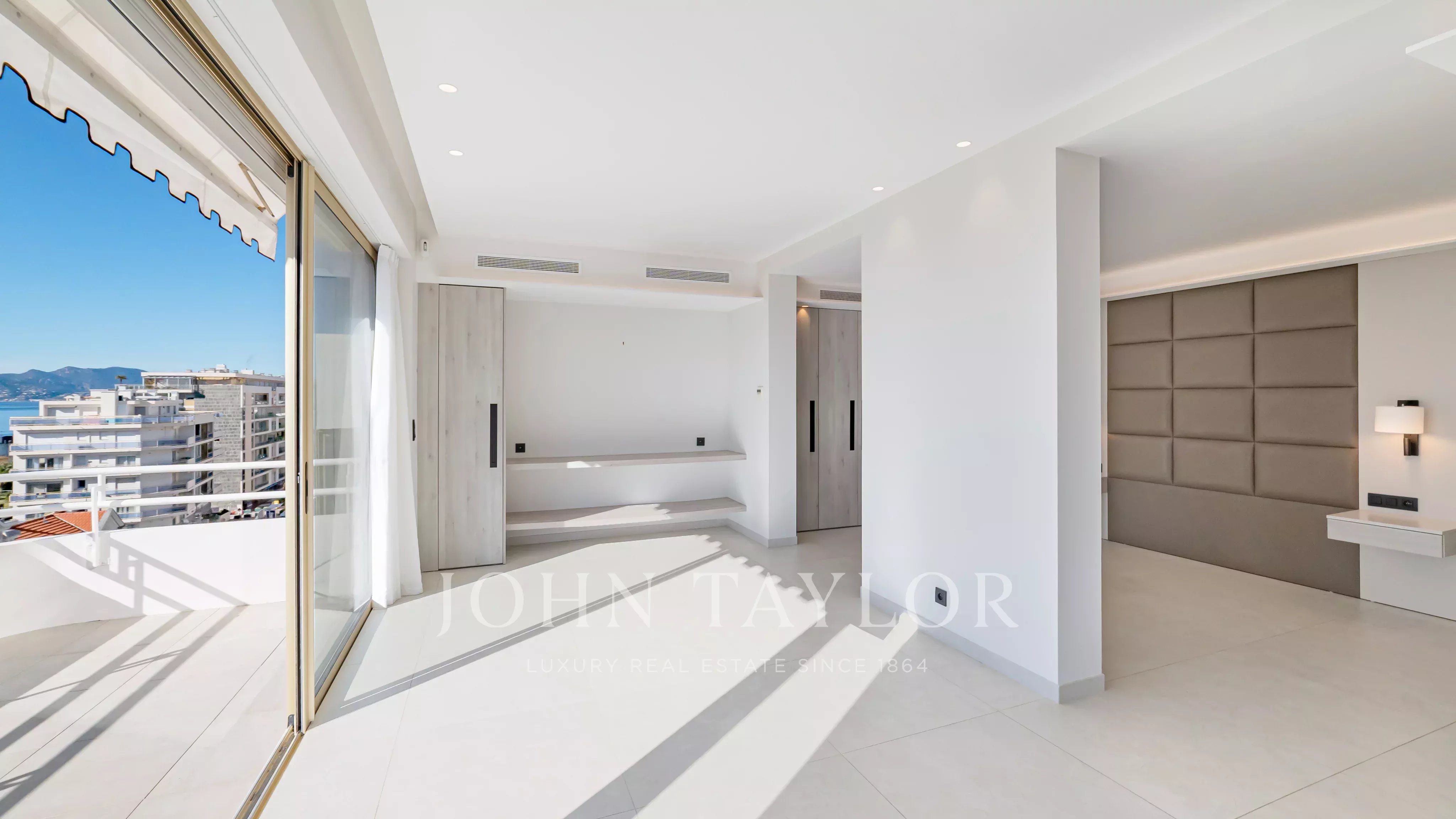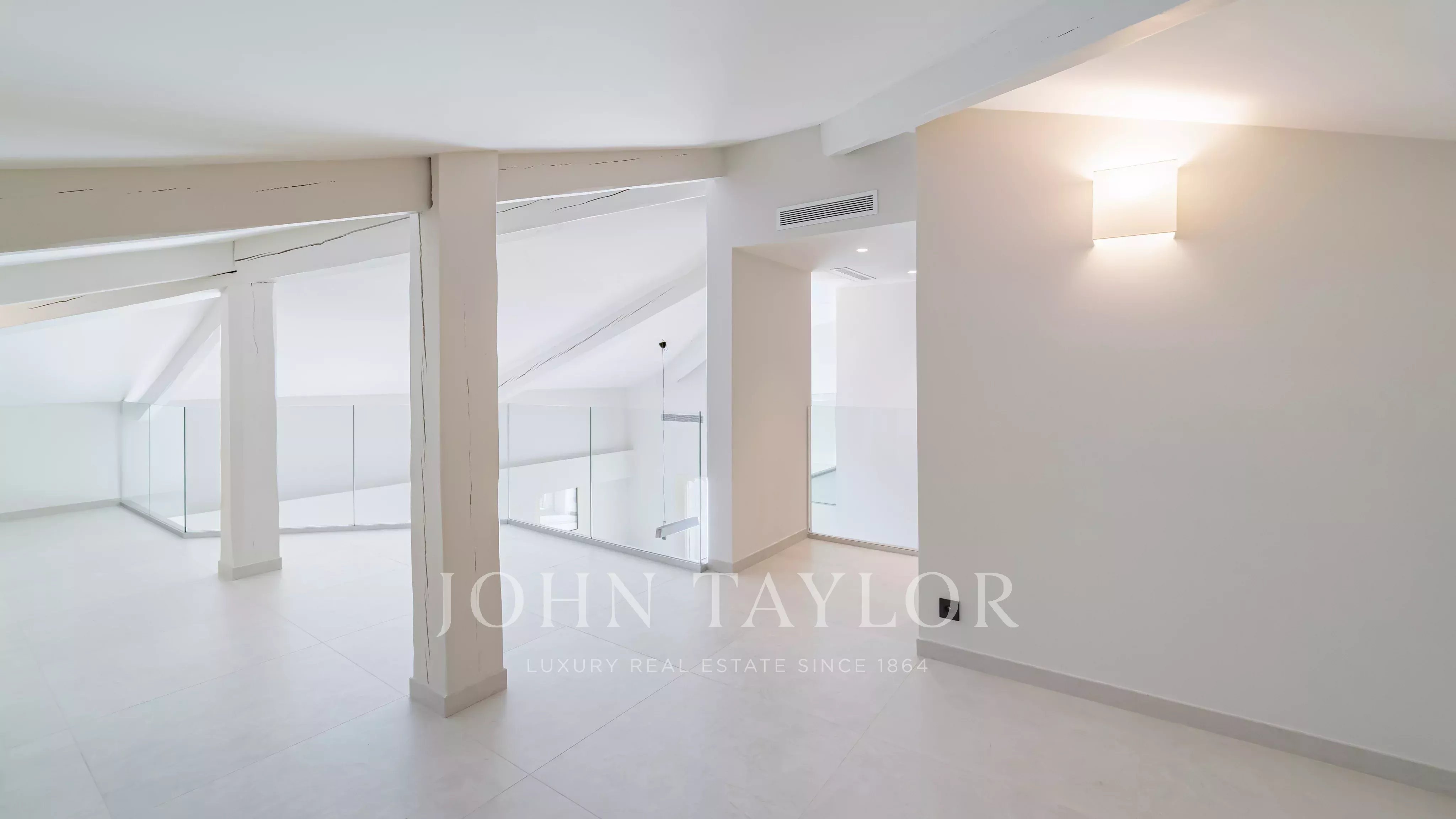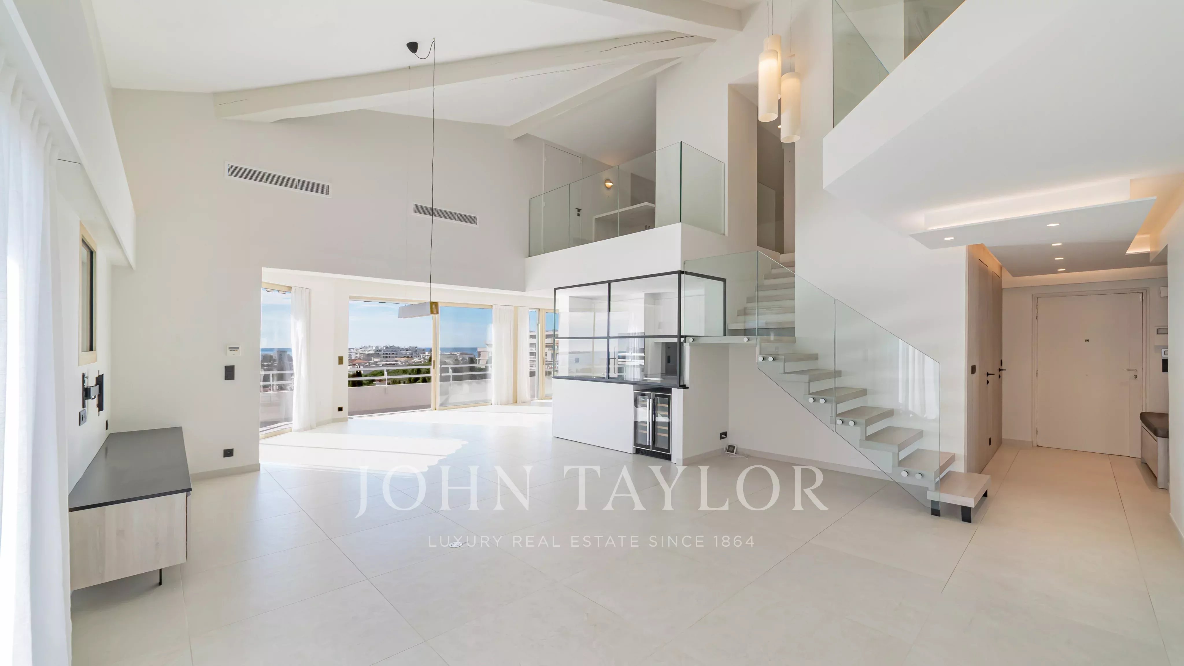 Wunderschönes, komplett renoviertes Duplex-Penthouse, das nur einen Fußweg von La Croisette und den Geschäften entfernt liegt und einen sehr schönen Blick auf das Meer und die Lérins-Inseln bietet.