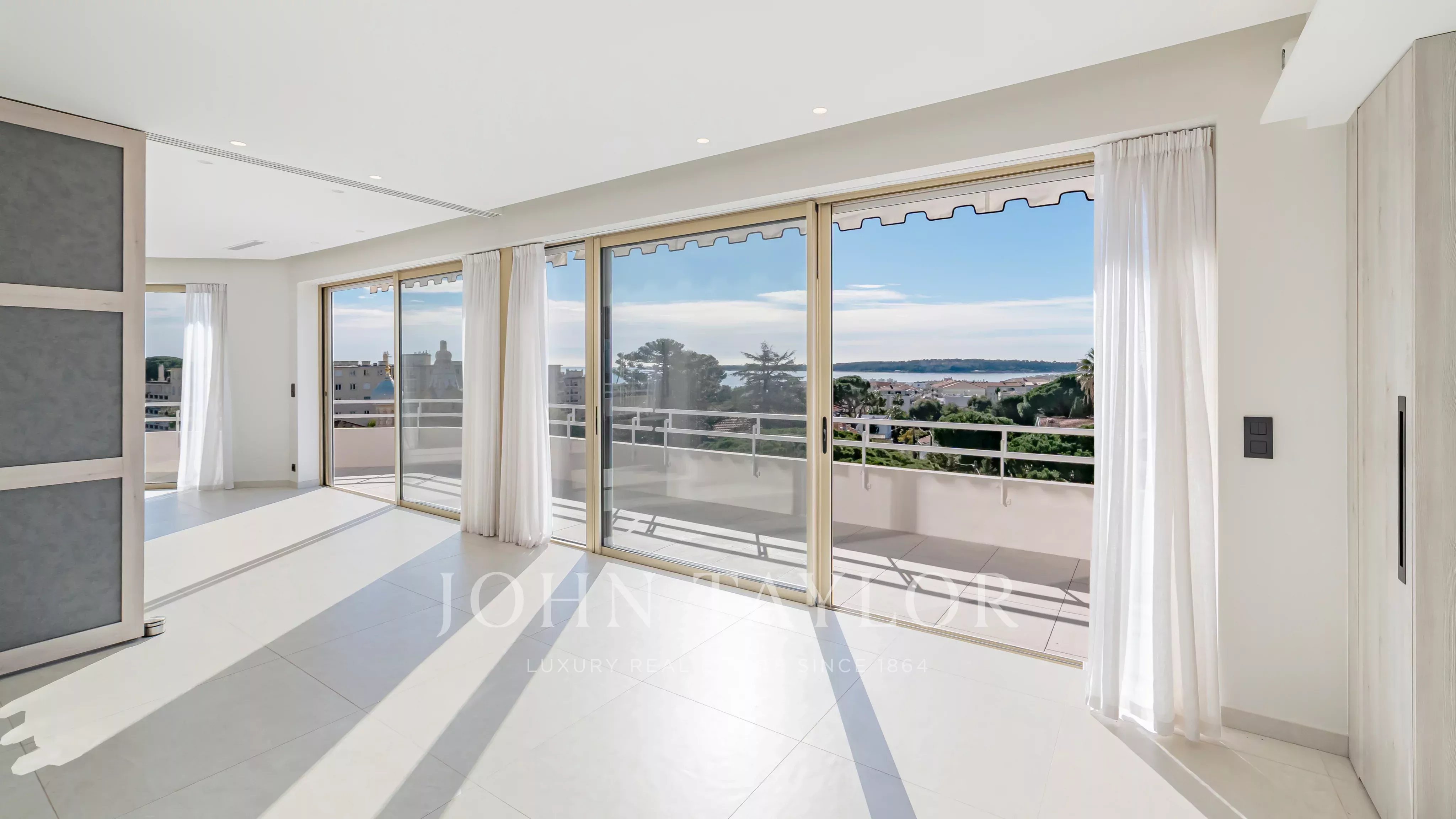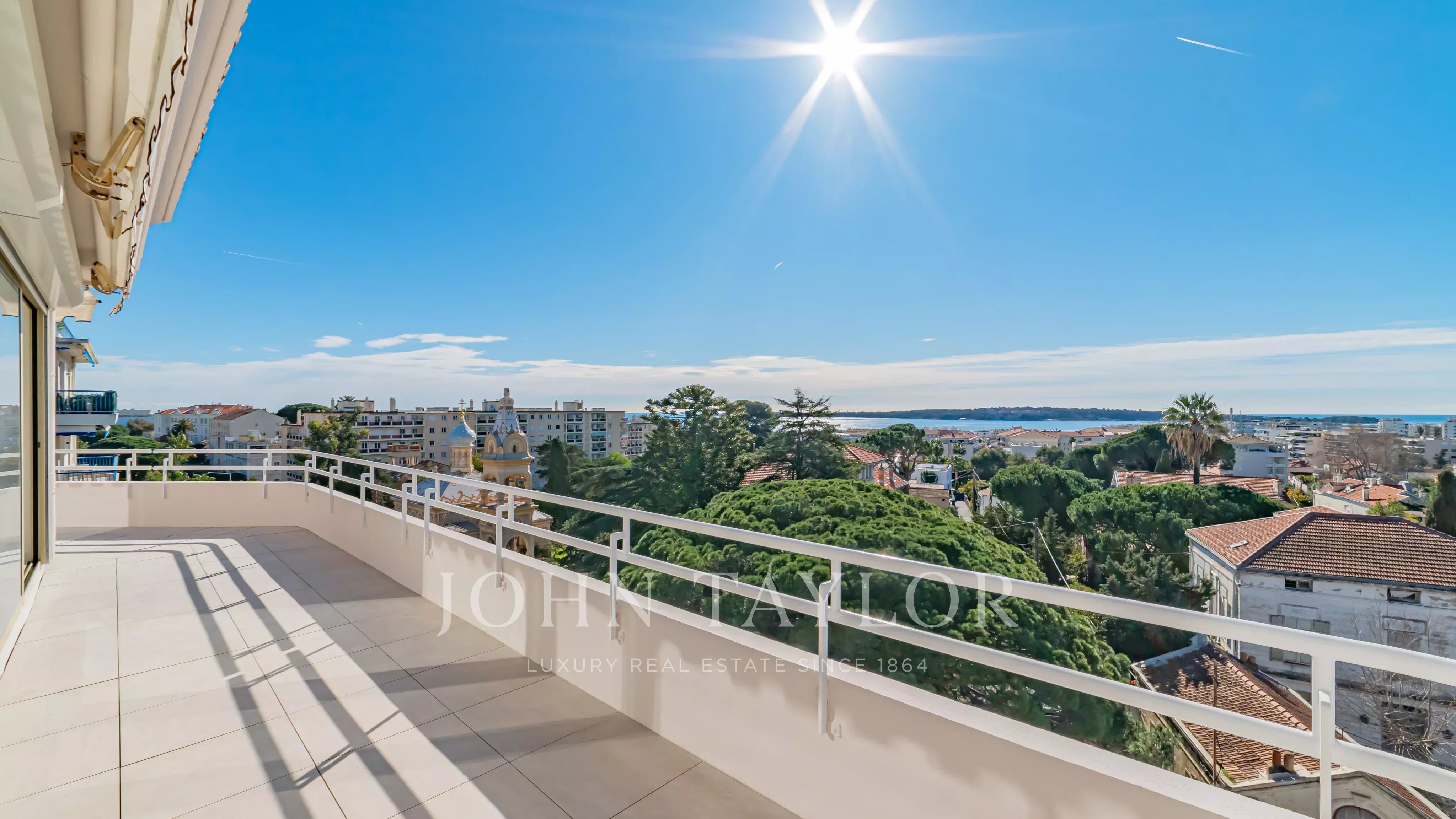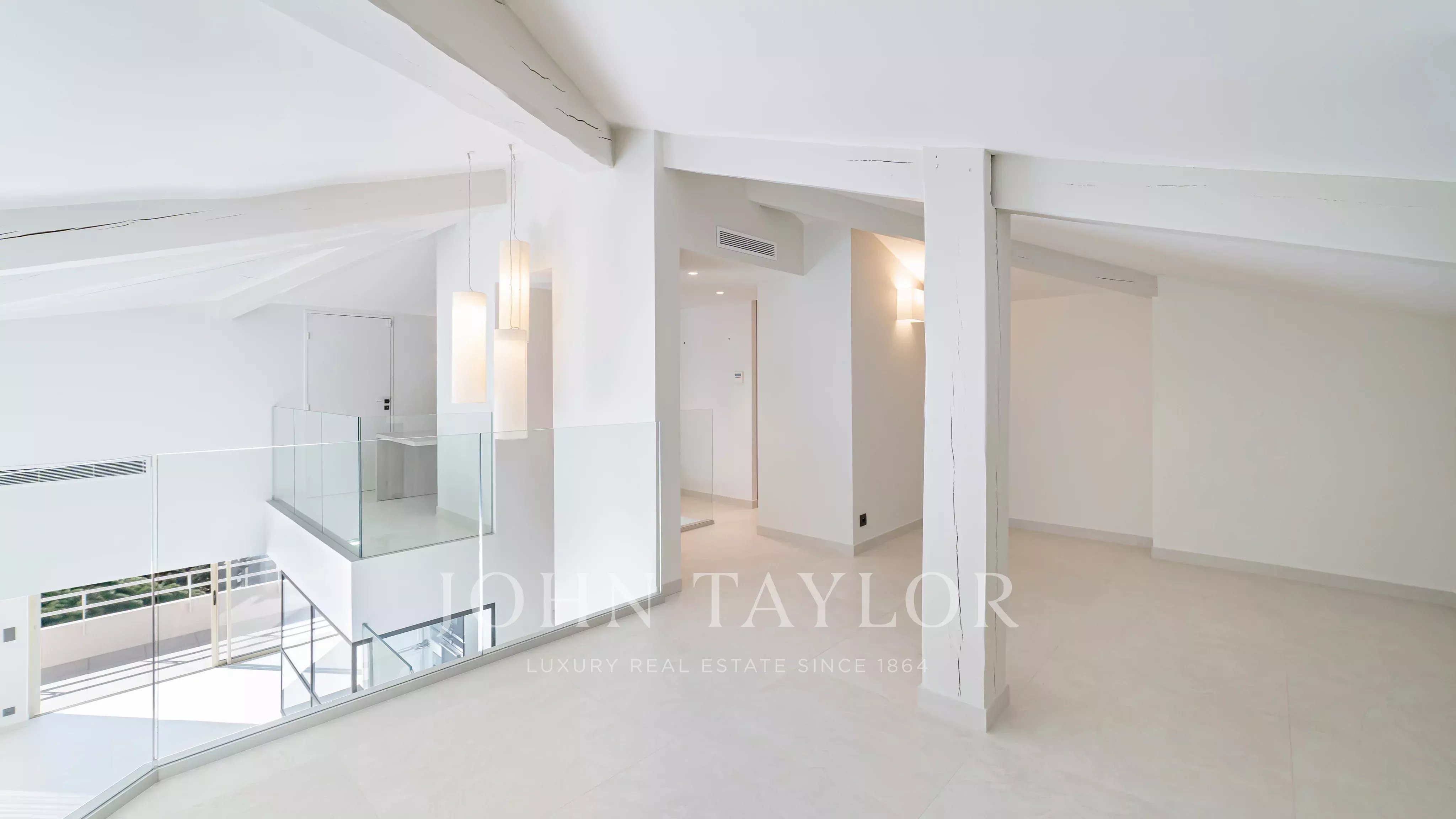 Wunderschönes, komplett renoviertes Duplex-Penthouse, das nur einen Fußweg von La Croisette und den Geschäften entfernt liegt und einen sehr schönen Blick auf das Meer und die Lérins-Inseln bietet.