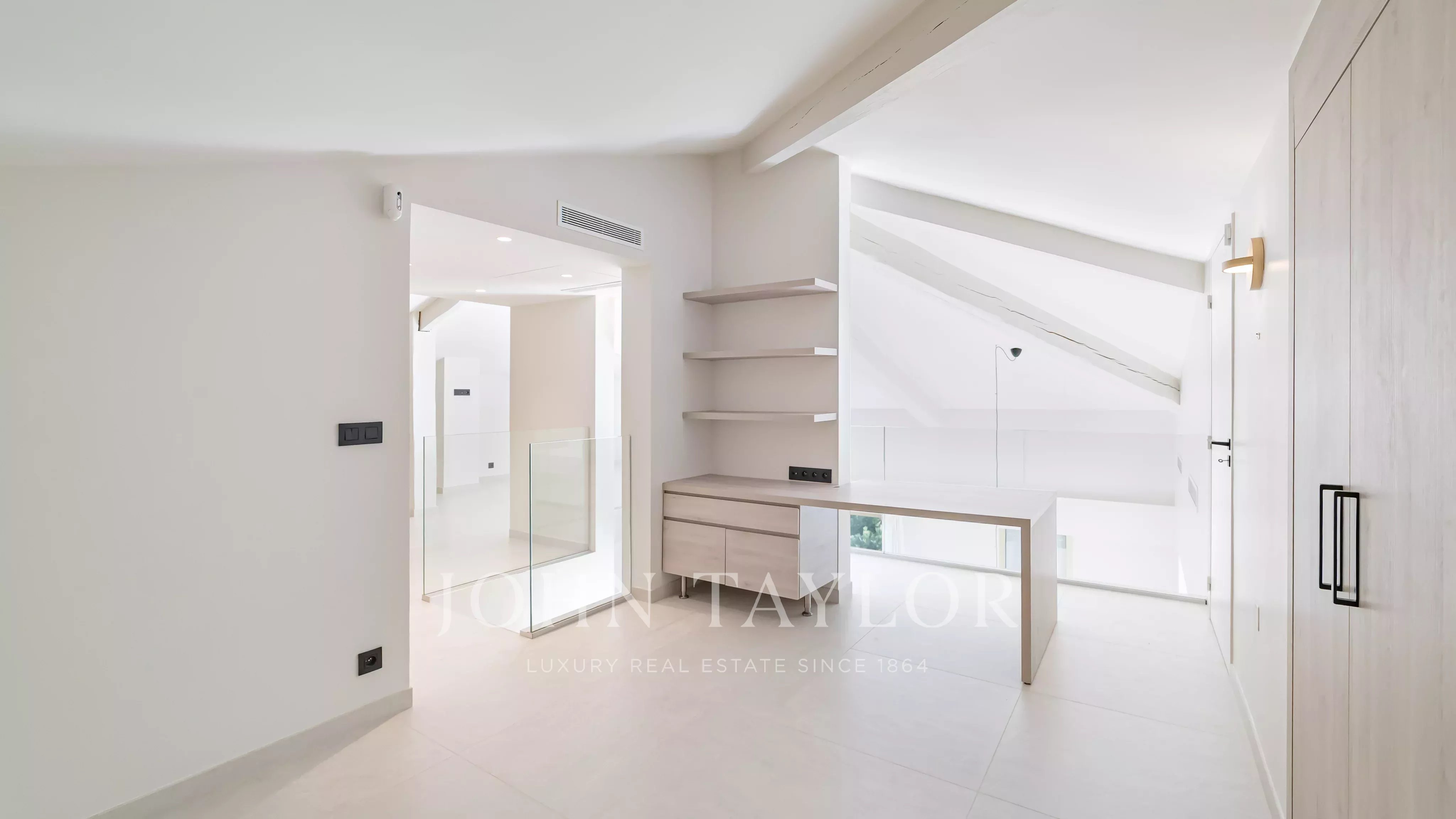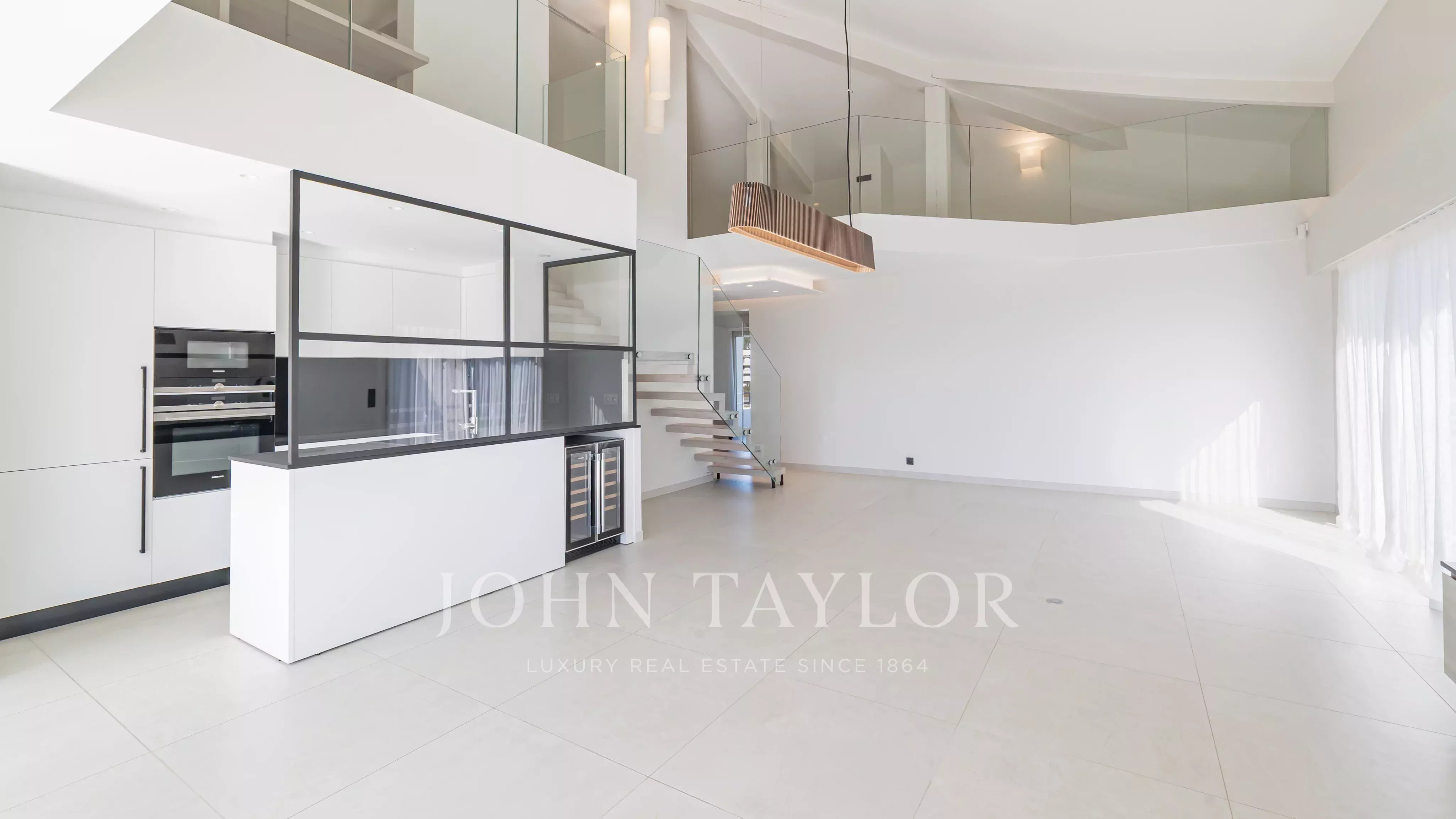 Es verfügt über ca. 50 m² Terrassen. Es ist nach Süden ausgerichtet, hat eine Fläche von über 200 m² (173,49 m² Loi Carrez) und umfasst: einen Eingangsbereich mit Gästetoilette, ein Doppelwohnzimmer mit amerikanischer Einbauküche, ein Hauptschlafzimmer mit eigenem Duschbad, Büroecke und Ankleidezimmer mit Zugang zur Terrasse, zwei weitere Schlafzimmer, die sich jeweils ein Duschbad teilen und Zugang zum Balkon haben. Im Zwischengeschoss befinden sich ein Spielzimmer, ein Büro/Schlafzimmer, ein Duschbad und ein Technik-/Aufbewahrungsraum.