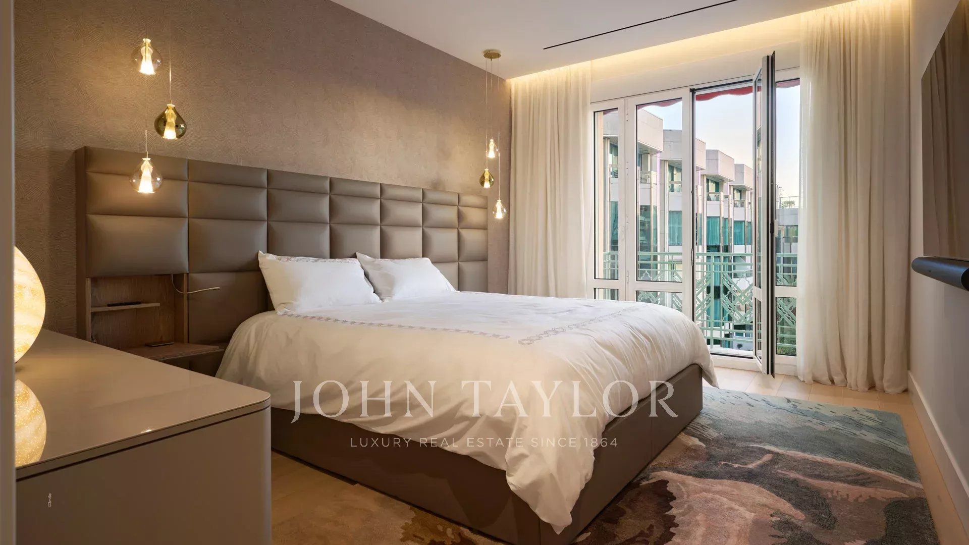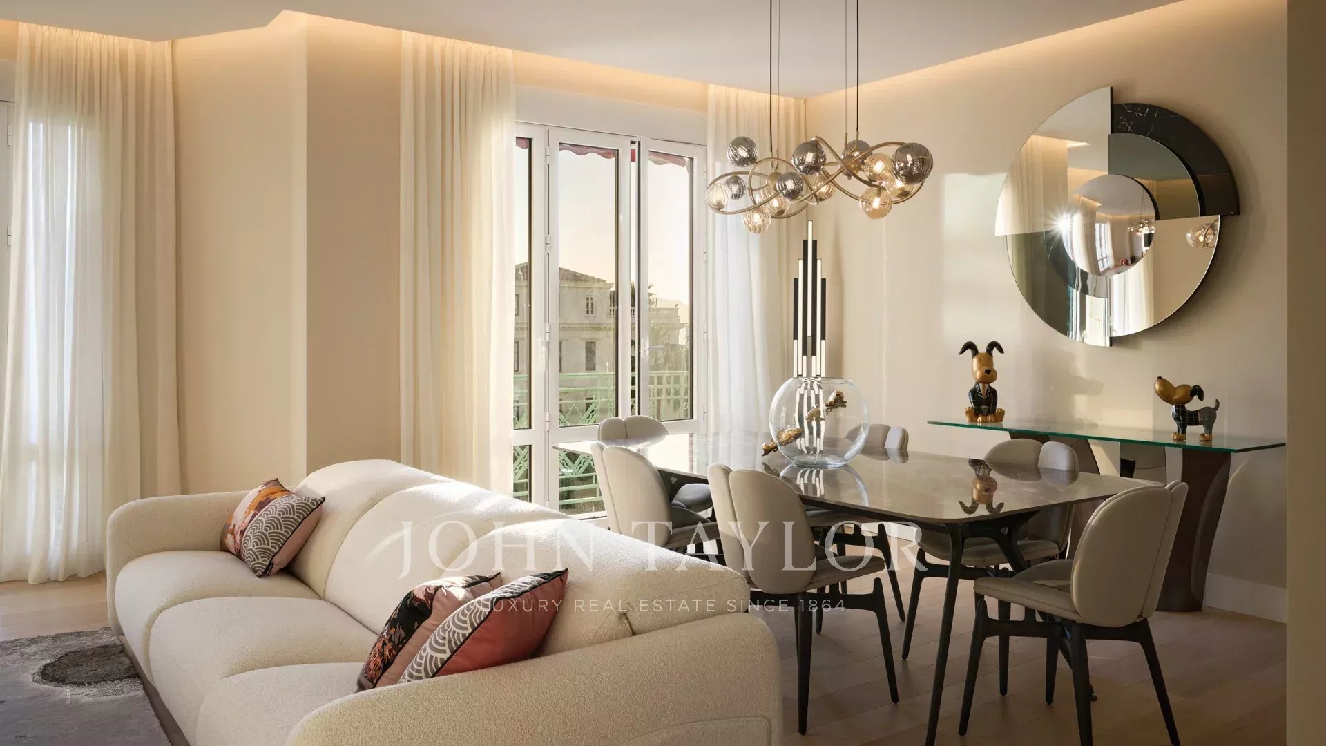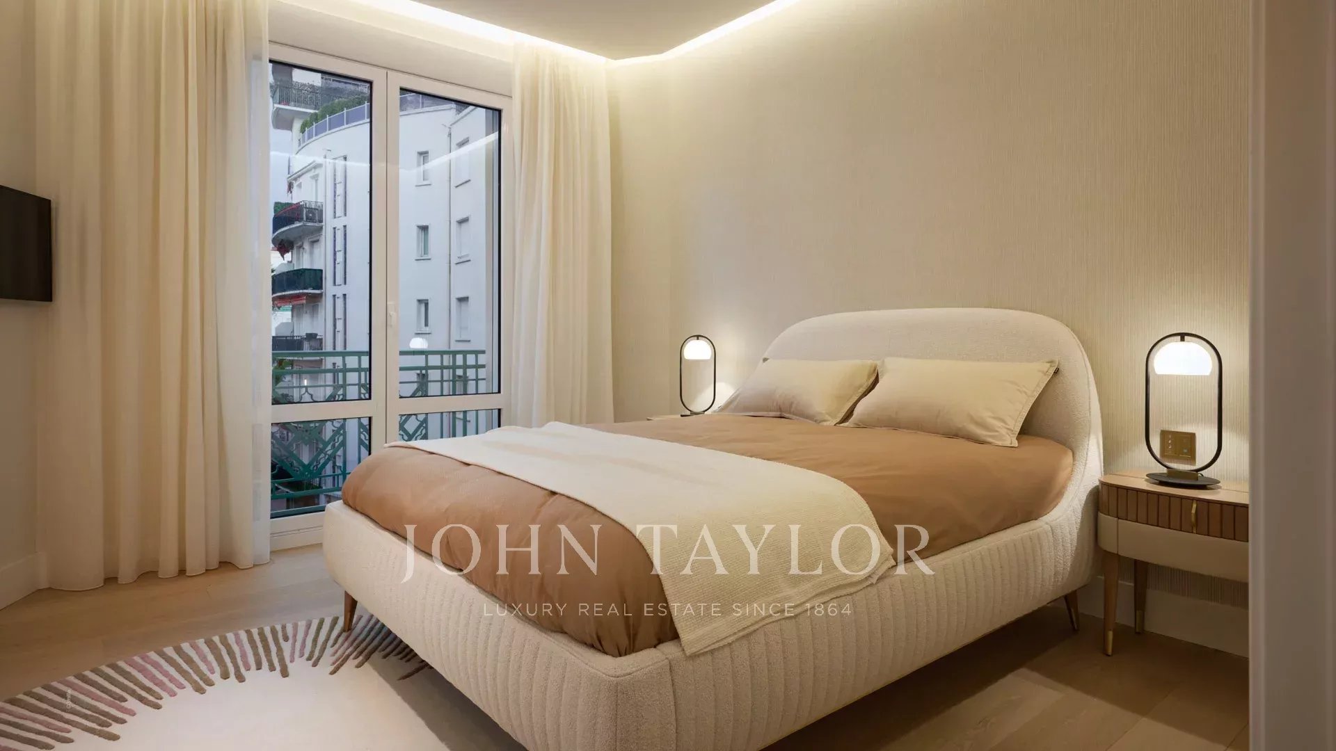 Eingebettet in eine elegante Art-Deco-Residenz, bietet dieses 145 m² große Apartment, das mit hochwertigen Materialien komplett renoviert wurde, besonders begehrte Premium-Leistungen. Es ist ideal gelegen, nur wenige Schritte von La Croisette und allen Annehmlichkeiten entfernt.