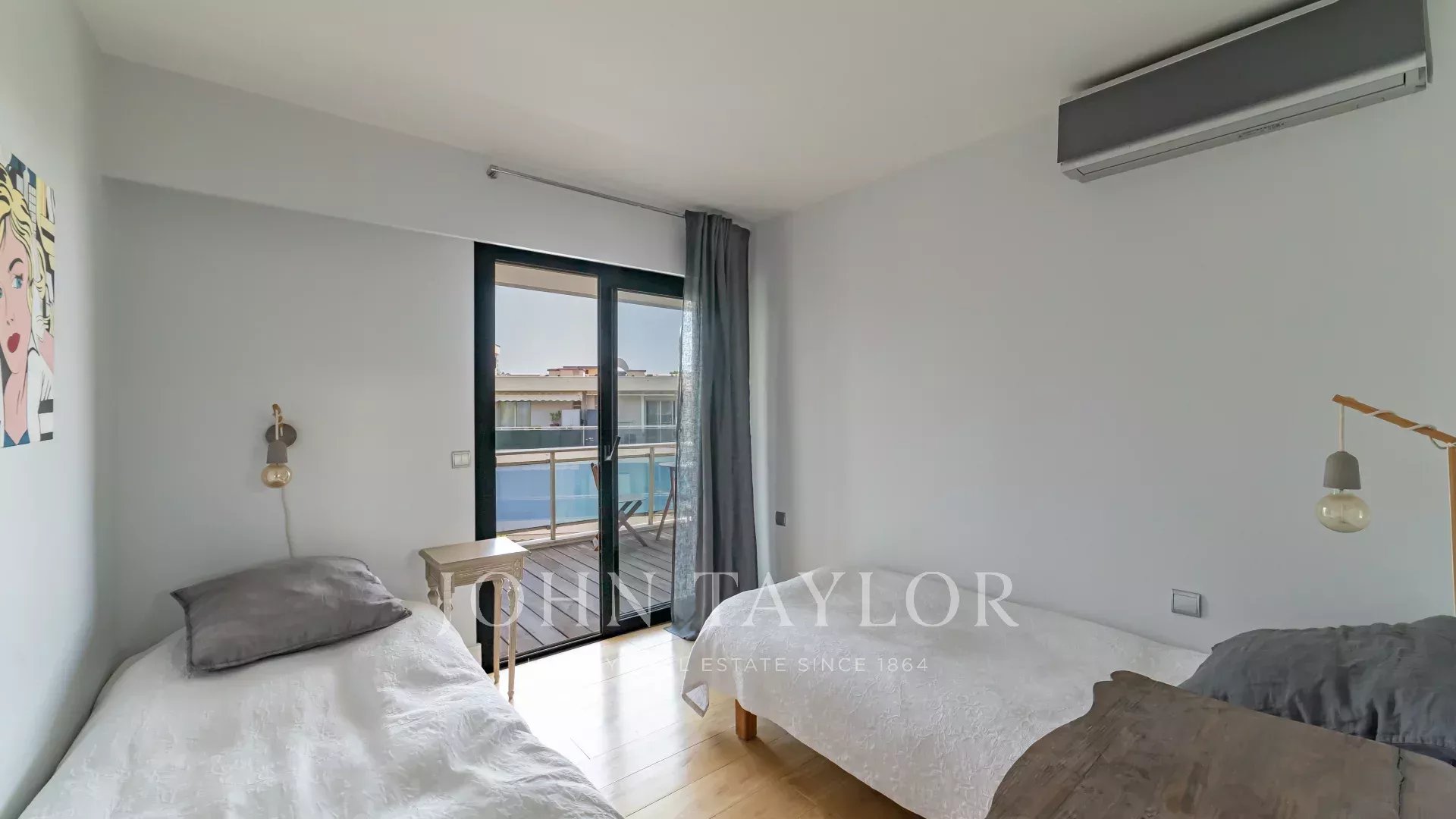 Im beliebten Wohnviertel Montrose, nur 12 Gehminuten von der Rue d'Antibes und dem Zentrum von Cannes entfernt, liegt dieses wunderschöne 137 m² große Penthouse im obersten Stockwerk. Es besteht aus einem 27 m² großen, separaten Studio mit einer 10 m² großen, privaten Terrasse.