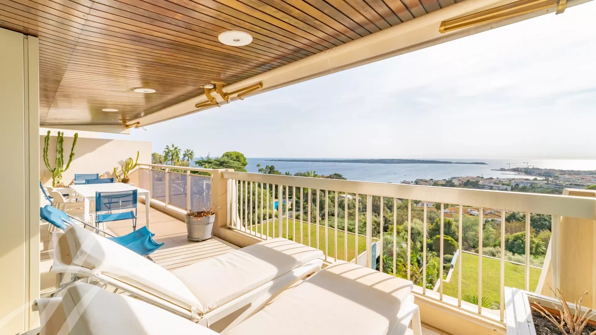 In einer Luxusresidenz im prestigeträchtigen Viertel La Californie bietet diese Wohnung einen außergewöhnlichen Panoramablick auf das Meer, die Lérins-Inseln und die Bucht von Cannes.