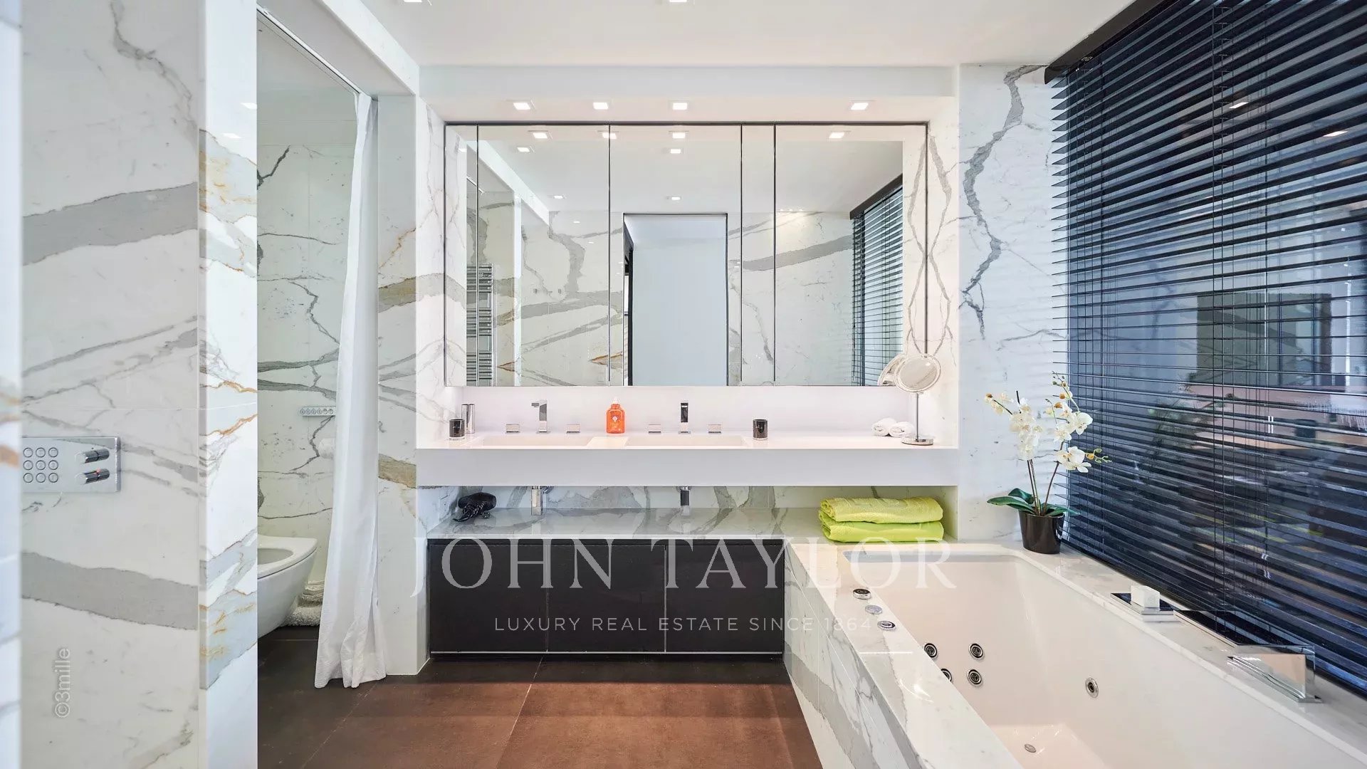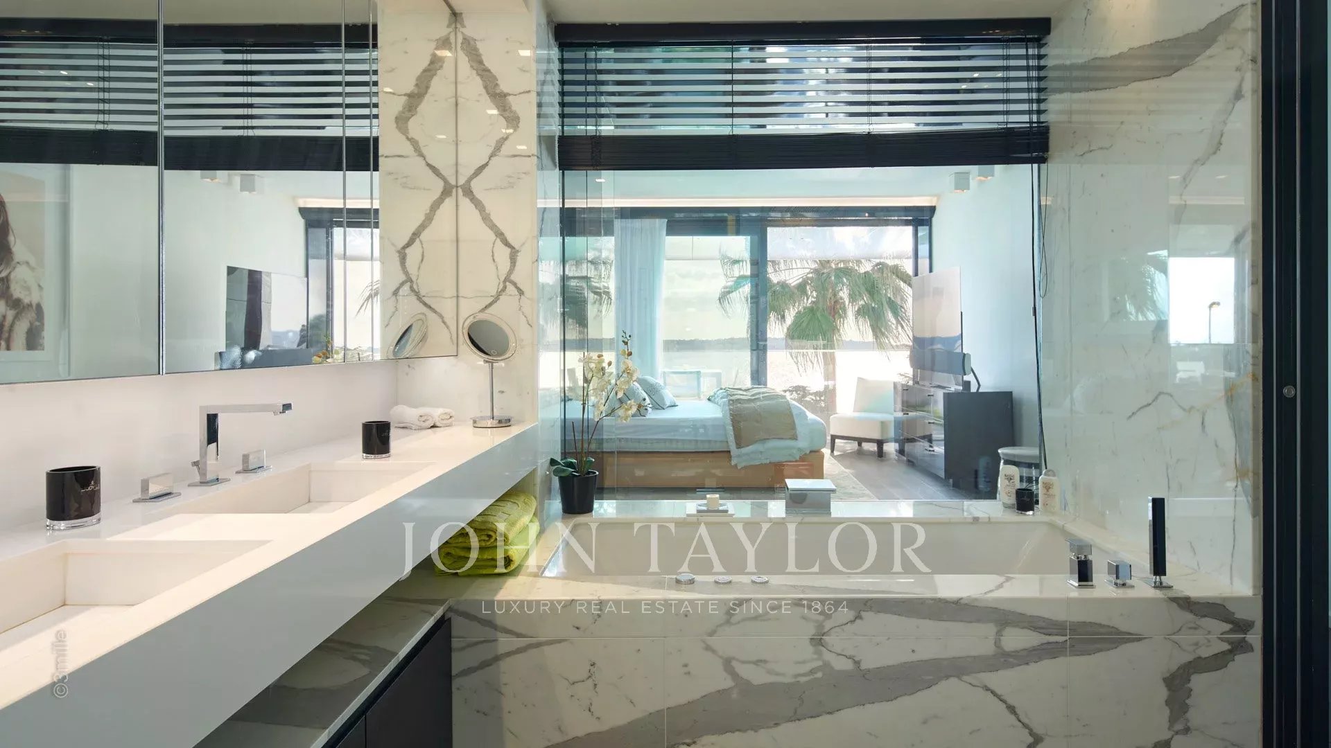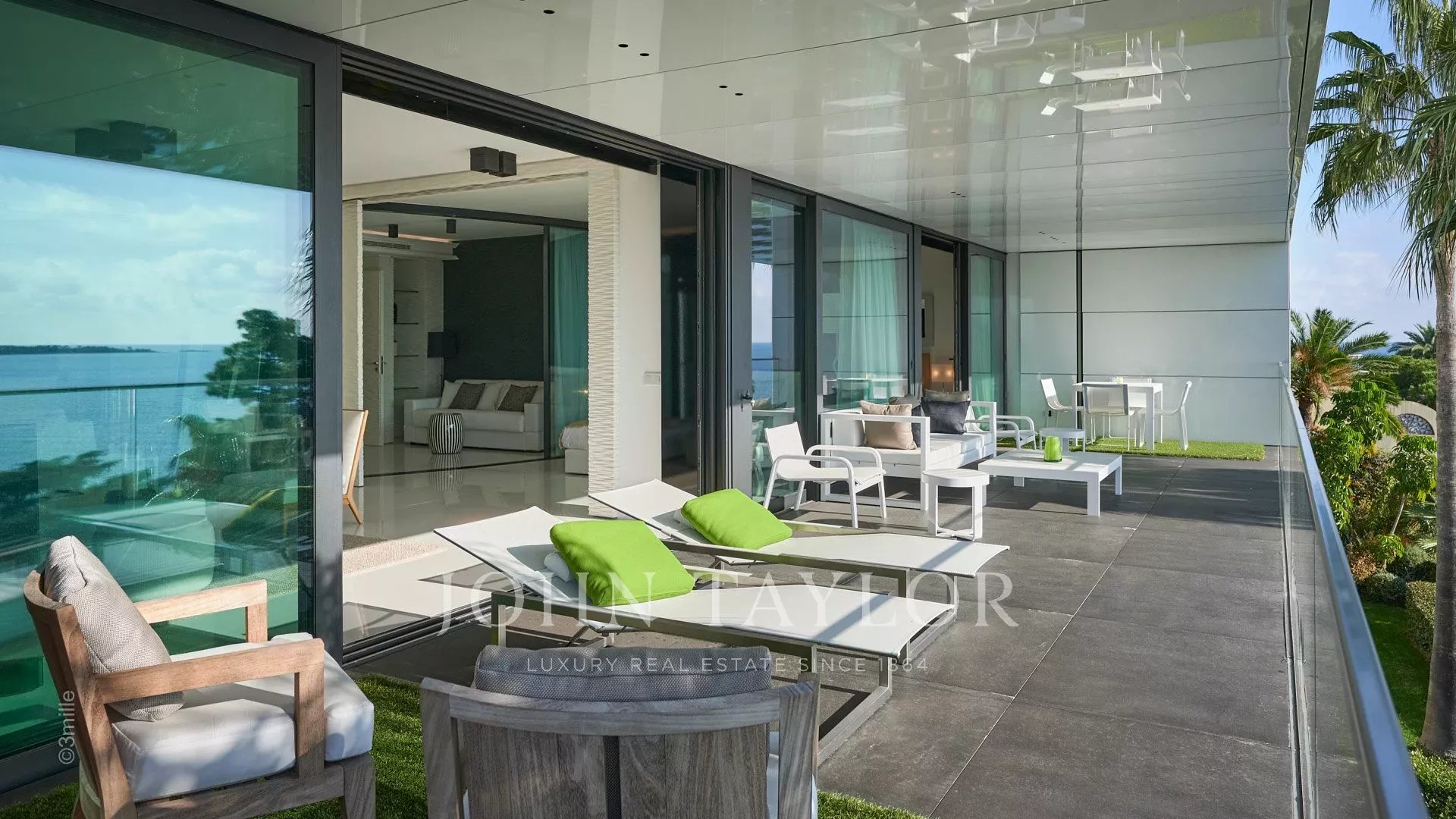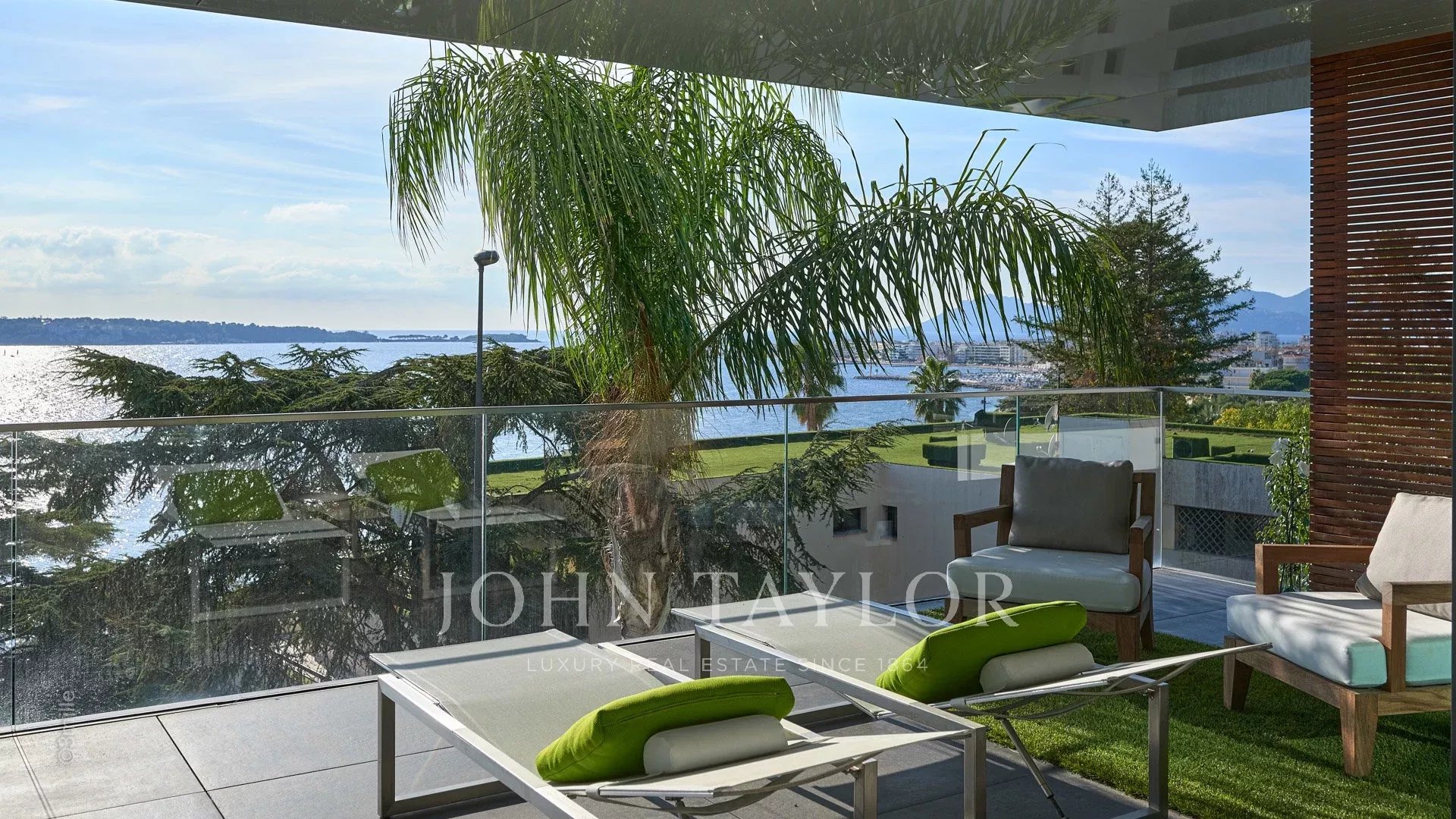 In einer neuen Residenz mit hohem Standard profitiert diese wunderschöne Wohnung von ca. 144 m² von einer breiten und tiefen Terrasse von ca. 54 m². Sie ist nach Süden ausgerichtet und bietet einen Panoramablick auf das Meer und die Lérins-Inseln.