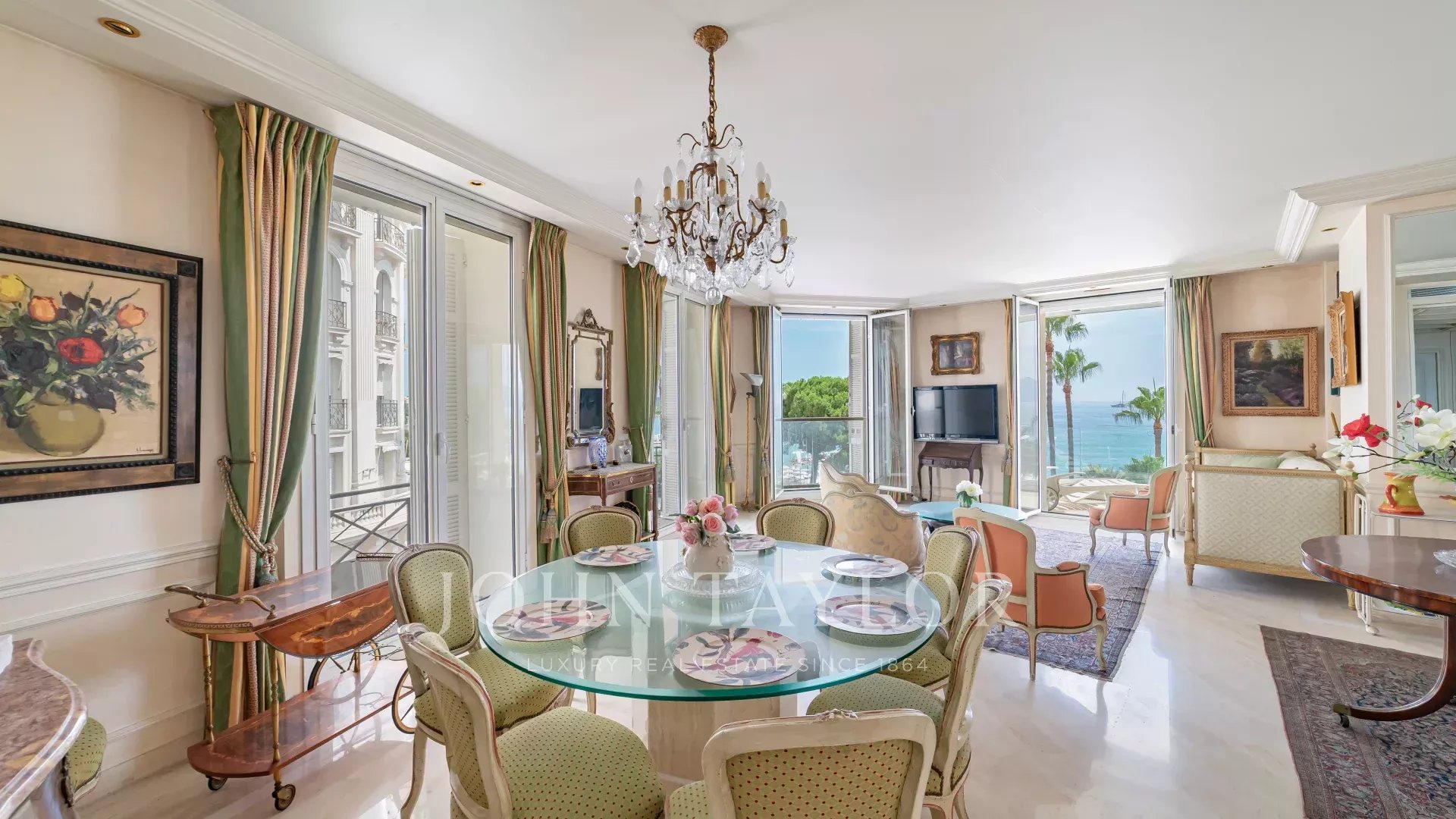 Nur wenige Schritte vom prestigeträchtigen Carlton-Palast entfernt, in einer Luxusresidenz, die von einer Grünanlage gesäumt und direkt mit La Croisette verbunden ist, genießt dieses prächtige Eckapartment einen atemberaubenden Blick auf das Mittelmeer und das Estérel-Massiv.