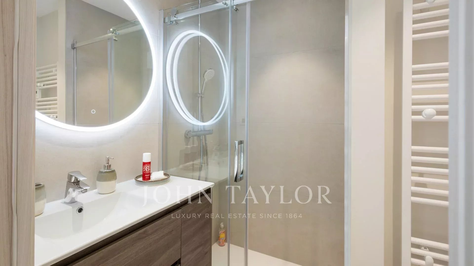 Diese Wohnung genießt eine angenehme Terrasse, die durch einen Garten von 35,50 m² in Südlage verlängert wird, sowie eine Terrasse von 5 m² in Nordlage.