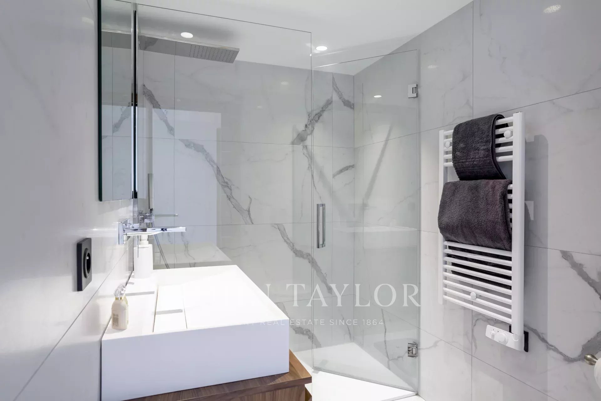 Sie befindet sich im dritten und letzten Stock und hat eine Wohnfläche von ca. 160,26 m² (143,19m² Loi Carrez). Da es in einer Südwestecke angeordnet ist, genießt es maximale Sonneneinstrahlung und eine große Terrasse von ca. 75 m².