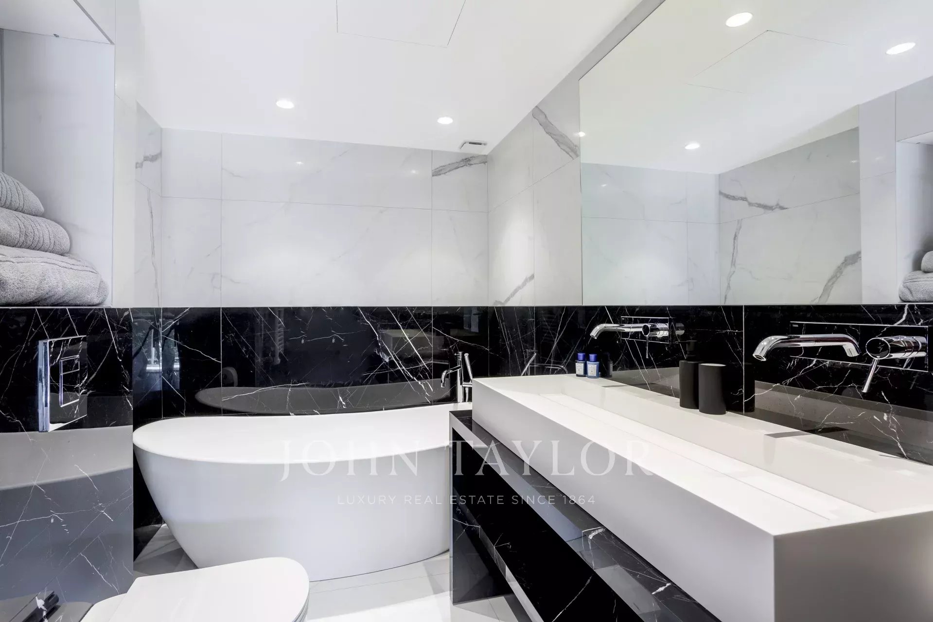 Es umfasst: einen Eingangsbereich, eine Küche, ein großes Wohnzimmer von ca. 48 m², 3 Schlafzimmer mit Ankleide und Badezimmer en suite, jedes mit Zugang zur Terrasse, ein Büro und eine Gästetoilette.