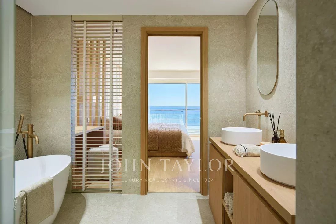 Die Wohnung wurde komplett mit hochwertigen Materialien und Dienstleistungen renoviert und besteht aus einem hellen Wohnraum mit offener Küche und Zugang zur Terrasse mit Meerblick, einem Hauptschlafzimmer mit eigenem Bad und Zugang zur Terrasse mit Meerblick, zwei Schlafzimmern, zwei Badezimmern und einer Waschküche,