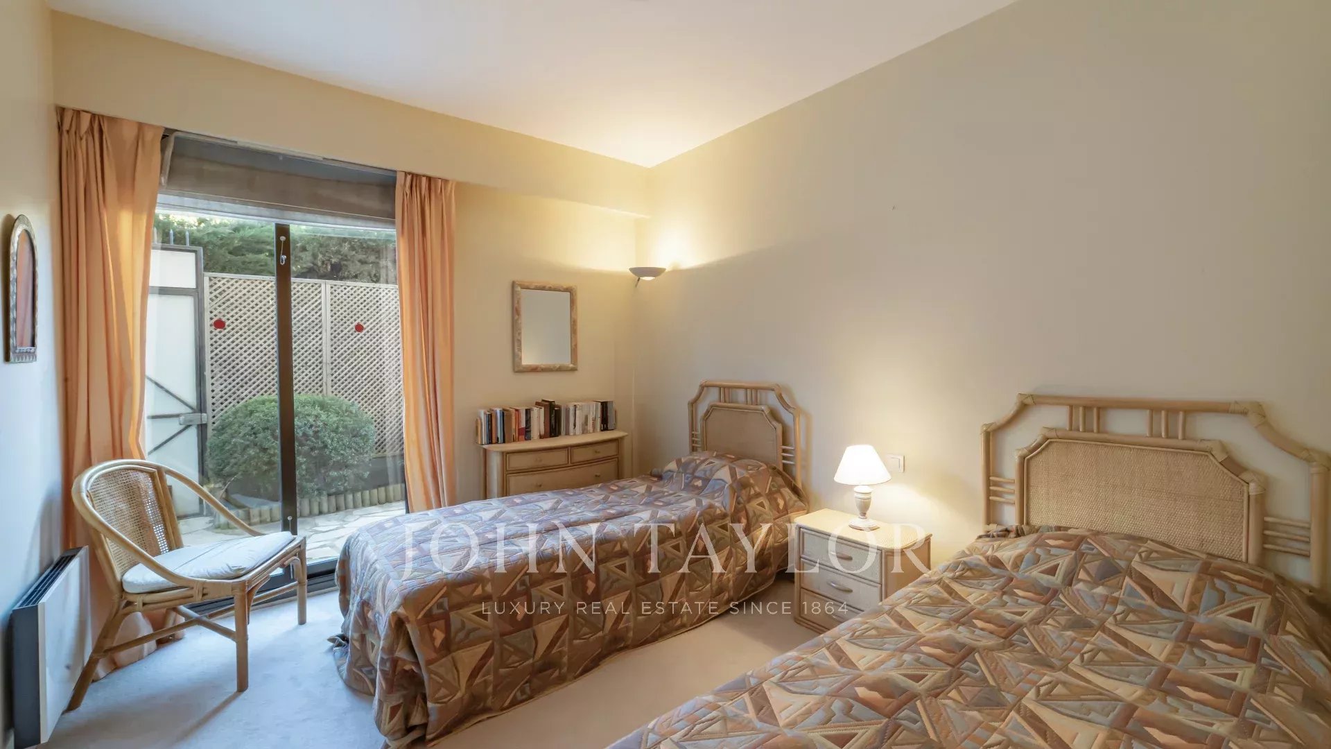 Die Wohnung ist über 90 m² groß und befindet sich im Erdgeschoss einer kleinen Residenz, die einen schönen Garten mit einem Bouleplatz und einem Swimmingpool hat.