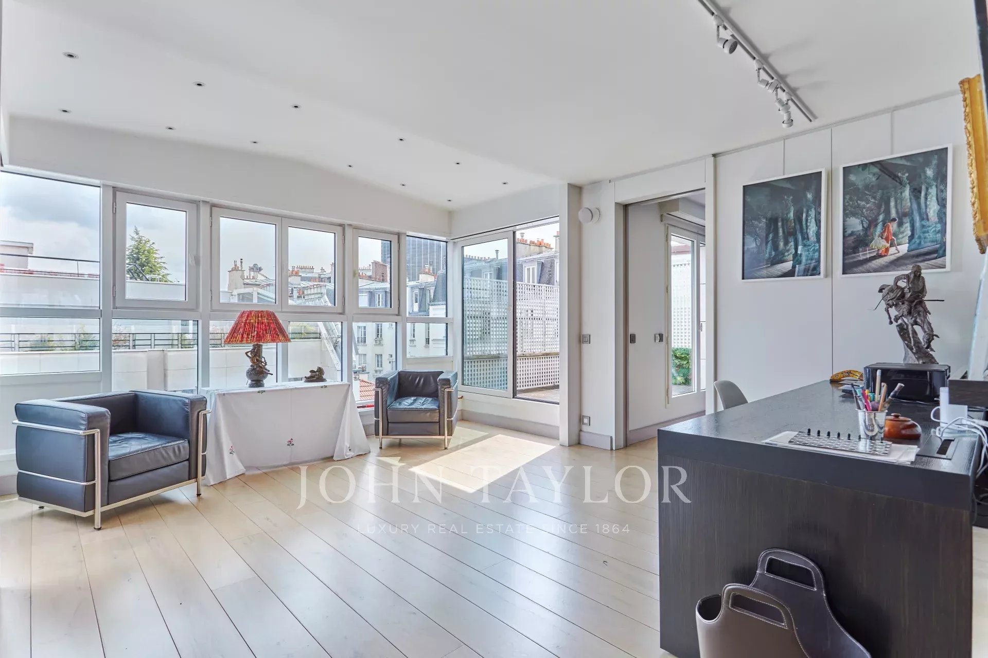 Exclusivité - Innerhalb eines schönen Gebäudes mit hohem Standard, das 1999 fertiggestellt wurde, befindet sich eine wunderschöne Maisonettewohnung mit einer Gesamtfläche von 236m² (231 m² Carrez Gesetz).