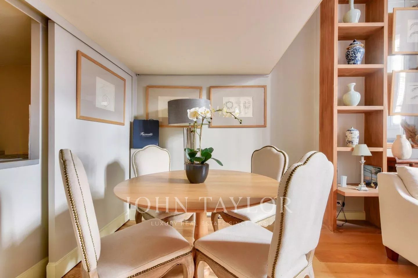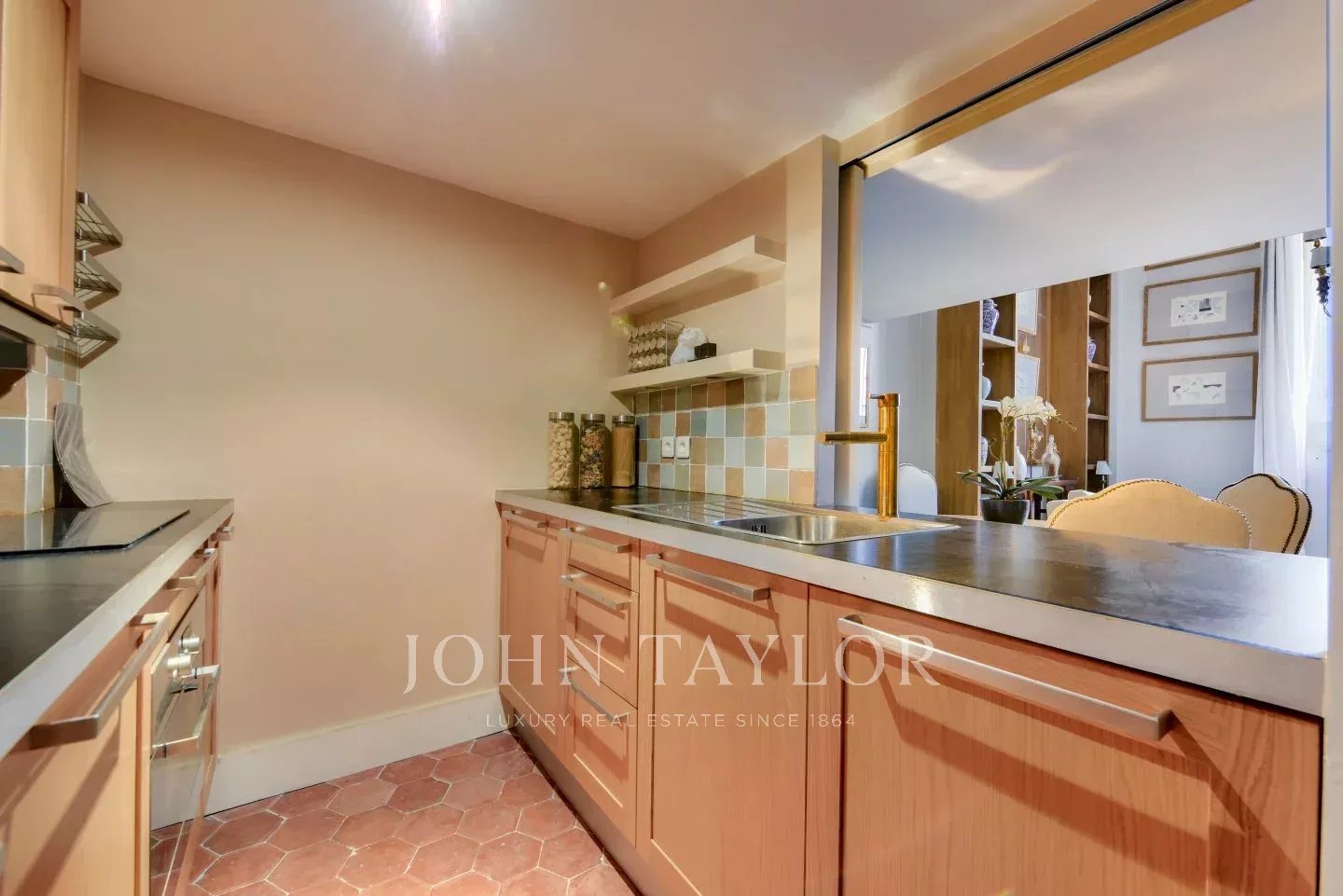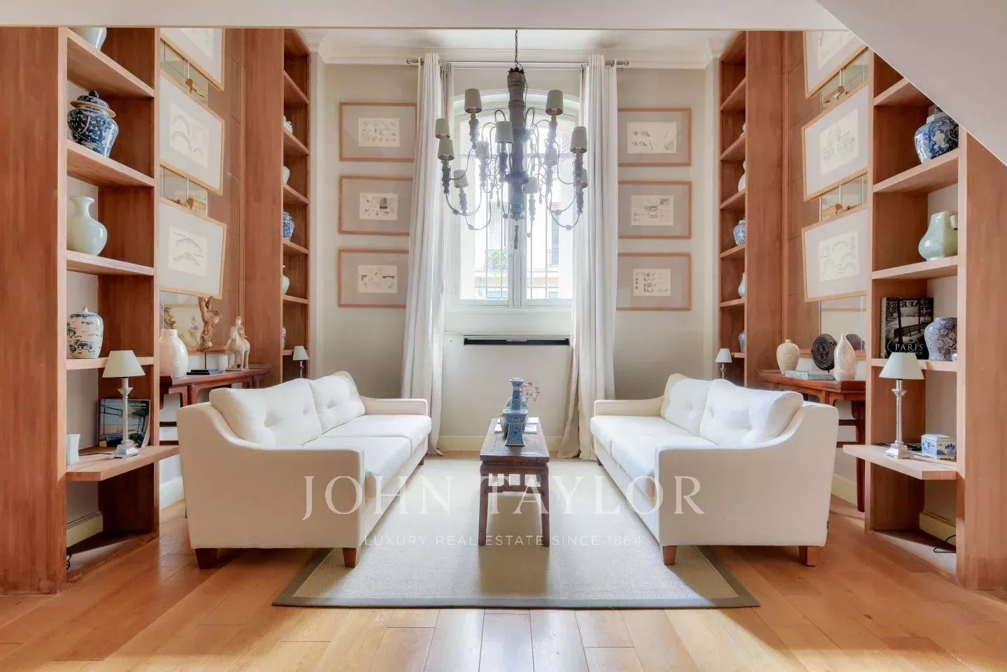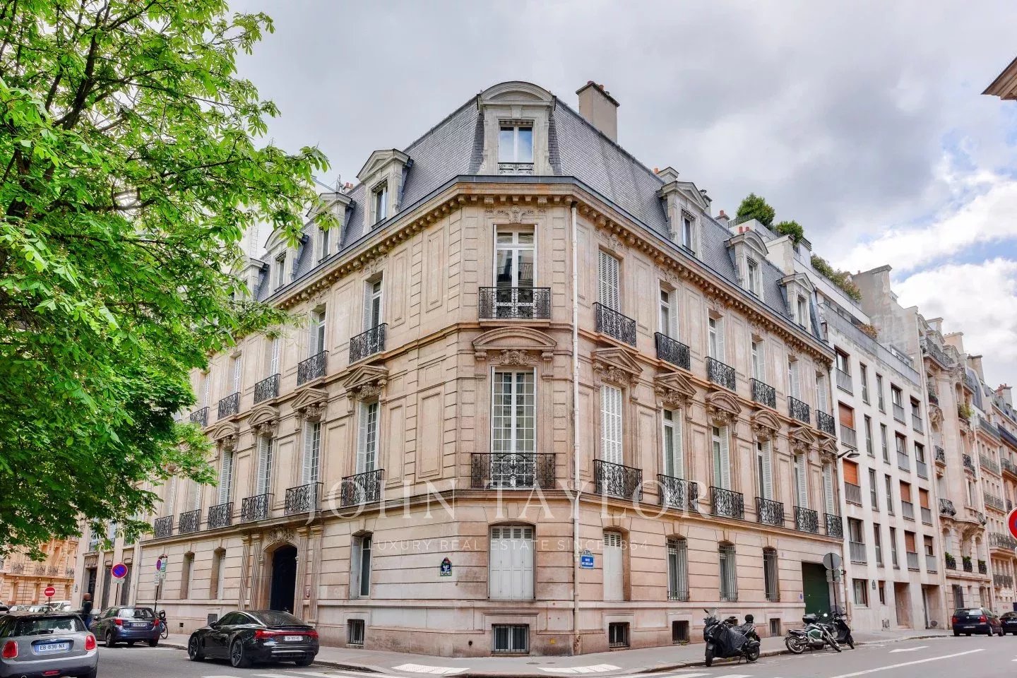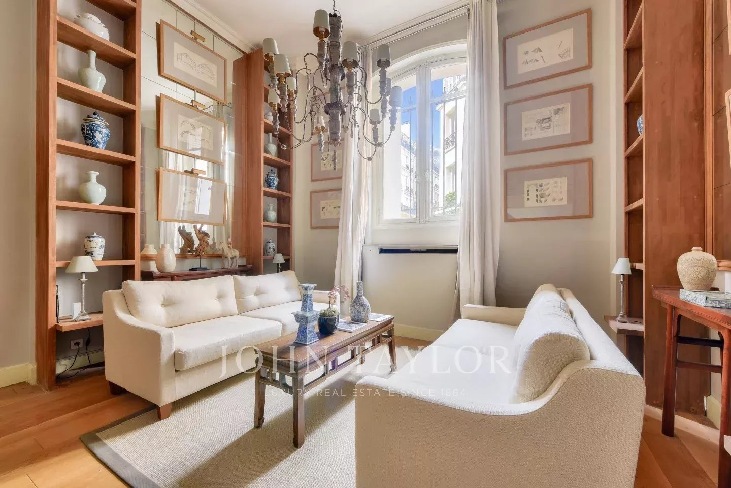 Raffinierte Dekoration für diese Wohnung, die ideal im privilegierten und sicheren 16. Arrondissement zwischen der Avenue d'Iéna und dem Goldenen Dreieck des 8. Arrondissements liegt.