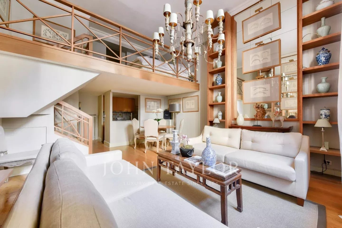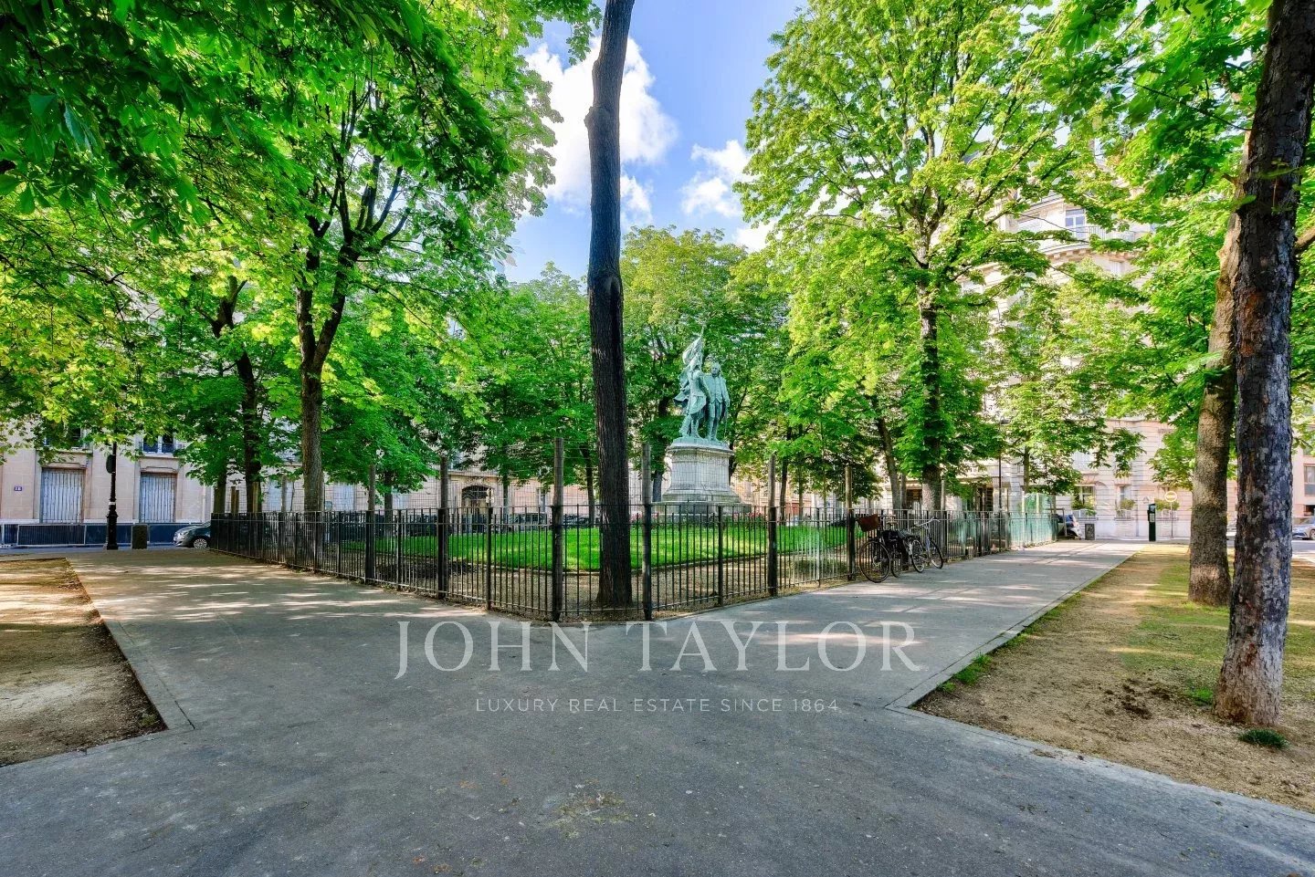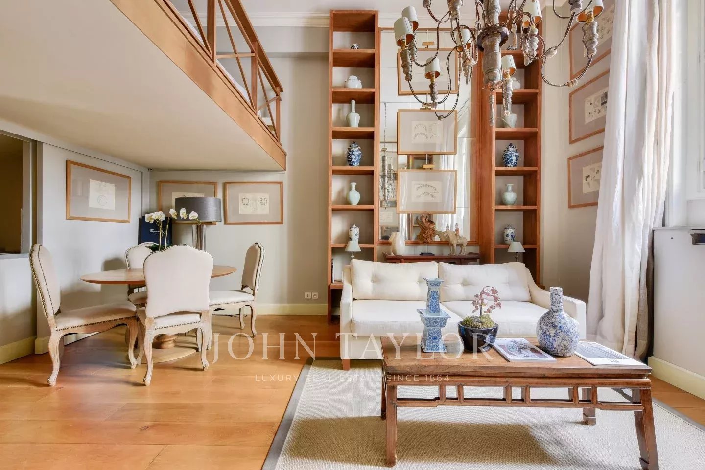 In einem prächtigen, gesicherten hôtel particulier an der Place des Etats-Unis, im Erdgeschoss zur Straßenseite gelegen, charmantes Studio von 40,33 m2 nach Carrez-Gesetz (44 m2 Wohnfläche) mit einem Schlafzimmer im Zwischengeschoss, vollständig möbliert und dekoriert verkauft.