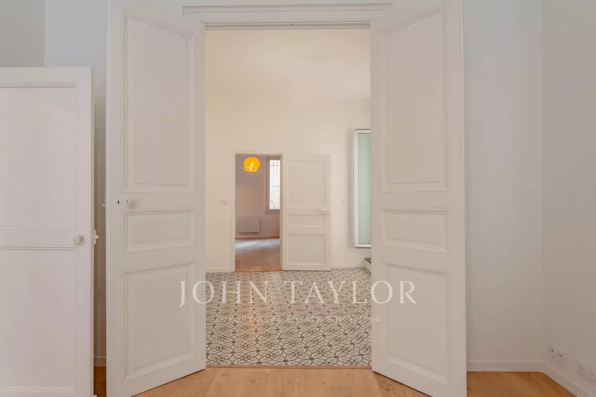 Schon beim Betreten zeigt sich die Eleganz des Ortes durch eine sorgfältige Dekoration, die durch einen grünen Marmor-Kamin hervorgehoben wird, das wahre Herzstück des Wohnzimmers. Die Wohnung bietet einen harmonischen Wohnraum mit einem hellen Wohnzimmer, einem angrenzenden Schlafzimmer sowie einer Elternsuite mit Duschbad und Ankleidezimmer.