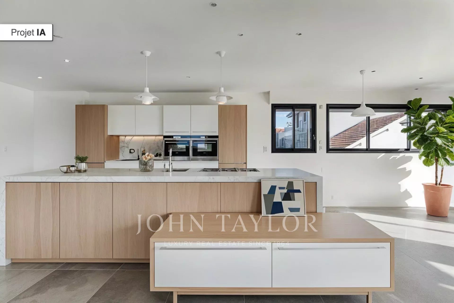 Der Empfang ist um eine majestätische 75 m² große Wohnküche und ein 57 m² großes Wohnzimmer herum angeordnet, wodurch ein lichtdurchflutetes Lebensumfeld entsteht.