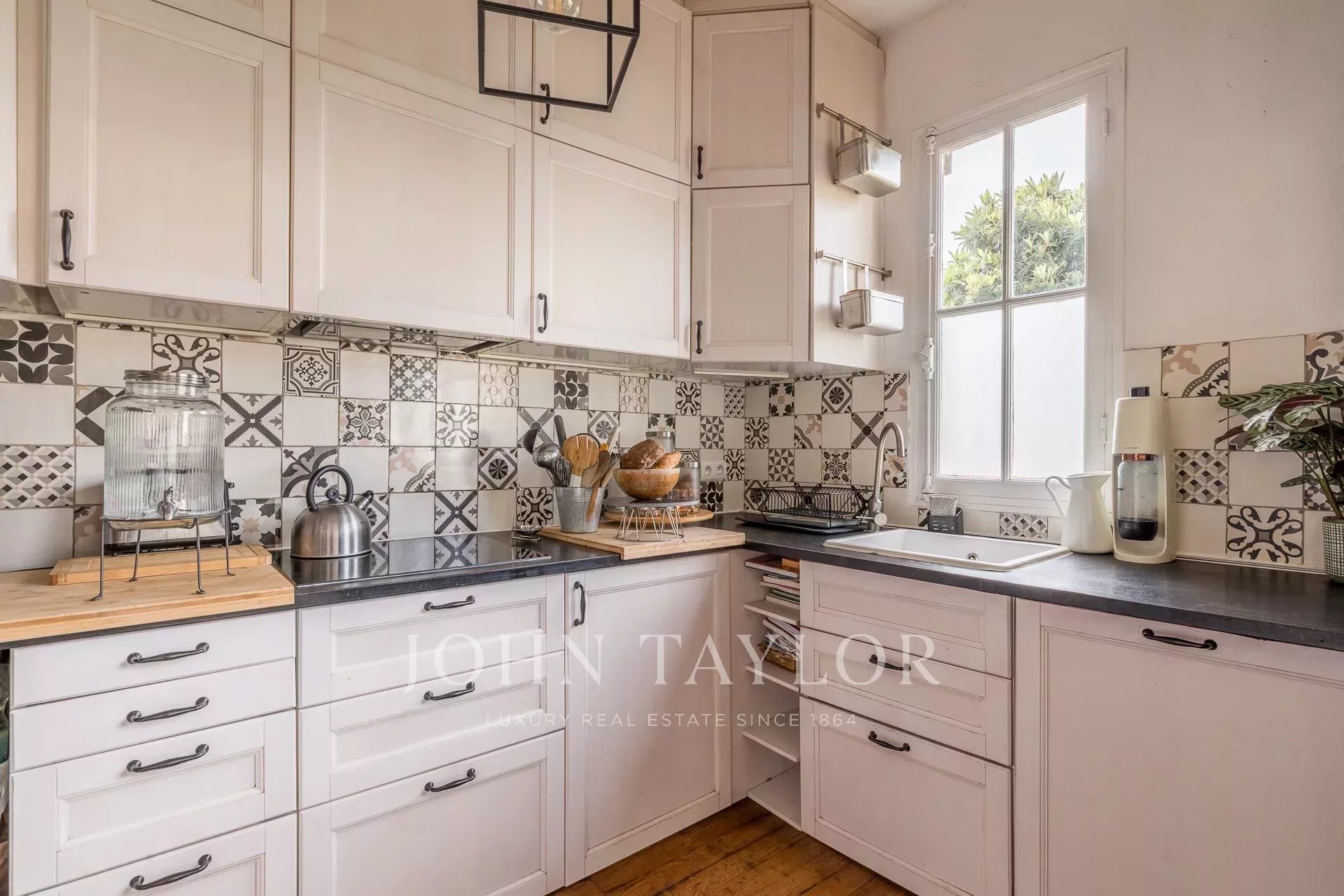 Erhaltene Originalausstattung (historische Treppe, Zementfliesen, Steinmauern, Glasdach, Parkett und Kamine) und sehr gute Gebäudequalität (doppelt verglaste Fenster, normgerechte Elektrik, neue Heizkörper und Dach in perfektem Zustand).