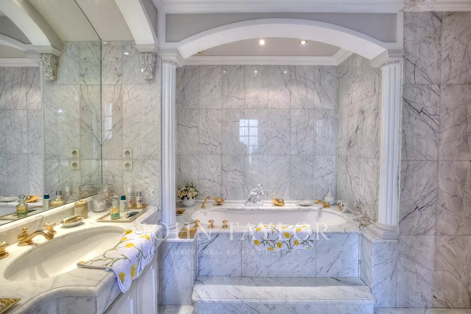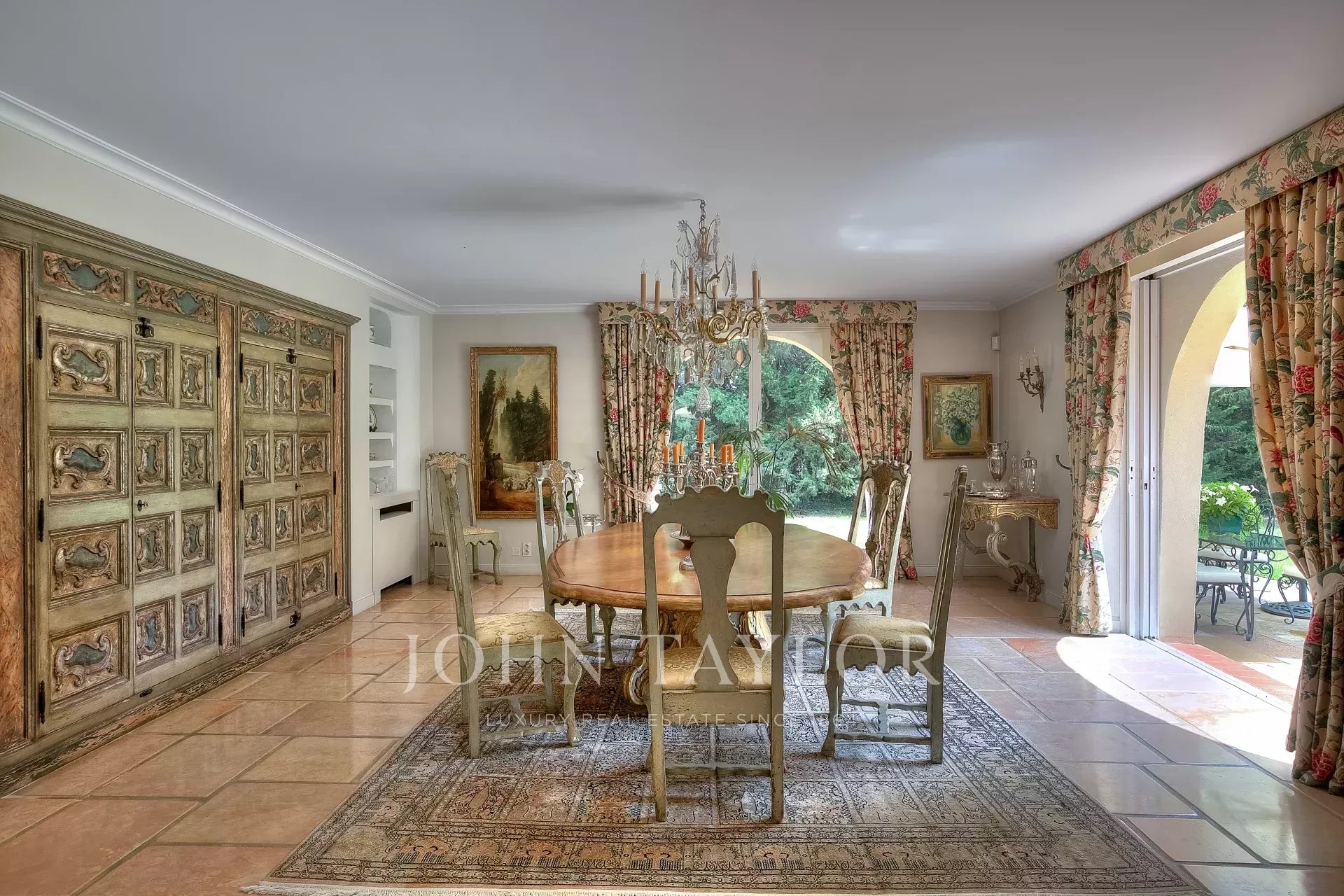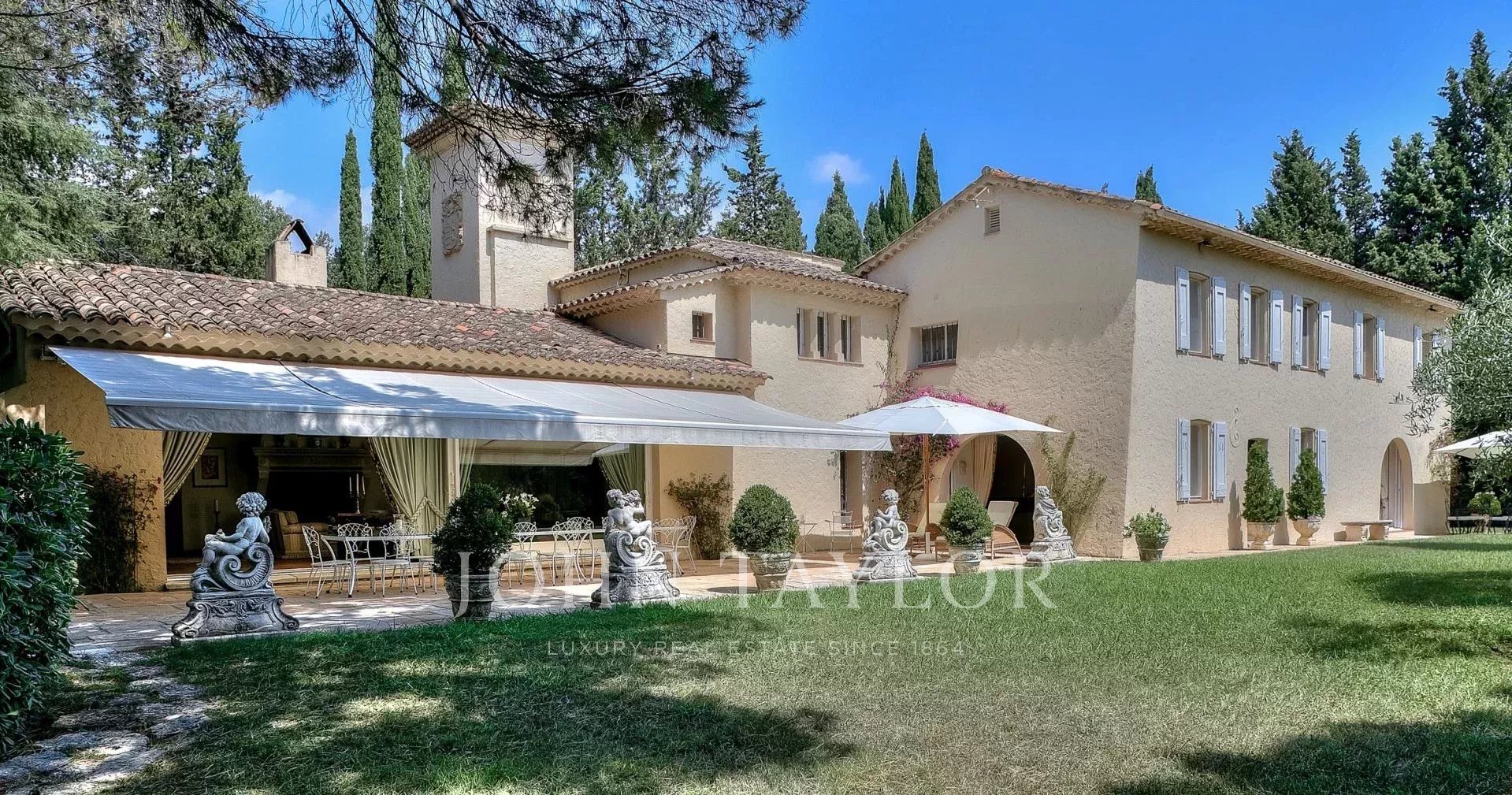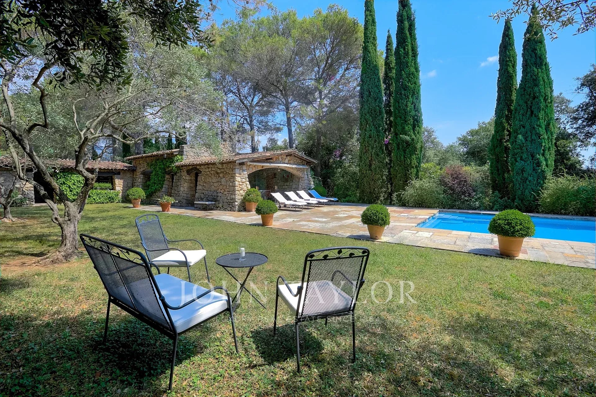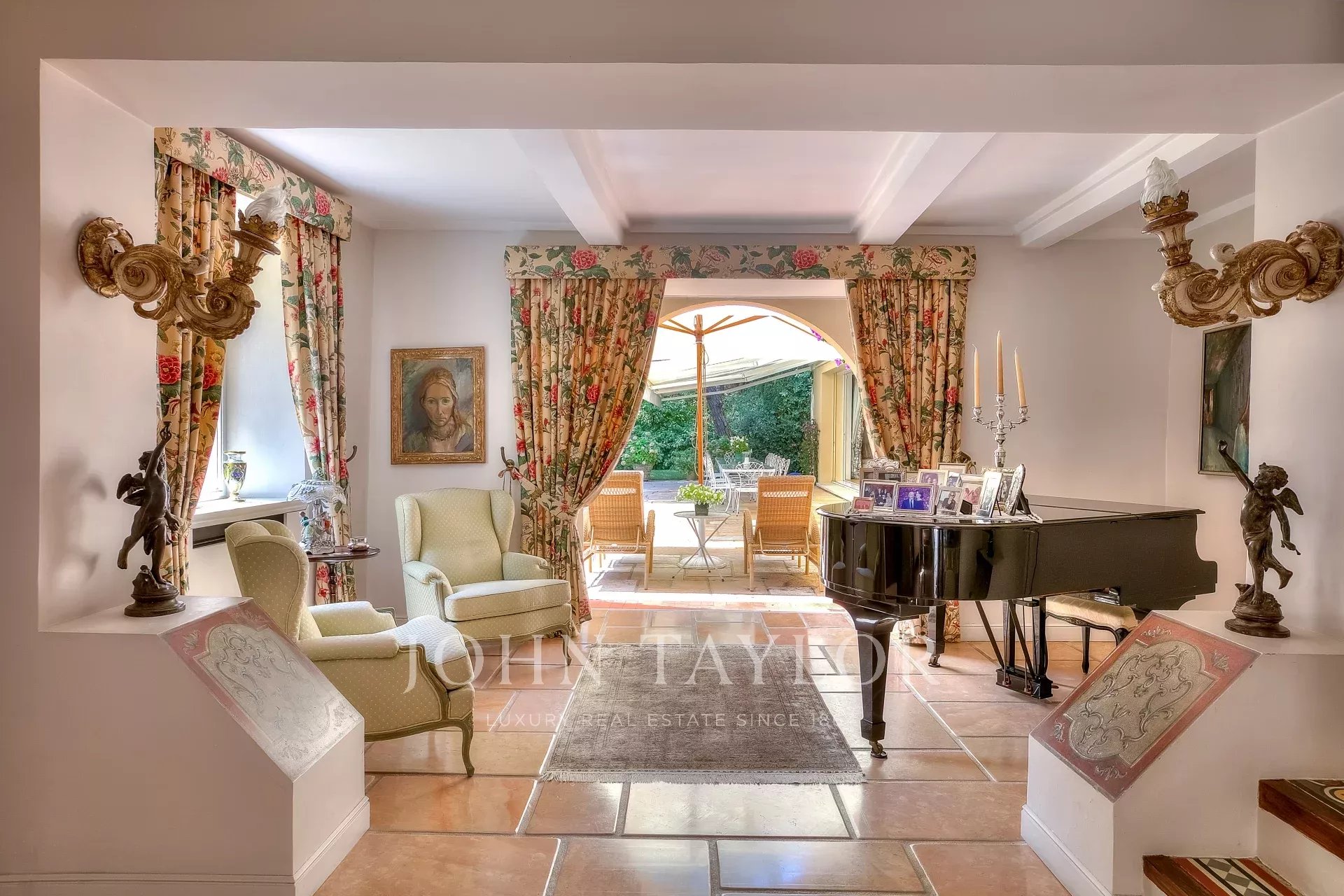 Dieses elegante provenzalische Haus von ca. 260 m² am Ende eines Privatwegs, geschützt vor Blicken und in absoluter Ruhe, liegt auf einem 2500 m² großen Grundstück mit Pool. Es empfängt Sie in einer seltenen und privilegierten Umgebung am Waldrand und bietet gleichzeitig je nach Perspektive einen Teilblick auf das Meer.