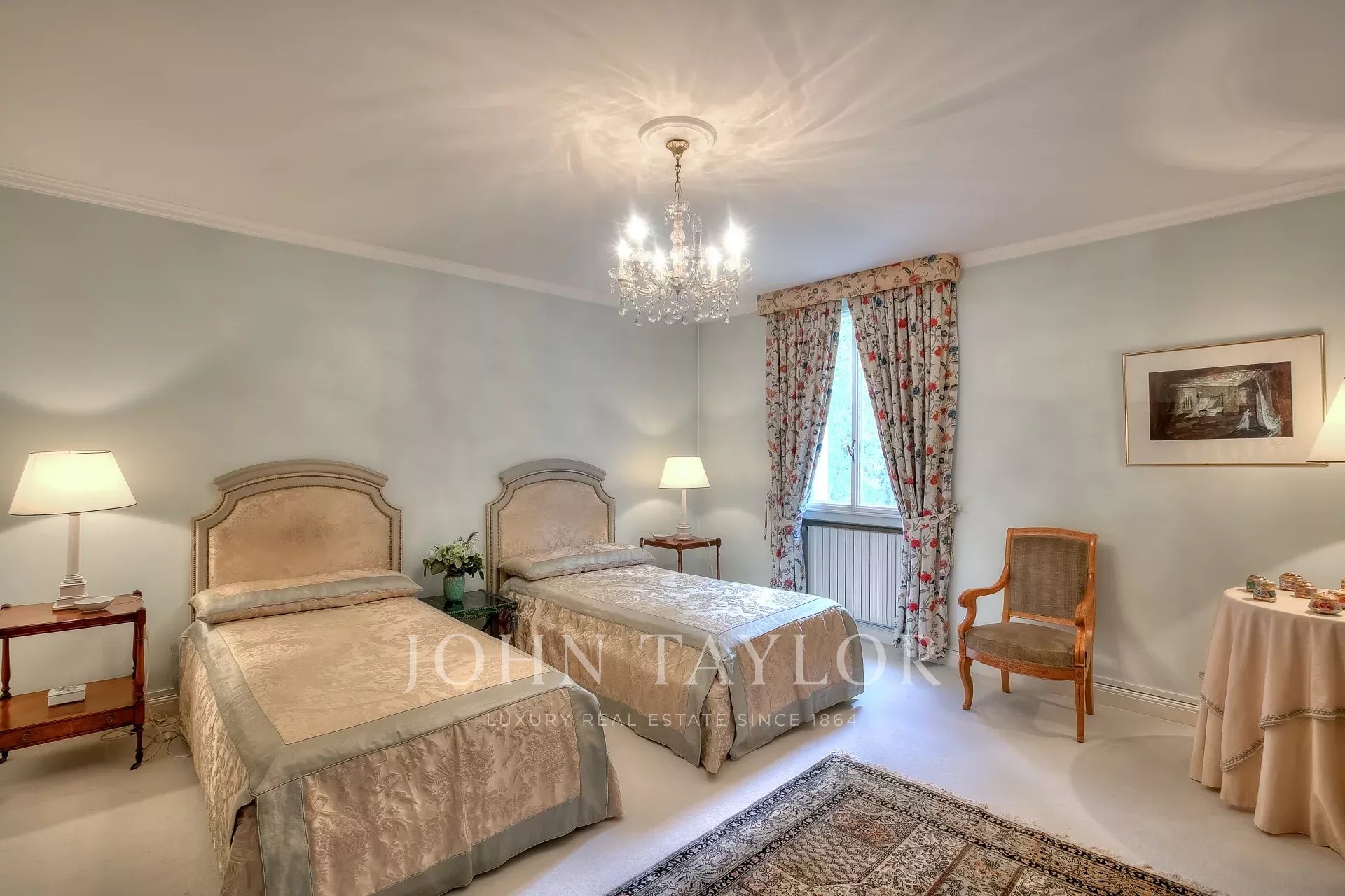 Die Schlafbereiche bieten jedem Gast die Möglichkeit, seine Privatsphäre zu genießen. Sie bestehen aus 5 geräumigen Schlafzimmern, darunter eine Elternsuite im Obergeschoss, sowie einem angrenzenden ausgestatteten Studio, das ideal ist, um einen Teenager oder ein Familienmitglied aufzunehmen oder um einen unabhängigen Arbeitsbereich einzurichten. Ein Keller und ein Weinkeller vervollständigen das Ensemble.
