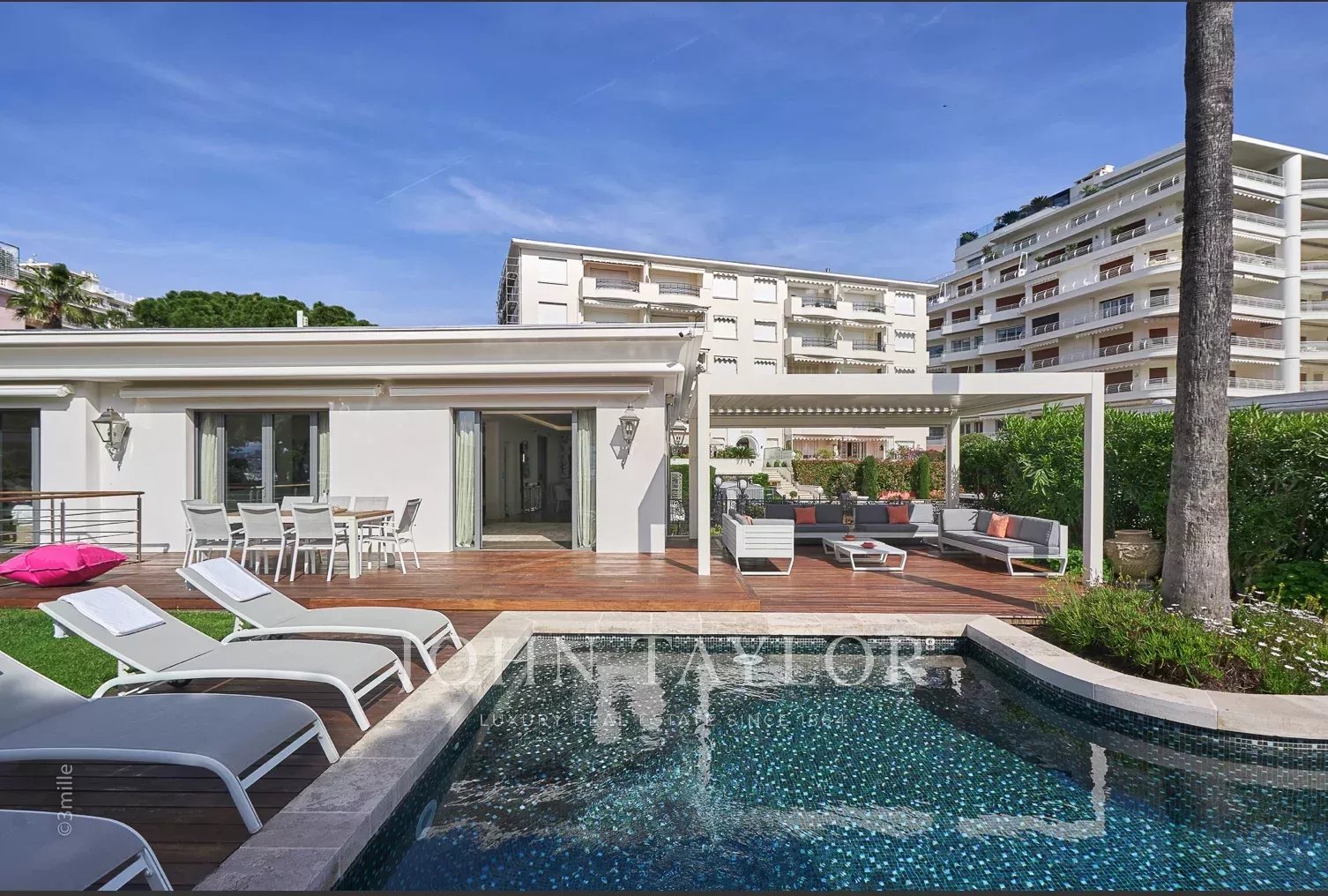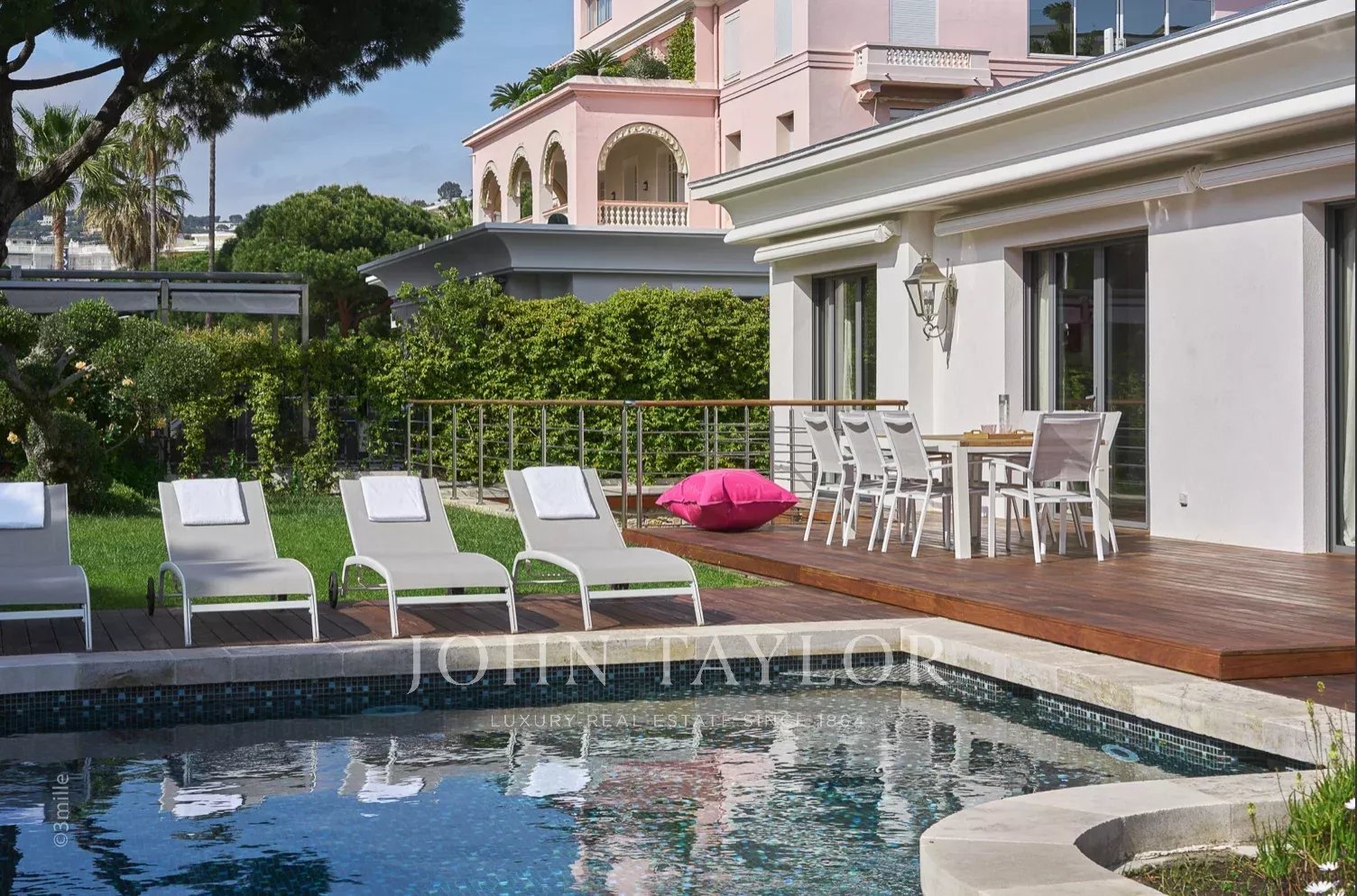 Außergewöhnliche Immobilie, eine Villa auf der berühmten Croisette mit Blick auf das Meer, die von fast 900 m2 Gärten mit privatem Pool profitiert und Port Canto überblickt.