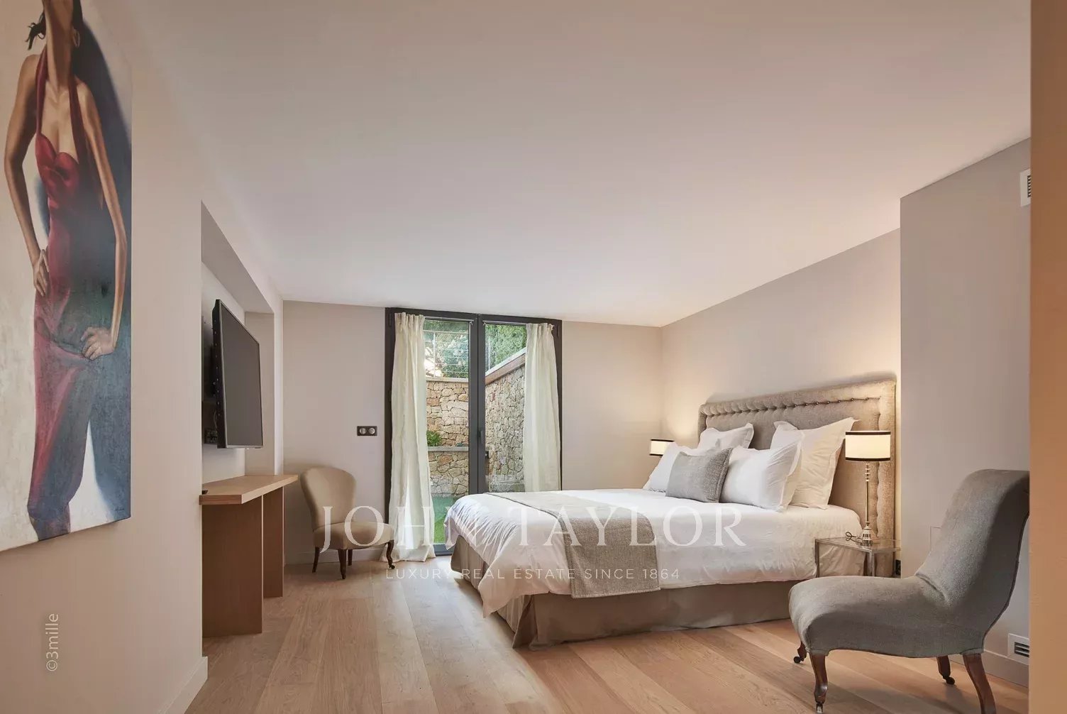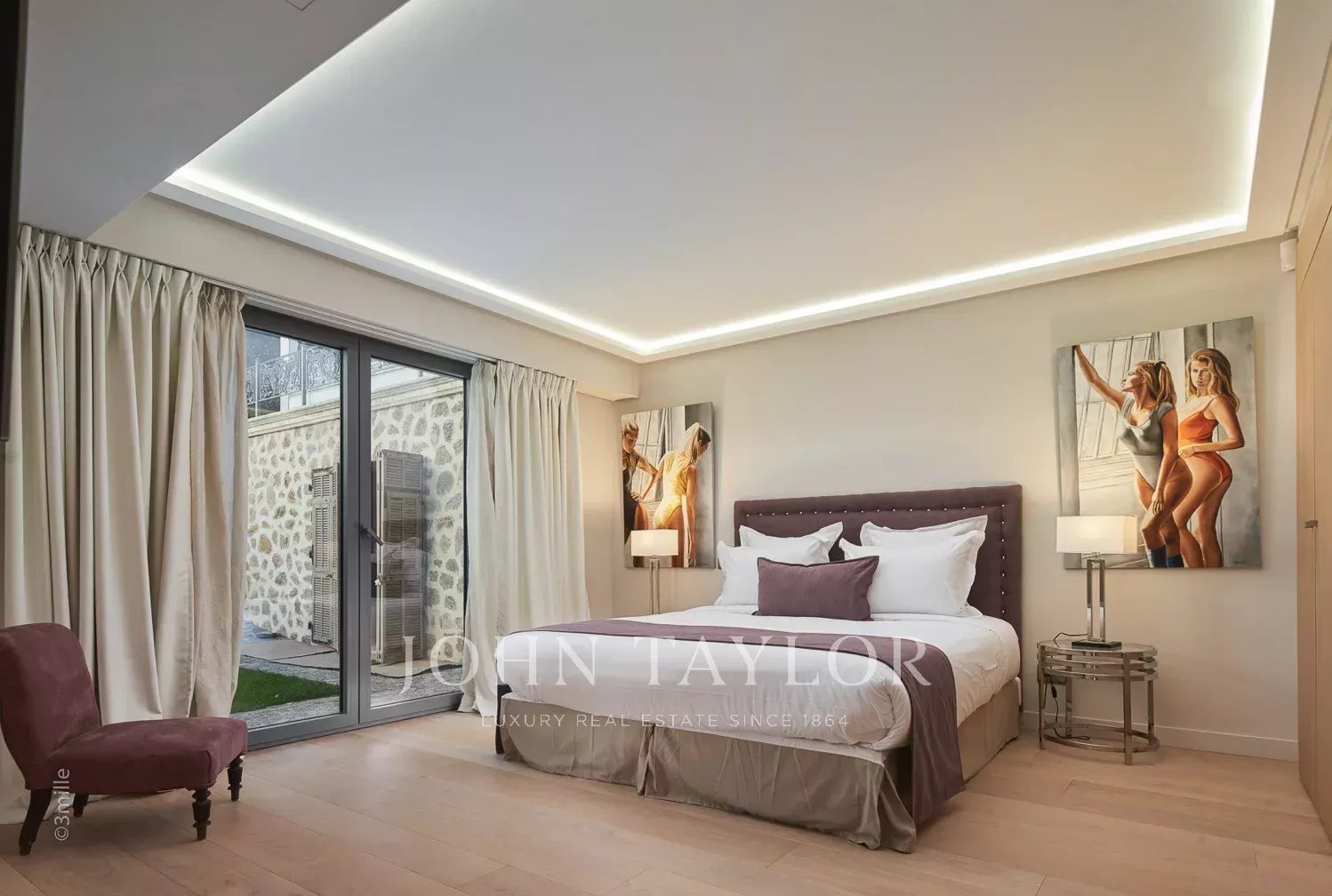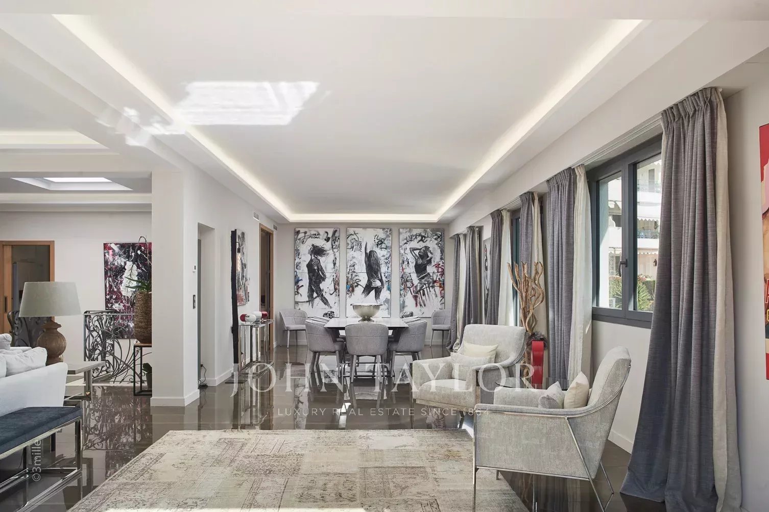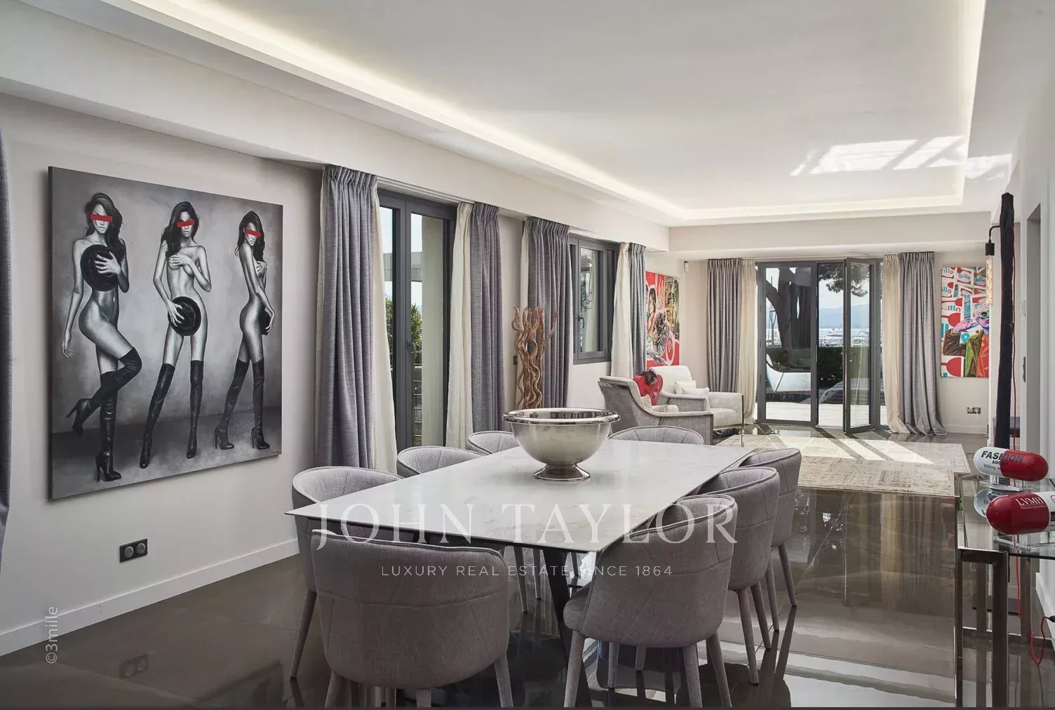 Die Villa wurde komplett renoviert und bietet ein Wohnzimmer mit Zugang zur Terrasse und zum Pool, ein Esszimmer, eine luxuriös ausgestattete Küche, 5 Schlafzimmer en suite, darunter ein Hauptschlafzimmer, ein kleines Büro, einen Massageraum, einen Fitnessraum, 2 geschlossene Garagen und 4 Parkplätze. Doppeltes Zugangstor zur Croisette.