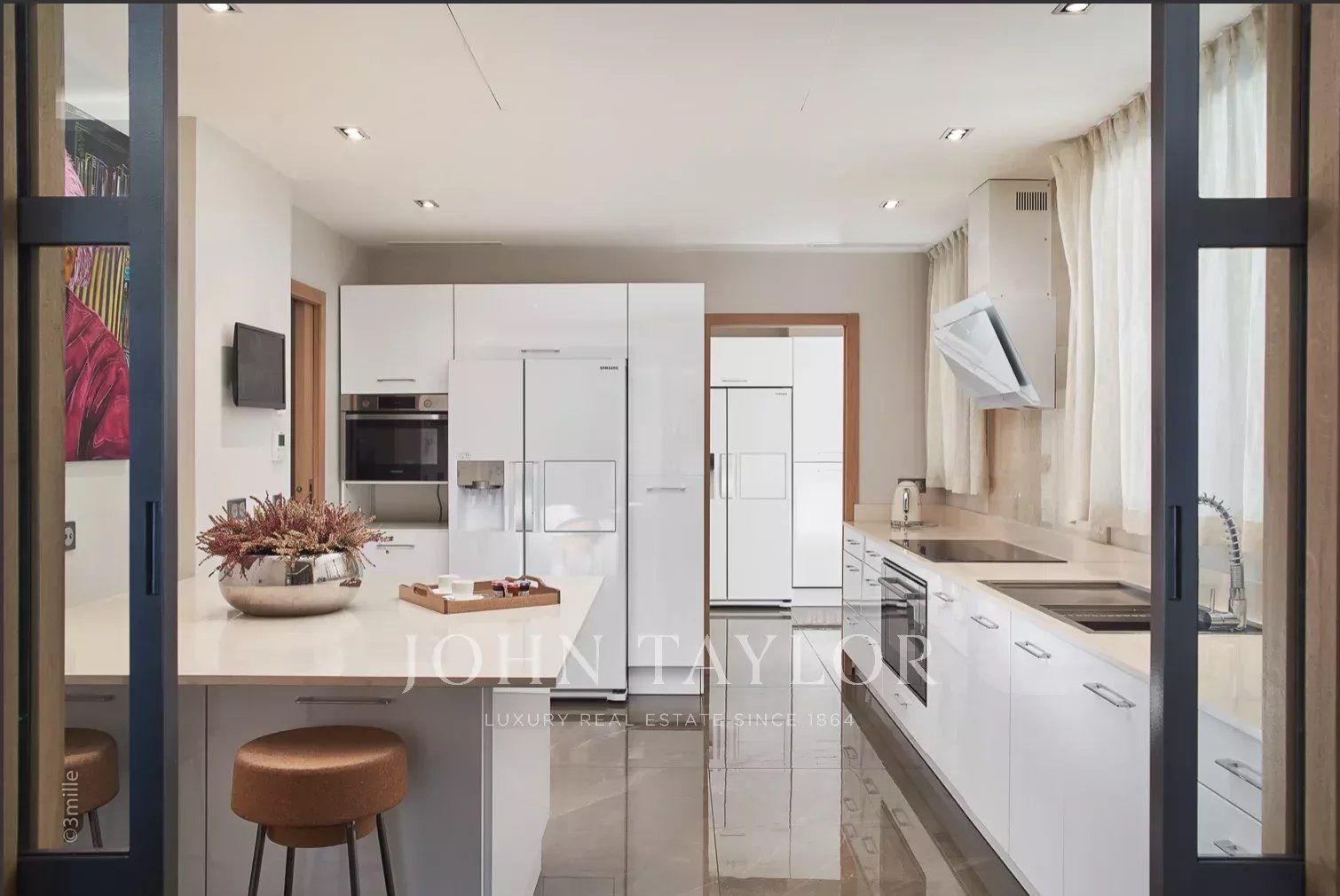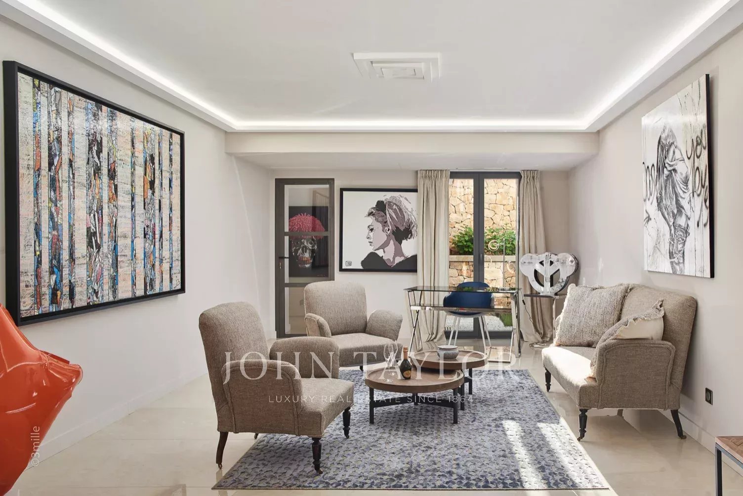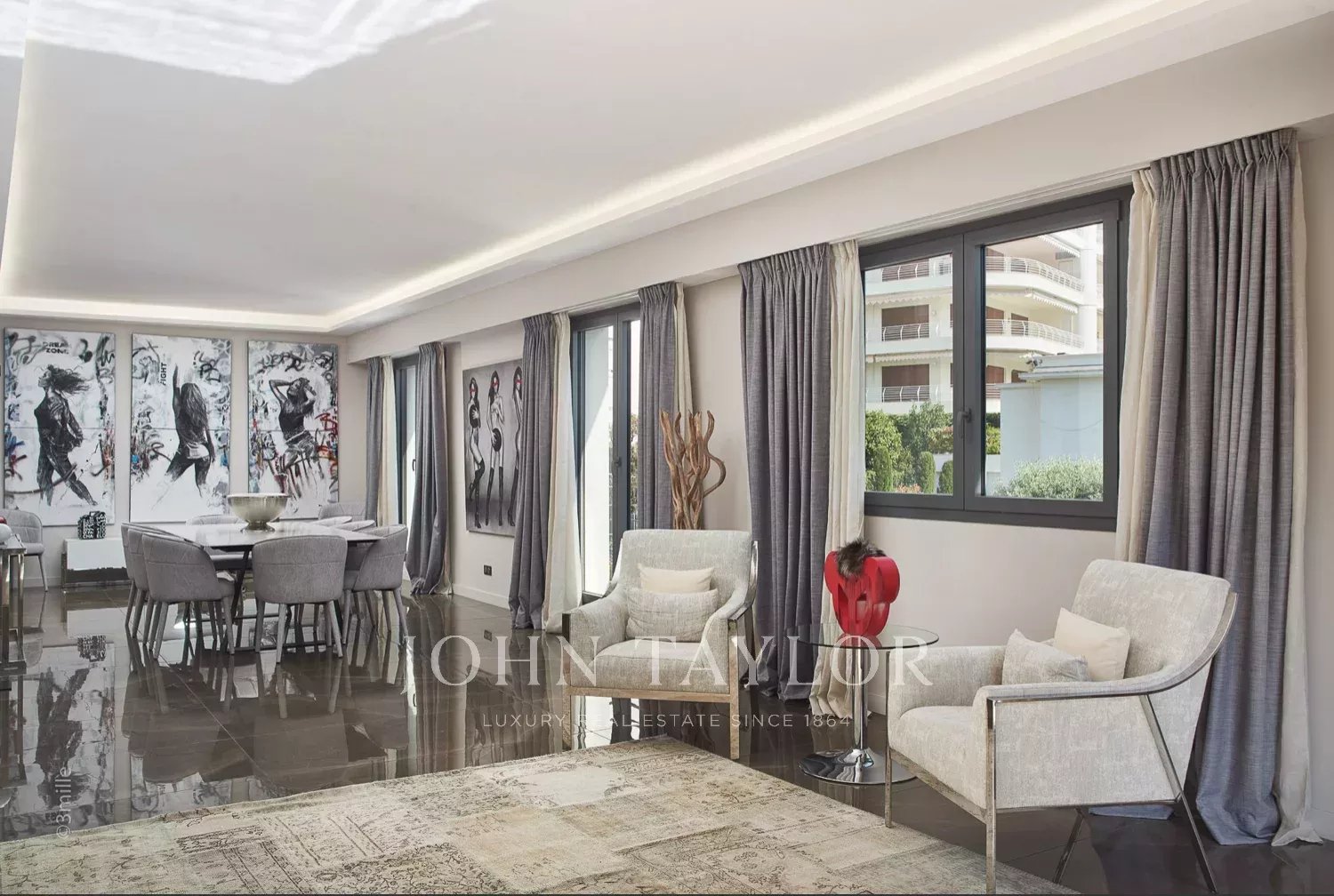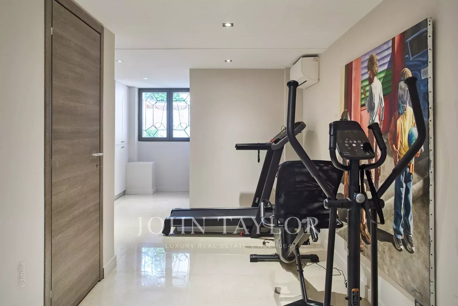 Die Villa wurde komplett renoviert und bietet ein Wohnzimmer mit Zugang zur Terrasse und zum Pool, ein Esszimmer, eine luxuriös ausgestattete Küche, 5 Schlafzimmer en suite, darunter ein Hauptschlafzimmer, ein kleines Büro, einen Massageraum, einen Fitnessraum, 2 geschlossene Garagen und 4 Parkplätze. Doppeltes Zugangstor zur Croisette.