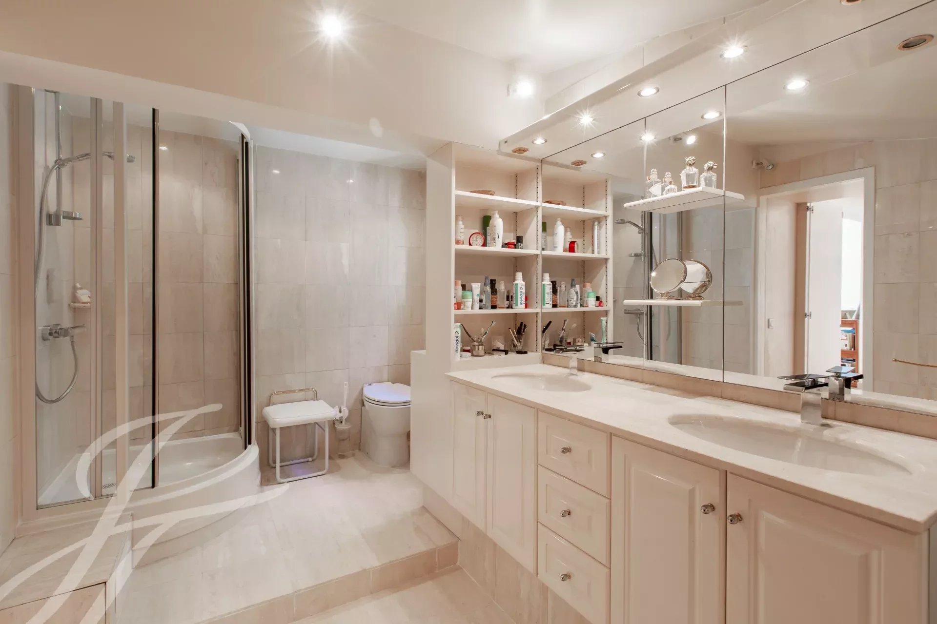 Sie besteht im Erdgeschoss aus einer Eingangshalle, einem Wohnzimmer mit Kamin und Esszimmer von 66 m², einem Büro/Veranda, einer separaten Küche, einer Toilette, zwei Schlafzimmern und einem Badezimmer. Im ersten Stock befindet sich ein 44 m² großes Hauptschlafzimmer, das sich zu einer 33 m² großen Tropezterrasse hin öffnet, ein Ankleidezimmer, ein Badezimmer und eine Toilette.