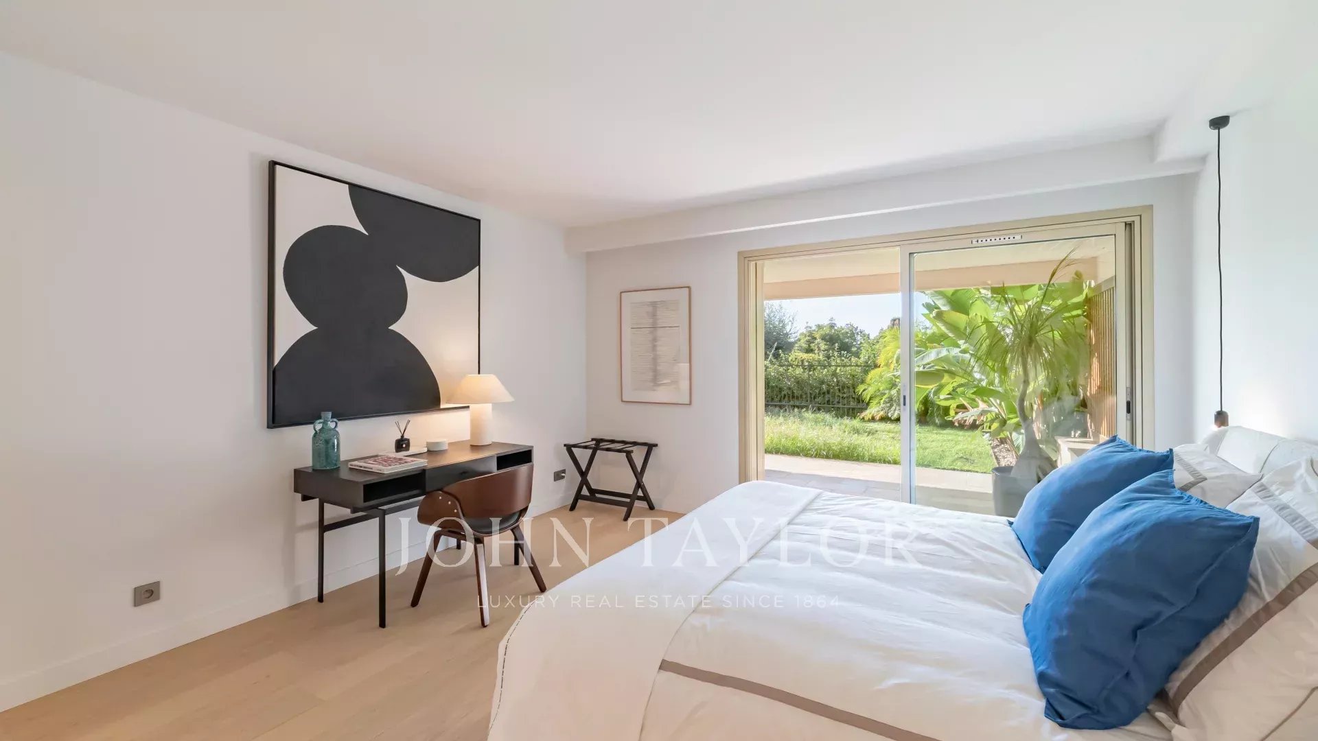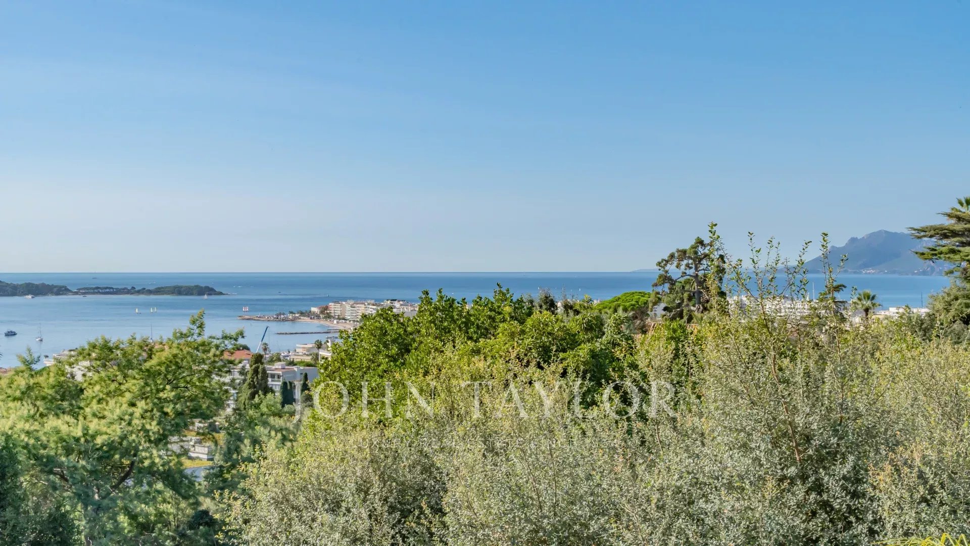 Sie verfügt über 4 Schlafzimmer en suite und einen privaten Garten mit Blick auf das Meer, die Lérins-Inseln und den Palm Beach.