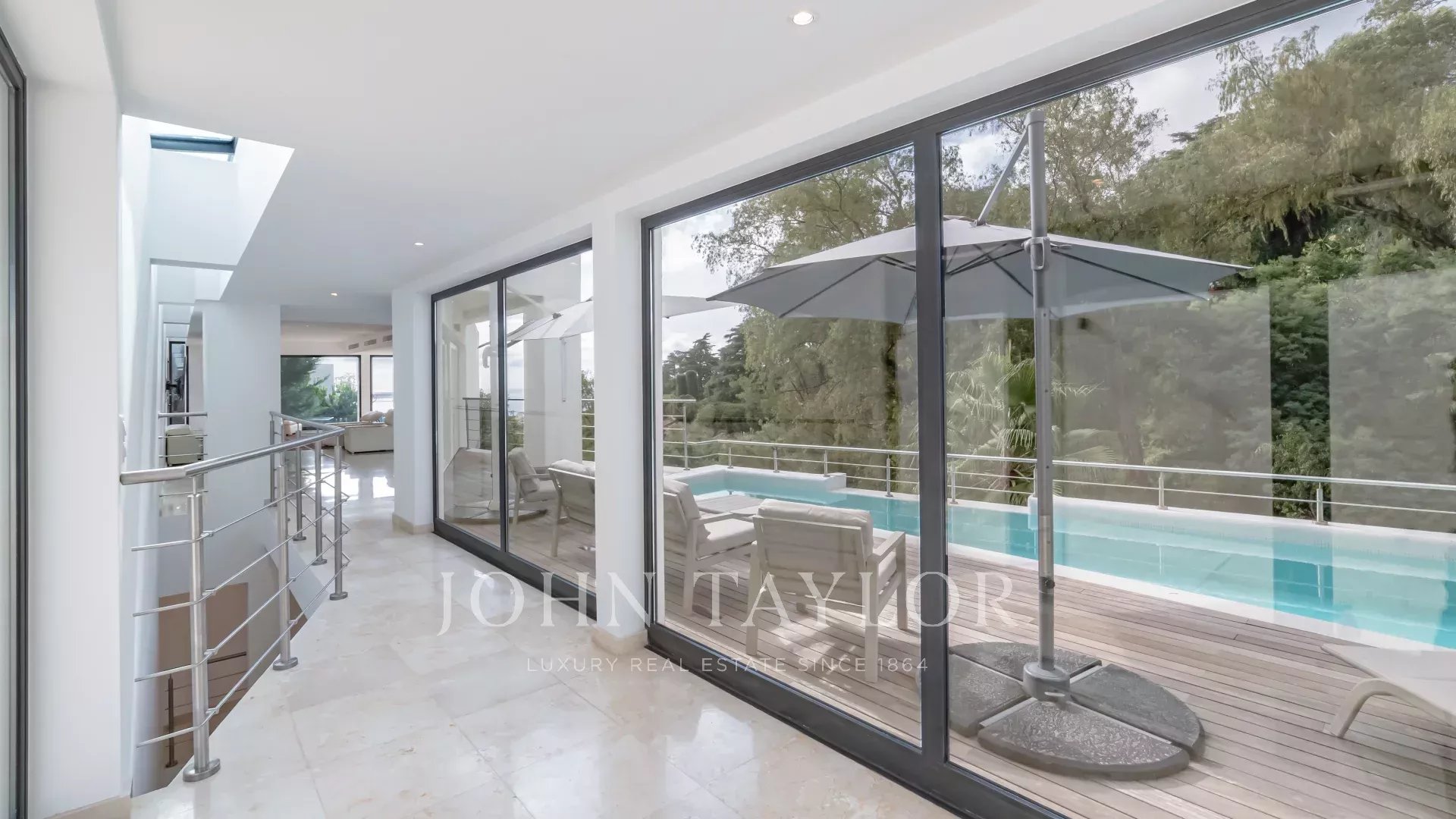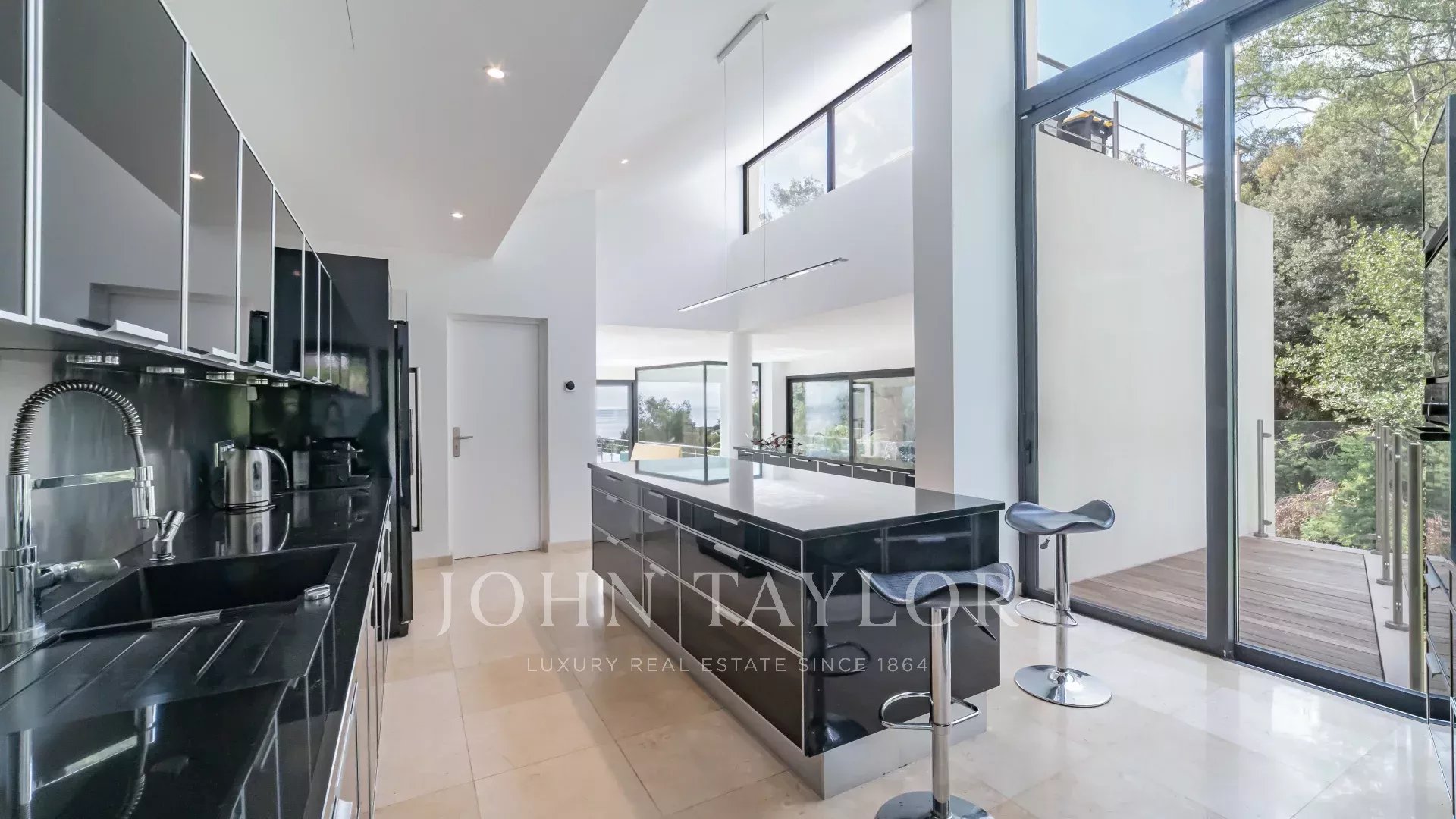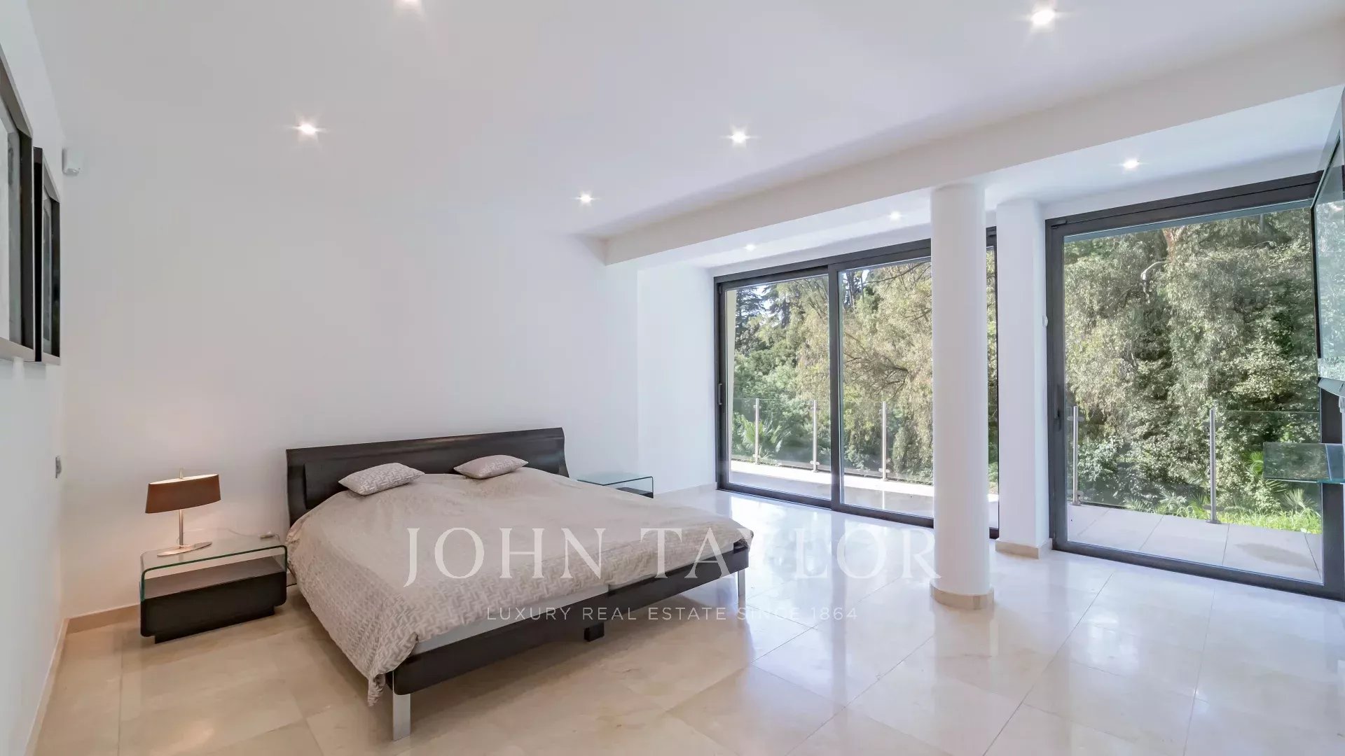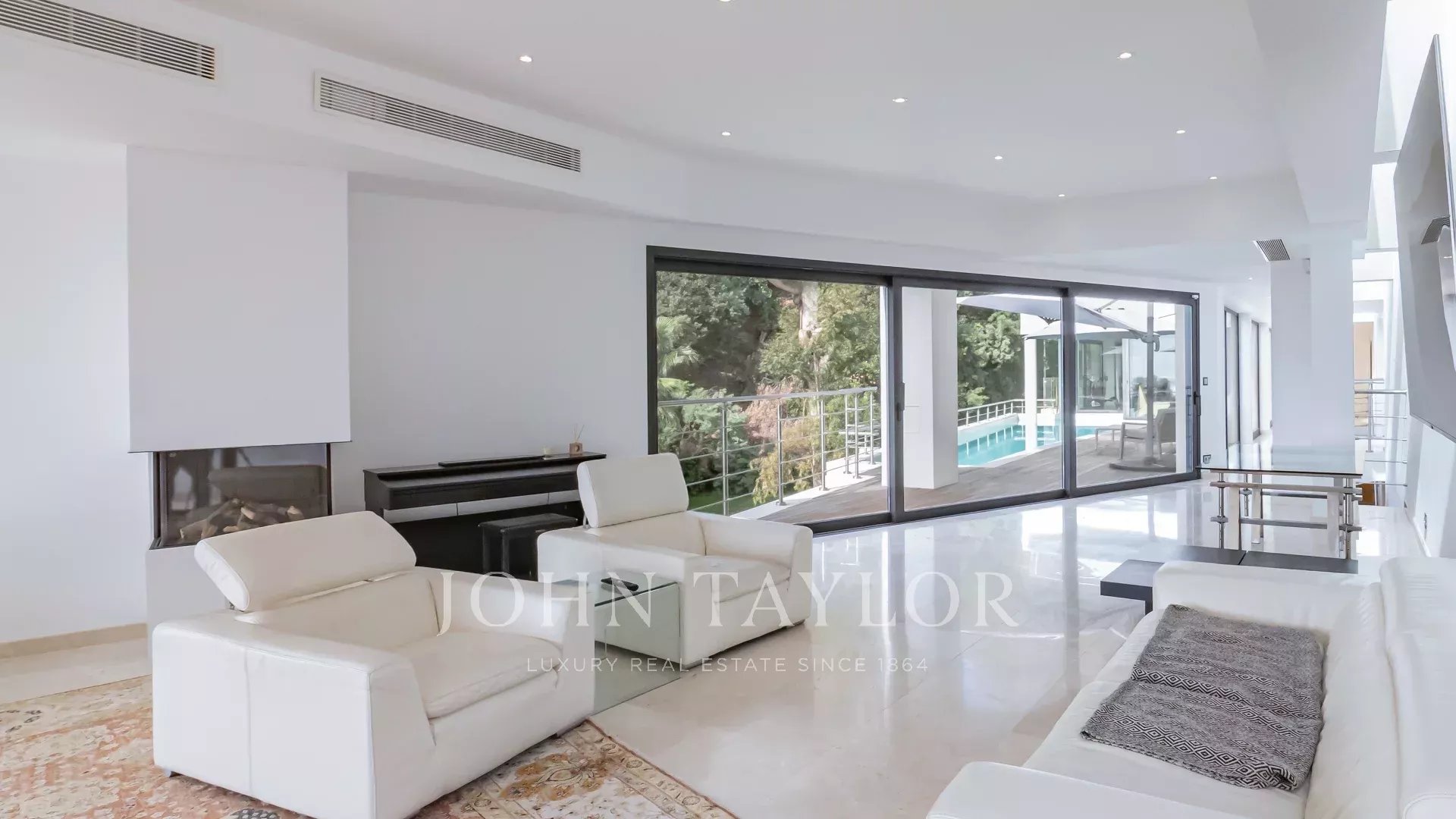 Die Villa profitiert außerdem von einem mediterranen Garten auf einem 6100 m² großen Grundstück mit einem beheizten Infinity-Pool, Meerblick und luxuriösen Ausstattungsmerkmalen.