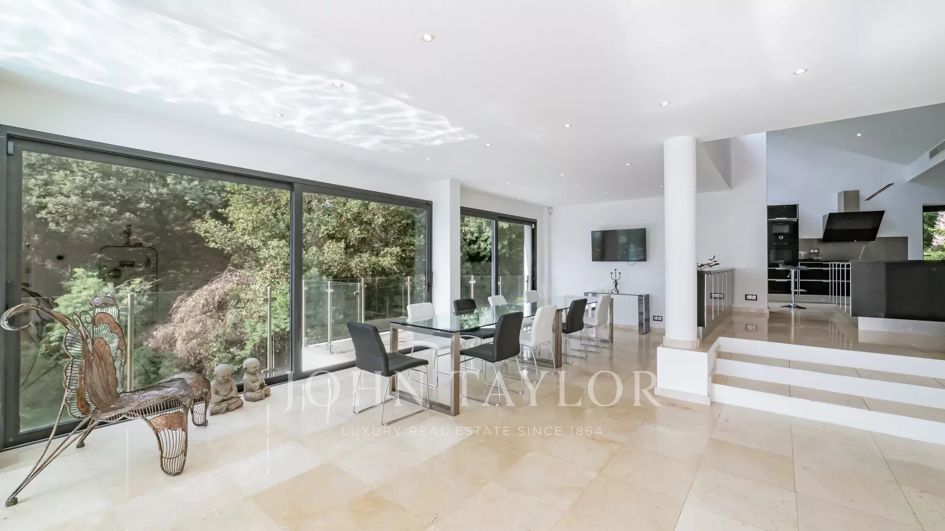 In einer ruhigen Wohngegend, 500 Meter von den Stränden und 10 Minuten vom Stadtzentrum entfernt, liegt diese helle Villa mit zeitgenössischer Architektur. Sie bietet schöne Materialien und einen idyllischen Lebensraum.