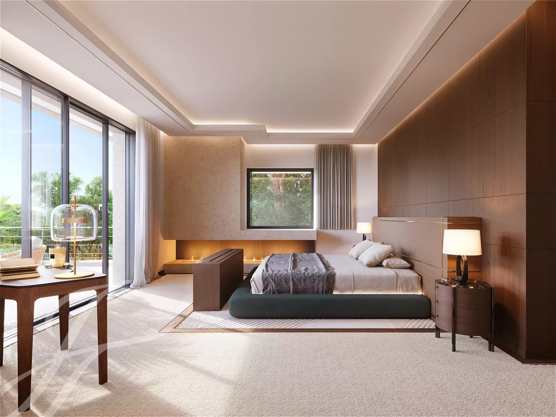 Die Nachtebene von ca. 260 m² umfasst ein Hauptschlafzimmer von ca. 70 m² mit Ankleidezimmer, Bad/Dusche + Hammam, vier Schlafzimmer mit Duschbad/WC en suite, alle mit Zugang zur Terrasse mit Meerblick.