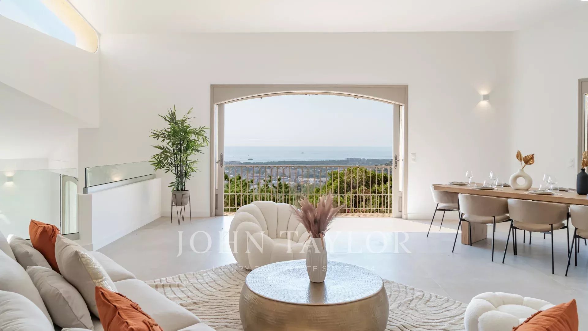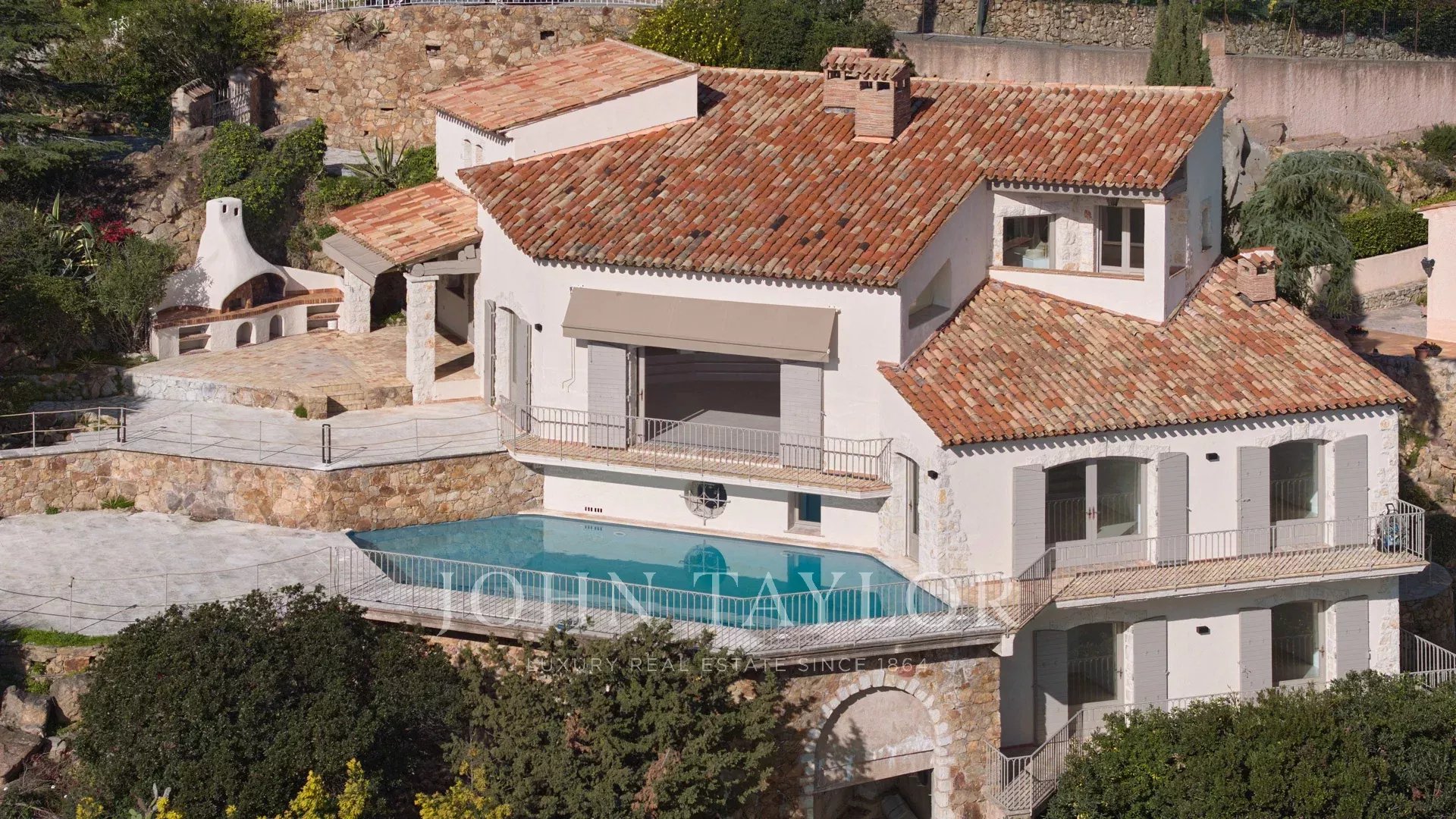 Auf einem Hügel in der Nähe des Zentrums von Mandelieu gelegen, mit einem Panorama-Meerblick, bietet diese schöne Villa mit provenzalischer Architektur, die komplett nach Süden renoviert wurde, großzügige Volumen und gesellige Wohnbereiche.