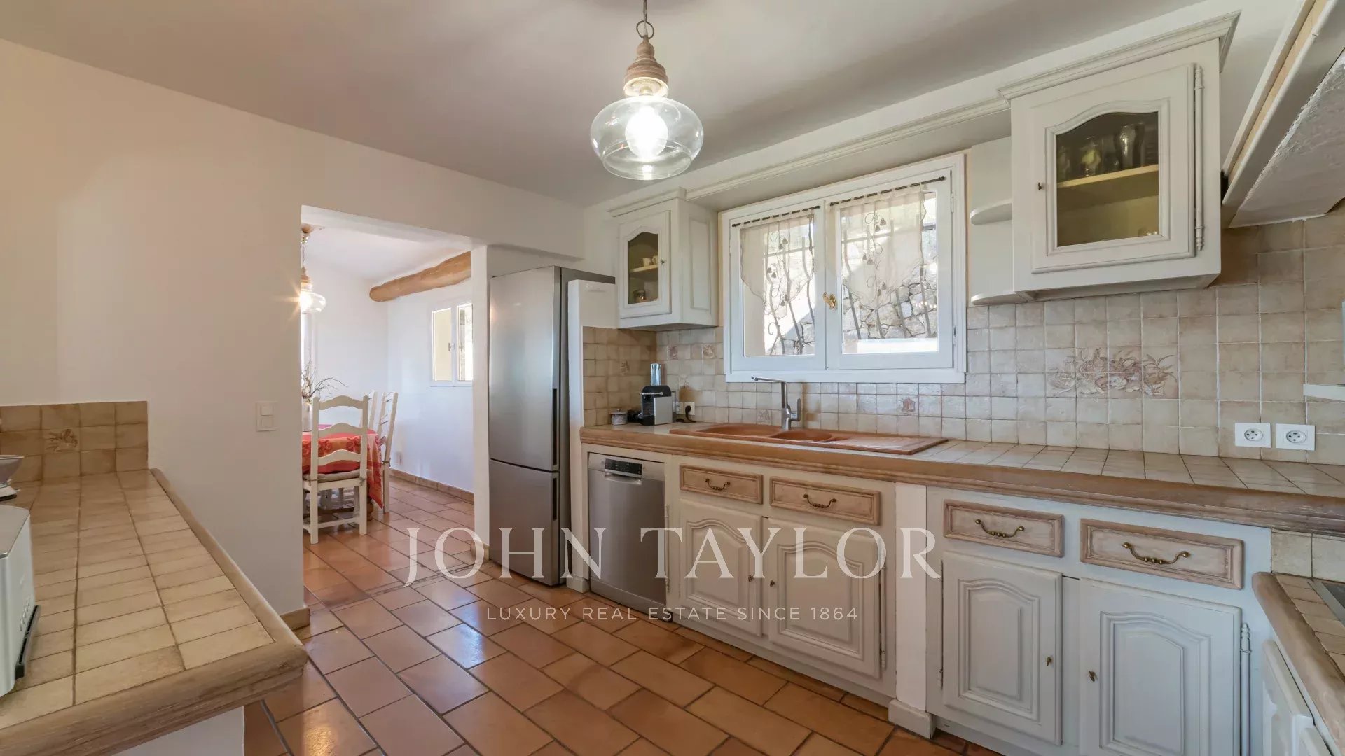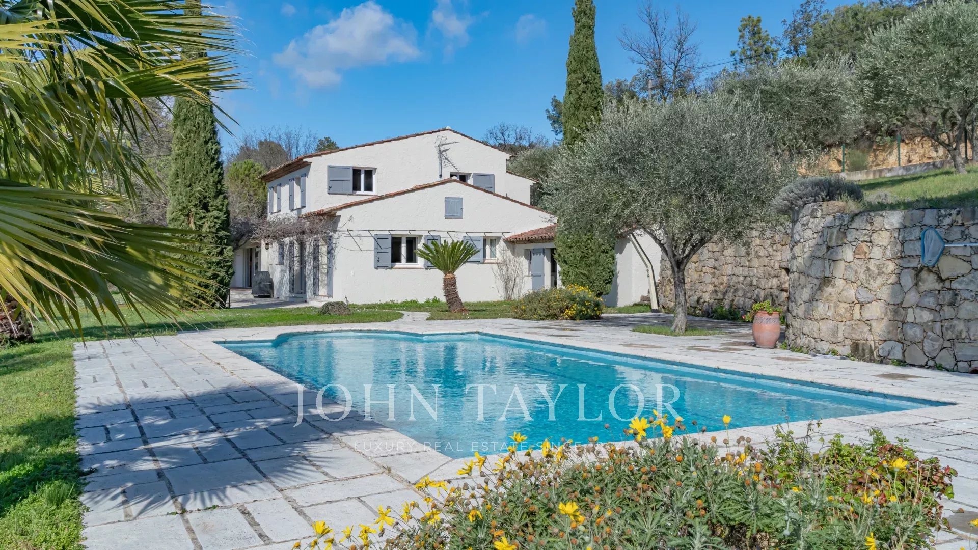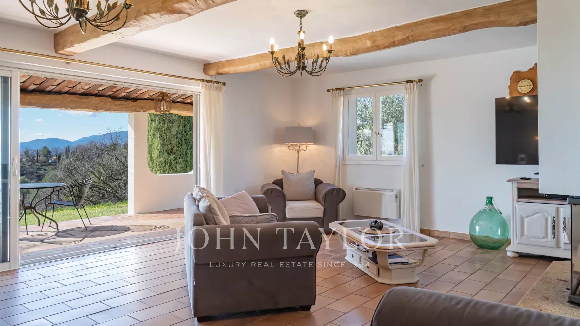 In einer ruhigen Gegend, in der Nähe von Geschäften und dem Dorf Montauroux, Villa von ca. 210m2 auf einem Grundstück von 3600m2 mit Pool und Olivenbäumen mit Panoramablick auf den Kanton Fayence.