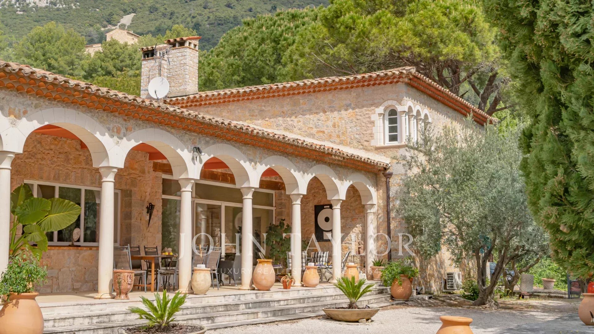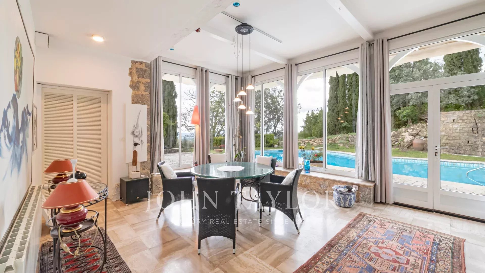 Le Mas Saint Roch war der Wohnsitz eines berühmten Malers des 20. Jahrhunderts. Es besteht aus einem großen Eingangsbereich, einer Küche, einem Esszimmer und einem Wohnzimmer mit Kamin, das sich zu einer wunderschönen überdachten Terrasse hin öffnet.