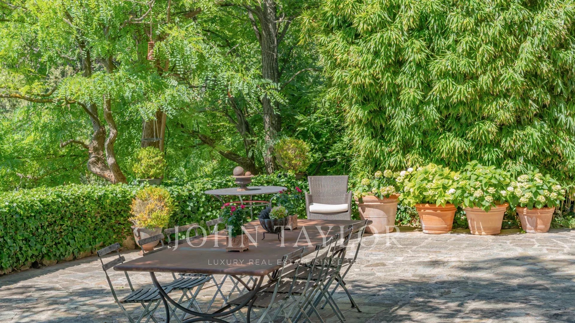 Der Landschaftspark ist eine wahre Oase des Friedens: Hundertjährige Bäume, Karpfenteich, großer Pool mit Poolhaus und Sommerküche, alles erhaben durch ein 180°-Panorama. Eine Doppelgarage und eine private Quelle - ein seltener Vorteil - runden die Ausstattung ab.