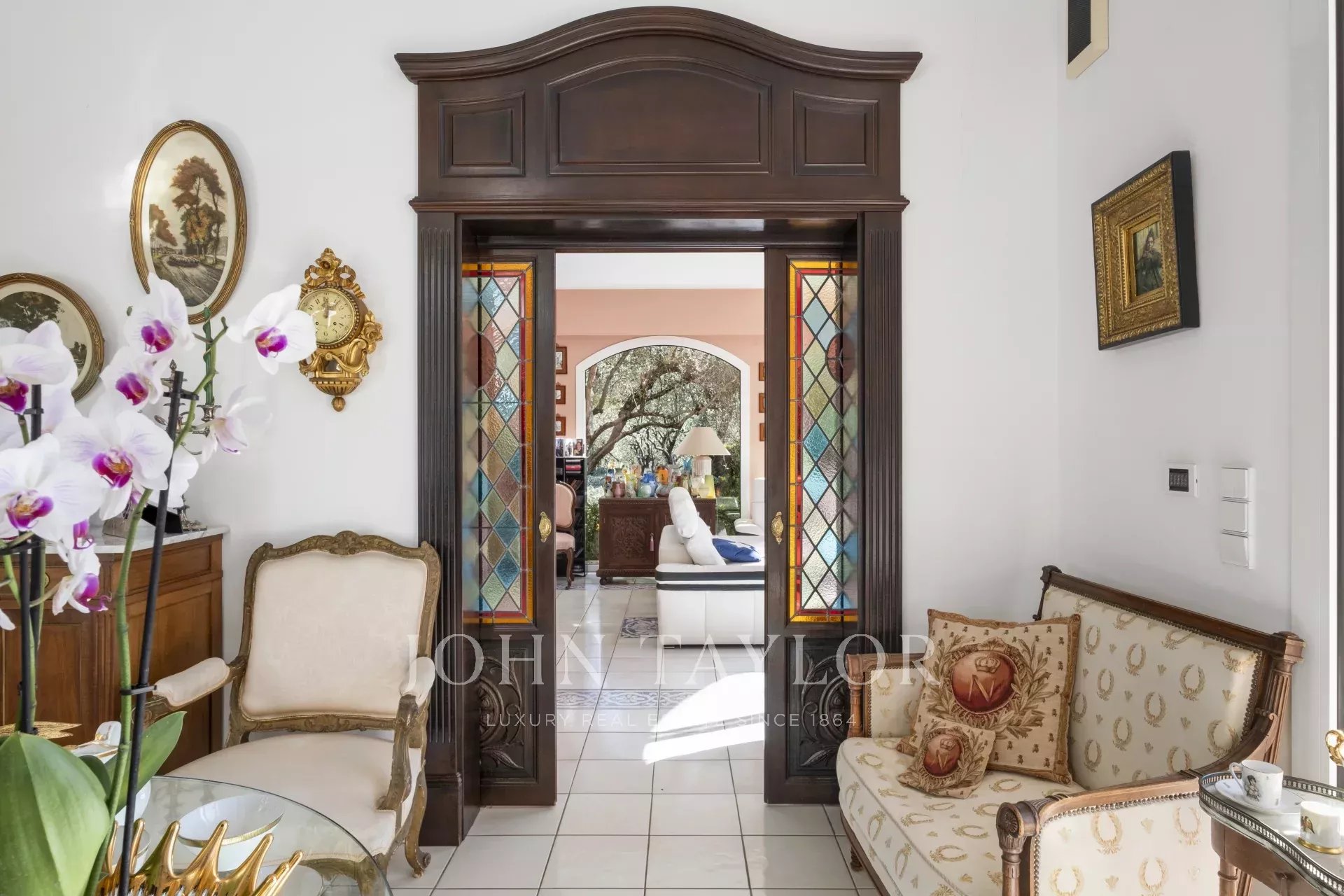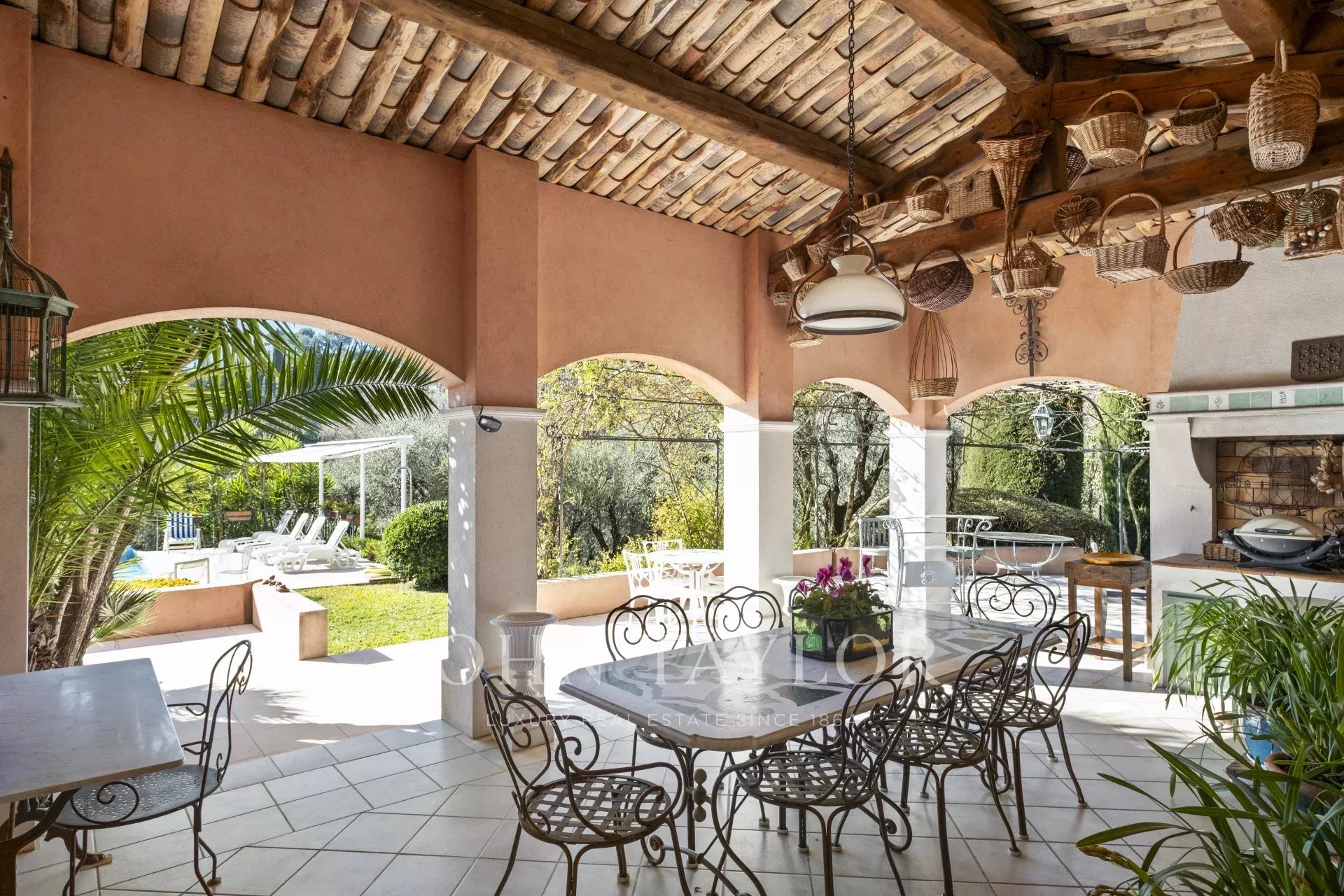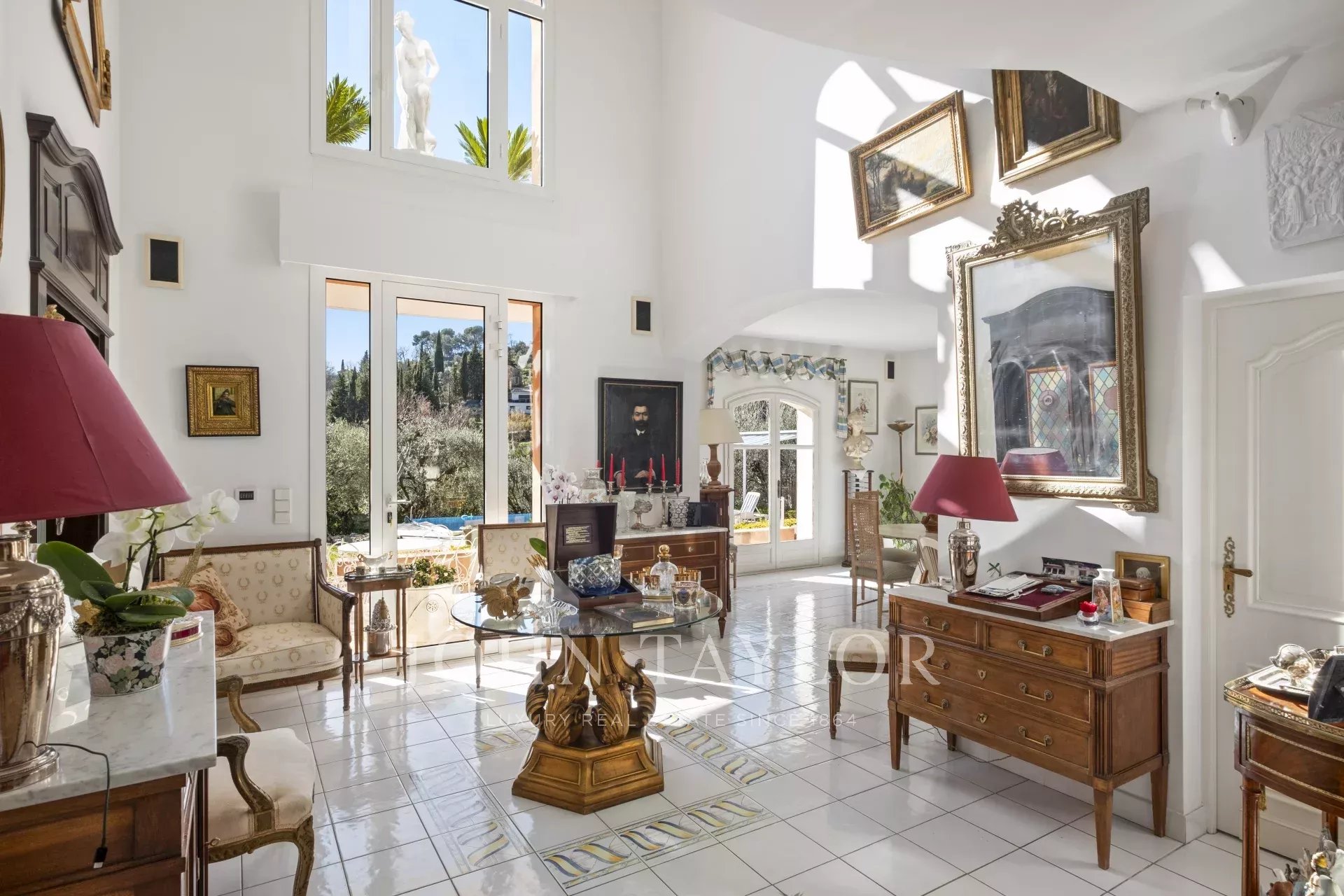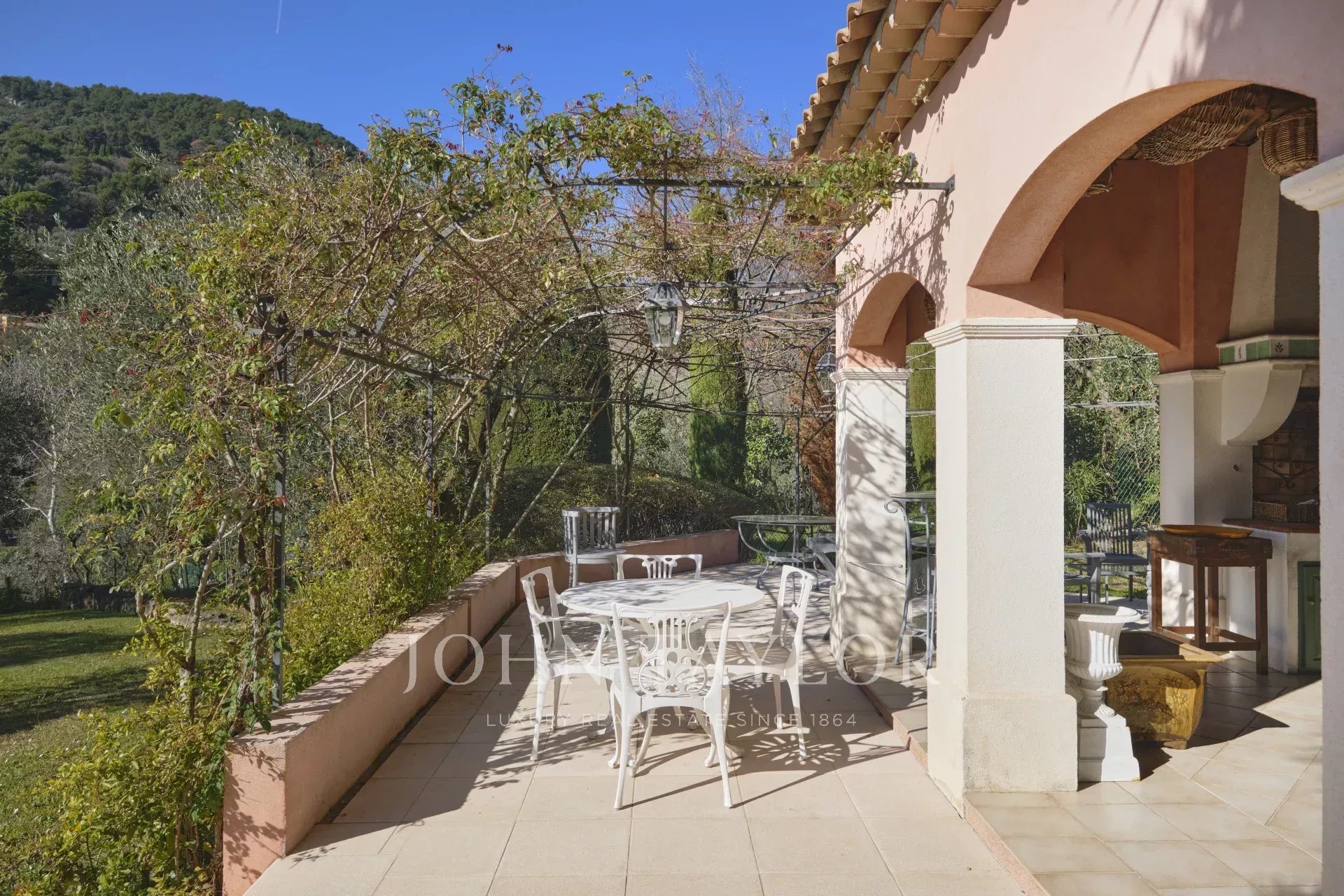 Diese zeitlos elegante Villa, ruhig gelegen im idyllischen Hinterland von Cannes, beeindruckt durch ein großzügiges 5000 m2 mediterranes Grundstück, einen beheizten Infinity-Pool, eine einladende Sommerküche und herrliche Terrassen.