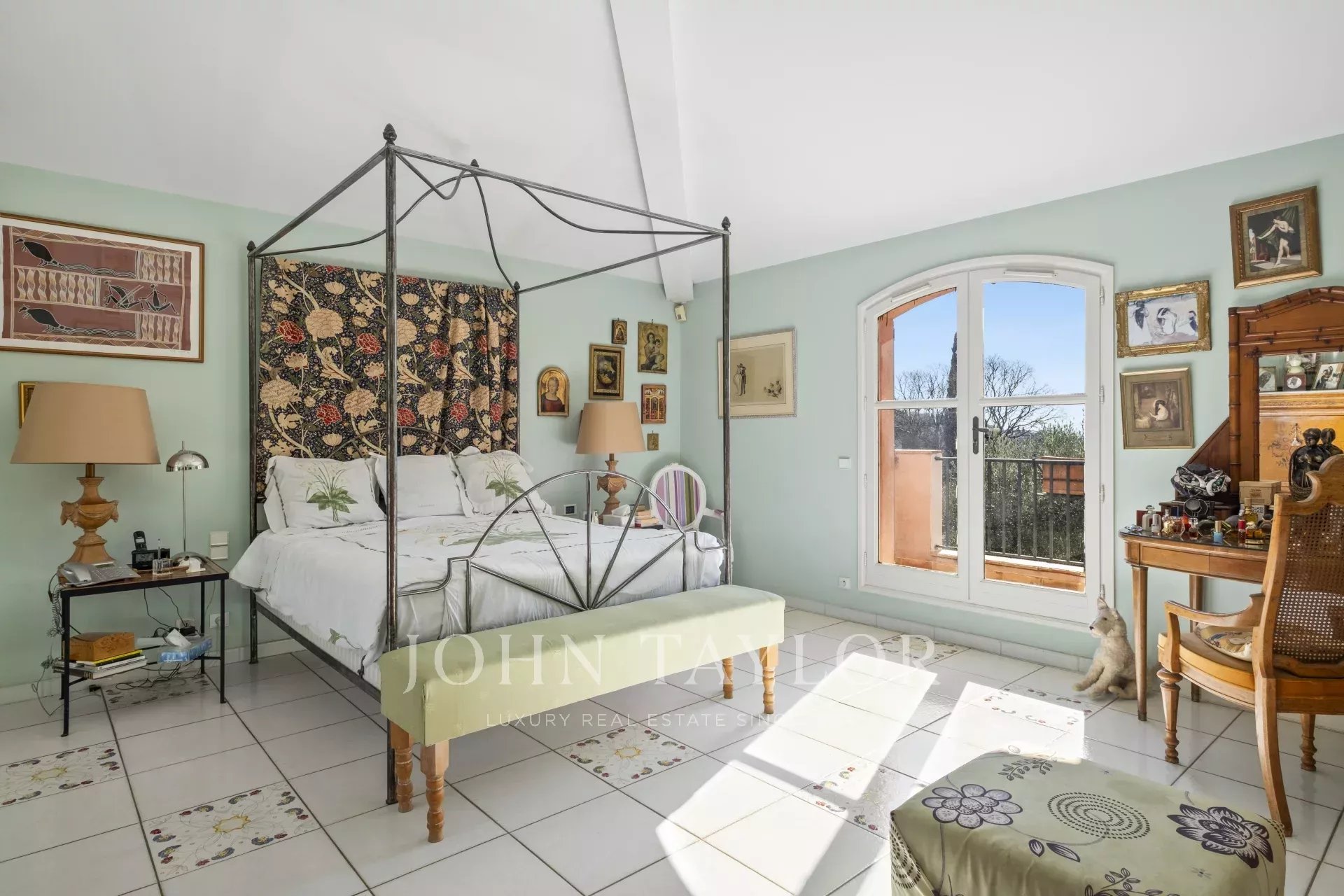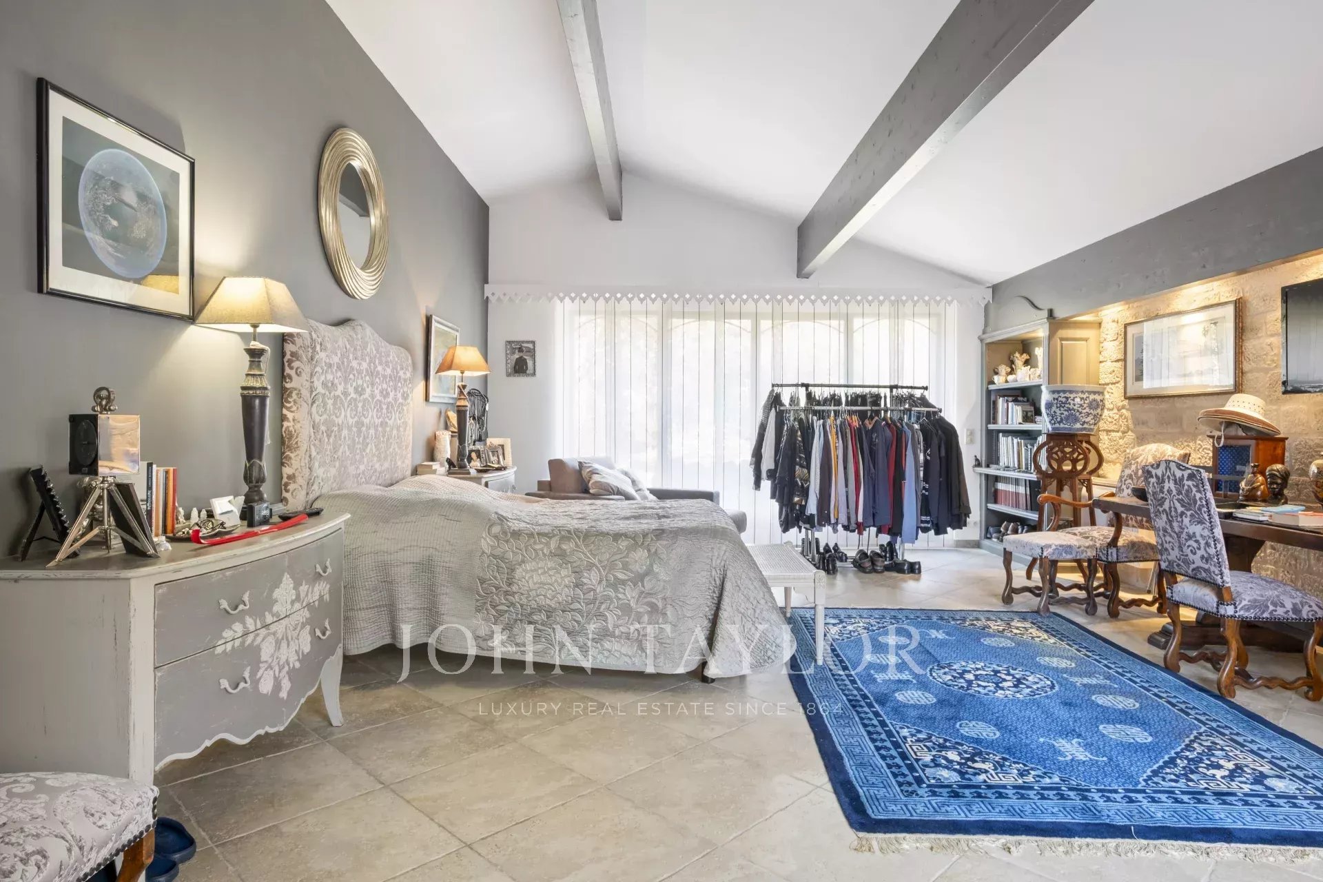 Die Hauptvilla besticht durch eine prächtige Eingangshalle mit Kathedralendecke, ein lichtdurchflutetes Wohnzimmer mit einem gemütlichen Kamin sowie eine provenzalische Küche, die sich zum Esszimmer öffnet. Das außergewöhnliche 60 m2 große Elternschlafzimmer im Erdgeschoss und die beiden komfortablen Schlafzimmer im Obergeschoss, jeweils mit eigenem Bad und Zugang zu einem hübschen Balkon, vervollständigen den Wohnbereich.