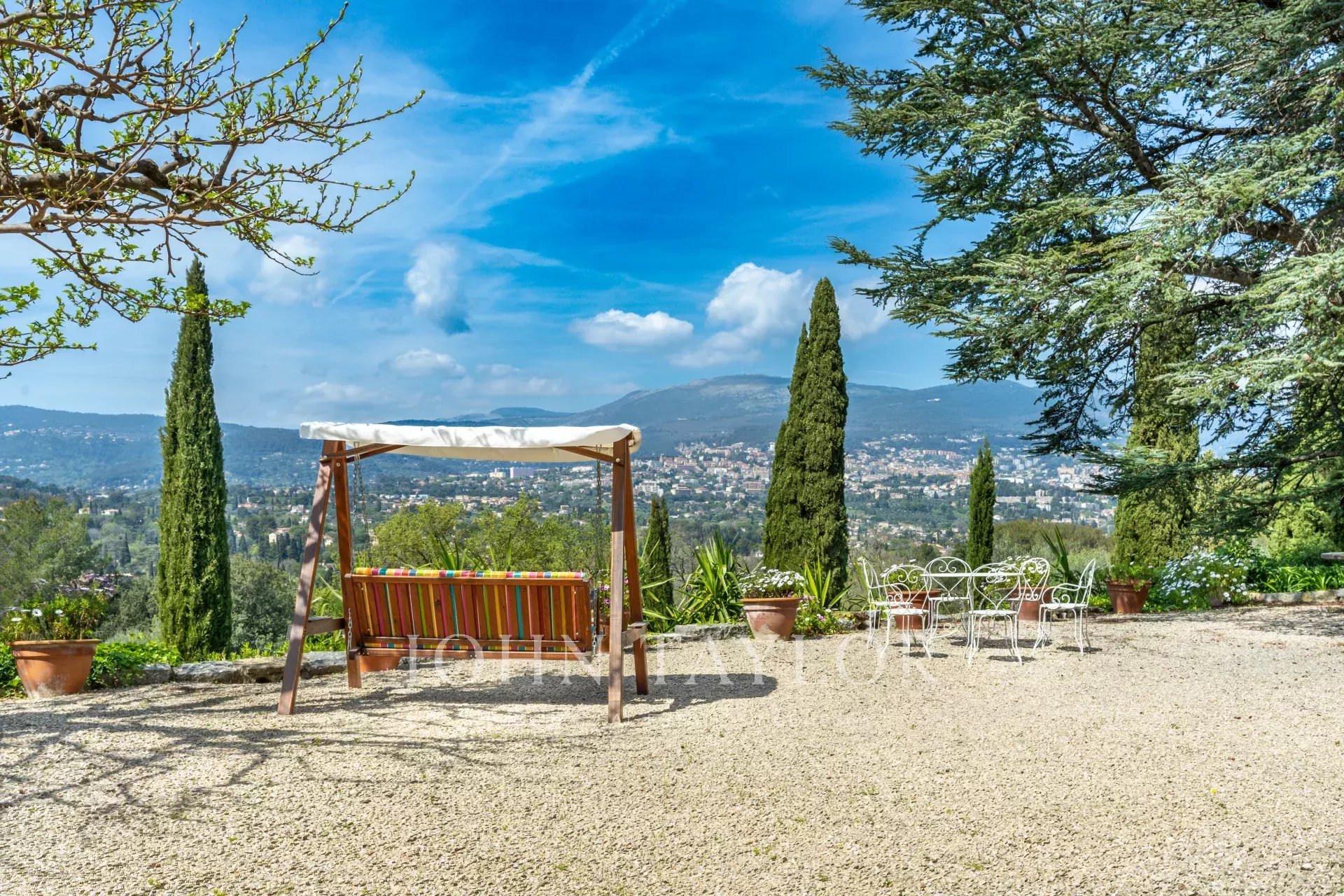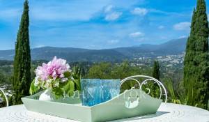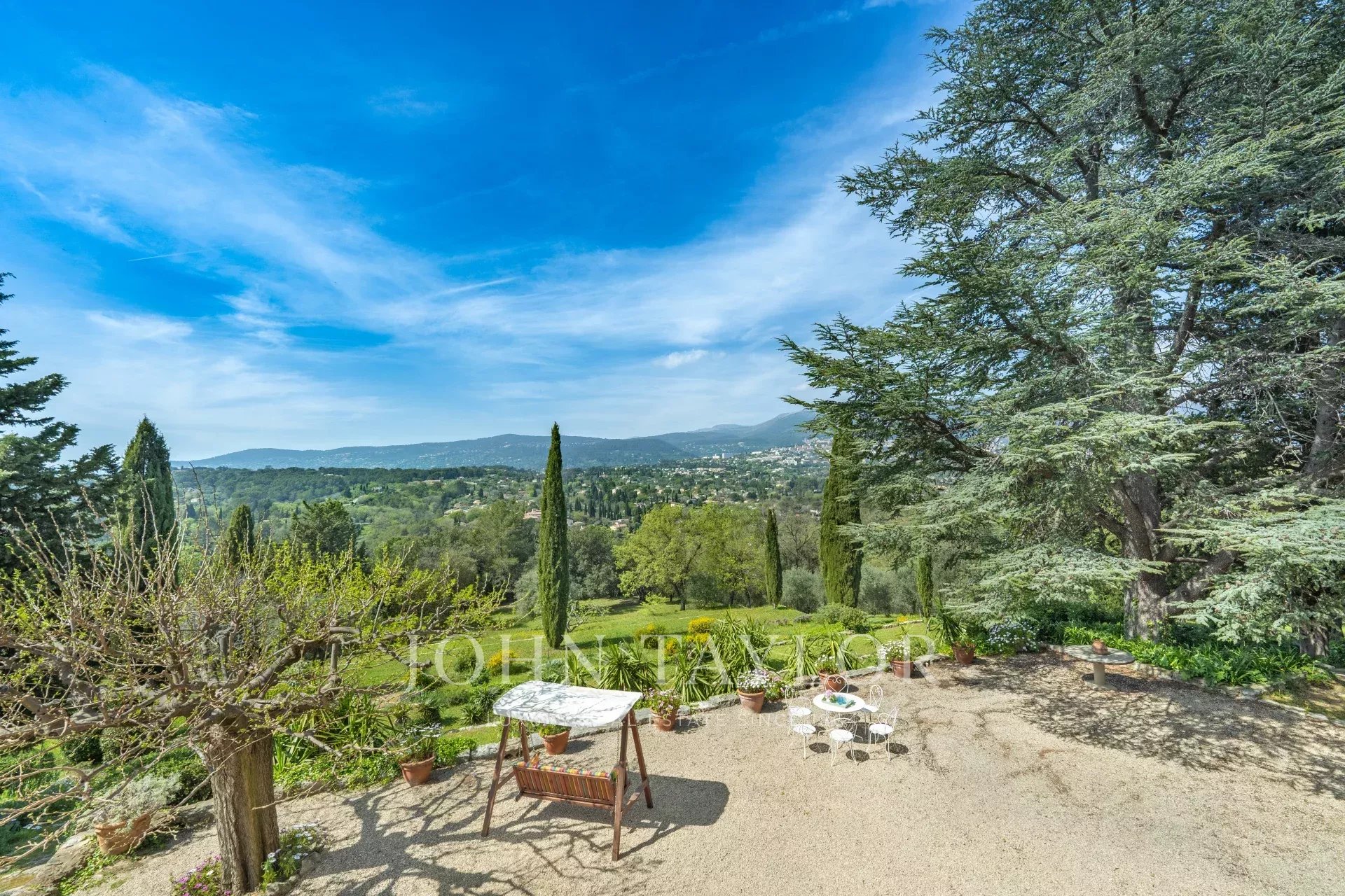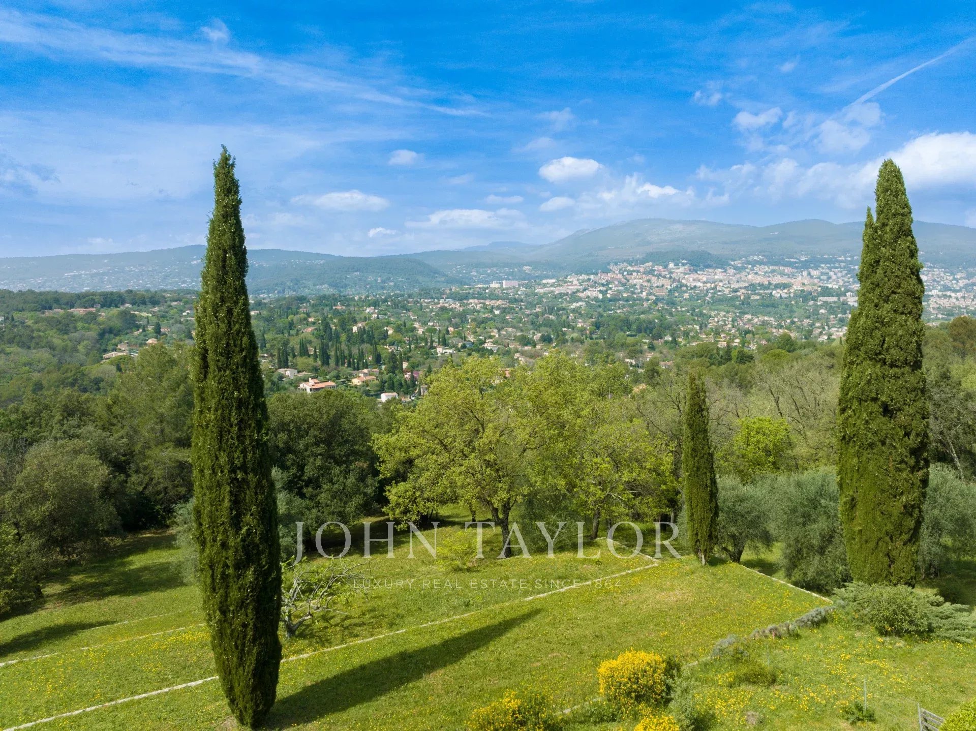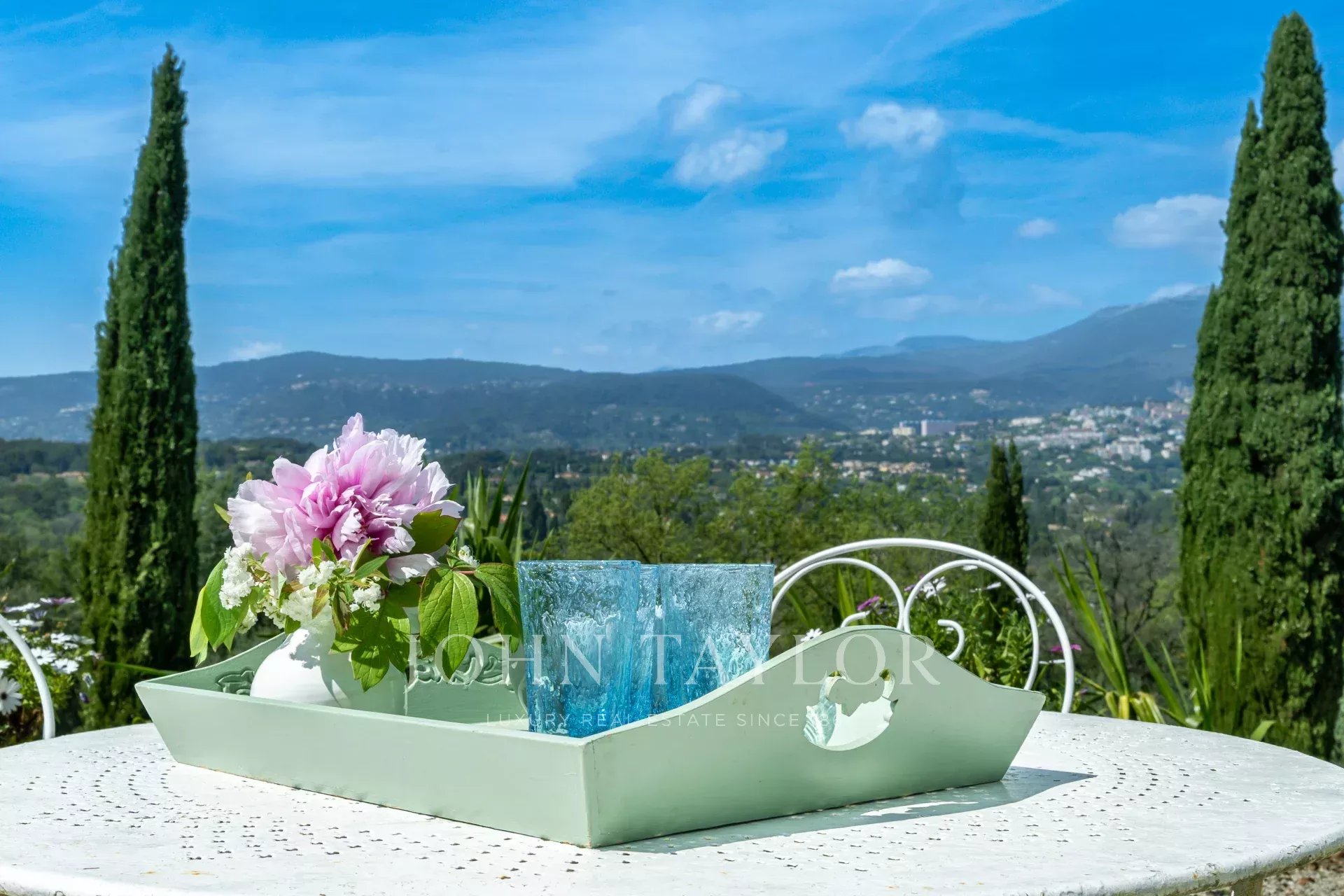 Das nach Südwesten ausgerichtete Anwesen bietet atemberaubende Ausblicke über die Landschaft von Grasse sowie einem kleinem Meerblick!