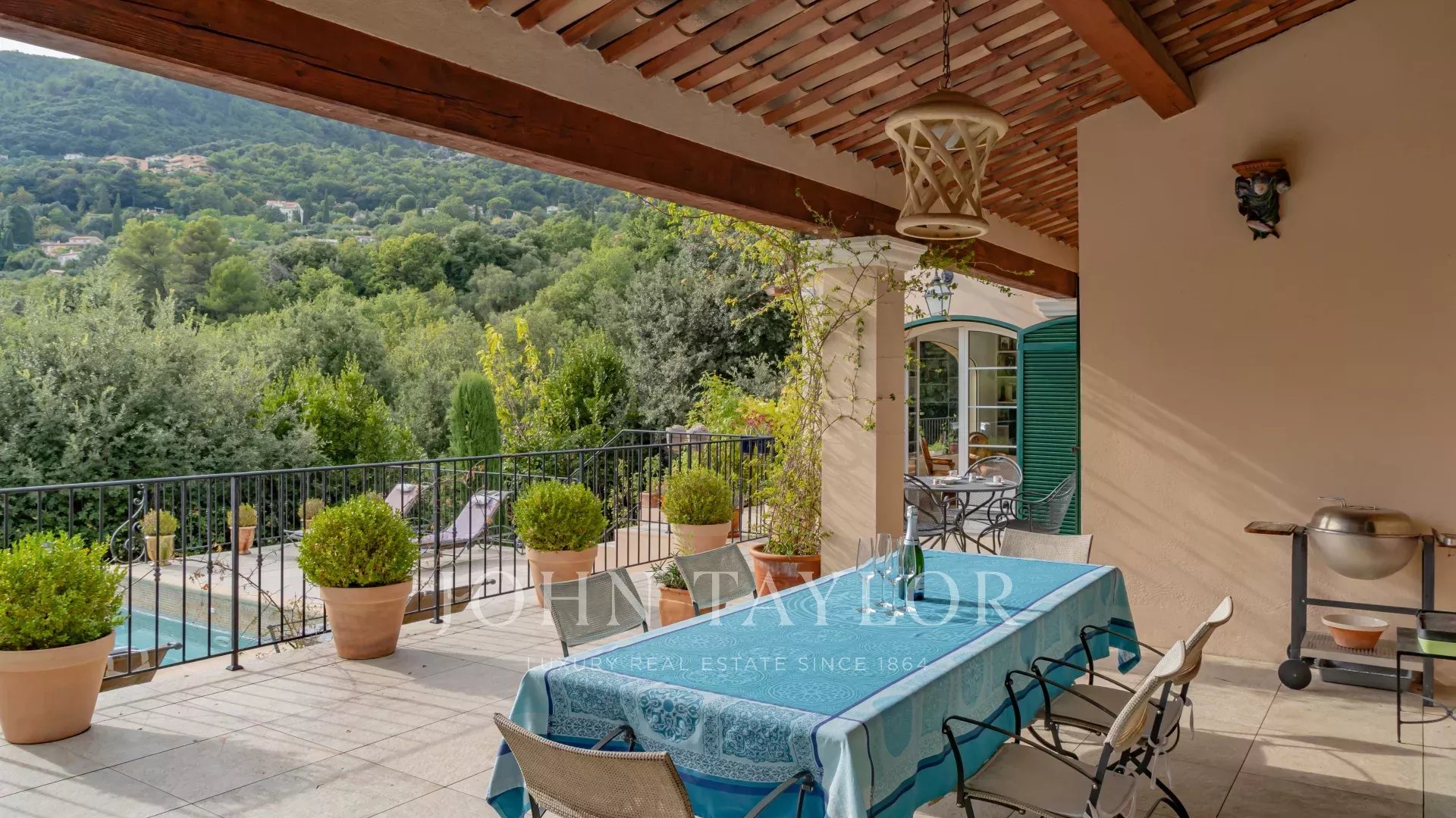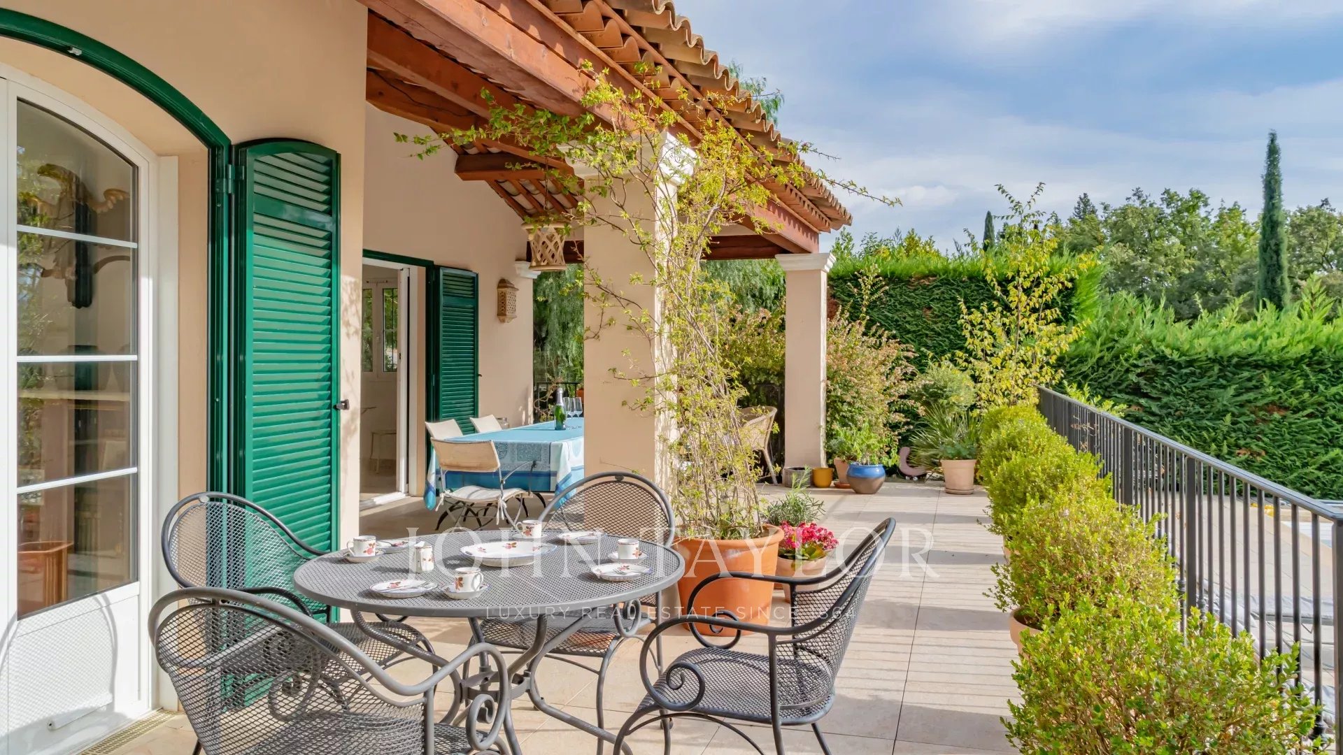 Diese charmante Villa im provenzalischen Stil mit einer Wohnfläche von ca. 240 m² befindet sich in idealer Lage nahe Châteauneuf-de-Grasse, eingebettet in ein wunderschön angelegtes Grundstück von fast 6.200 m².