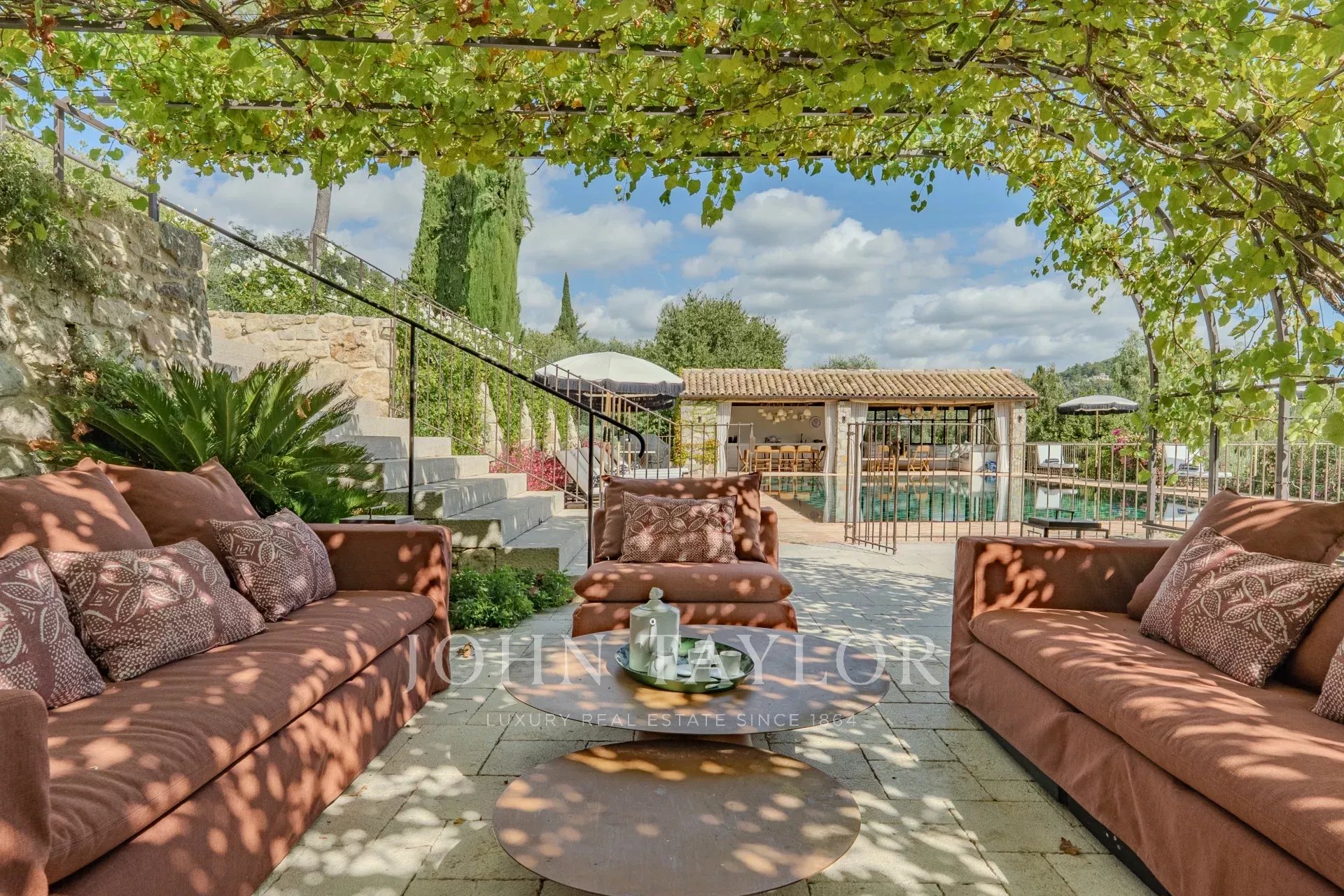 Diese außergewöhnliche, bis ins Detail hochwertig renovierte Bastide mit separatem Gästehaus ist ein echtes Juwel in der begehrtesten Wohnlage von Grasse.