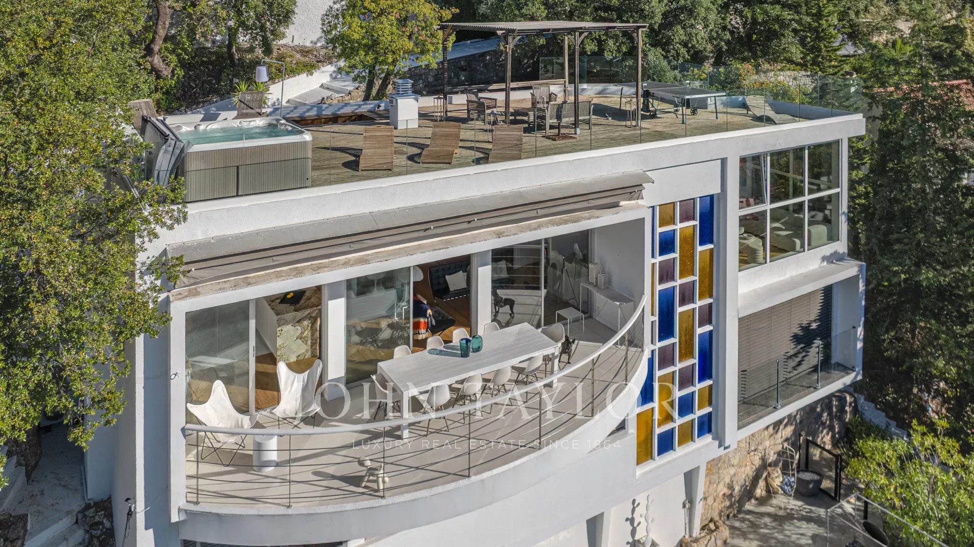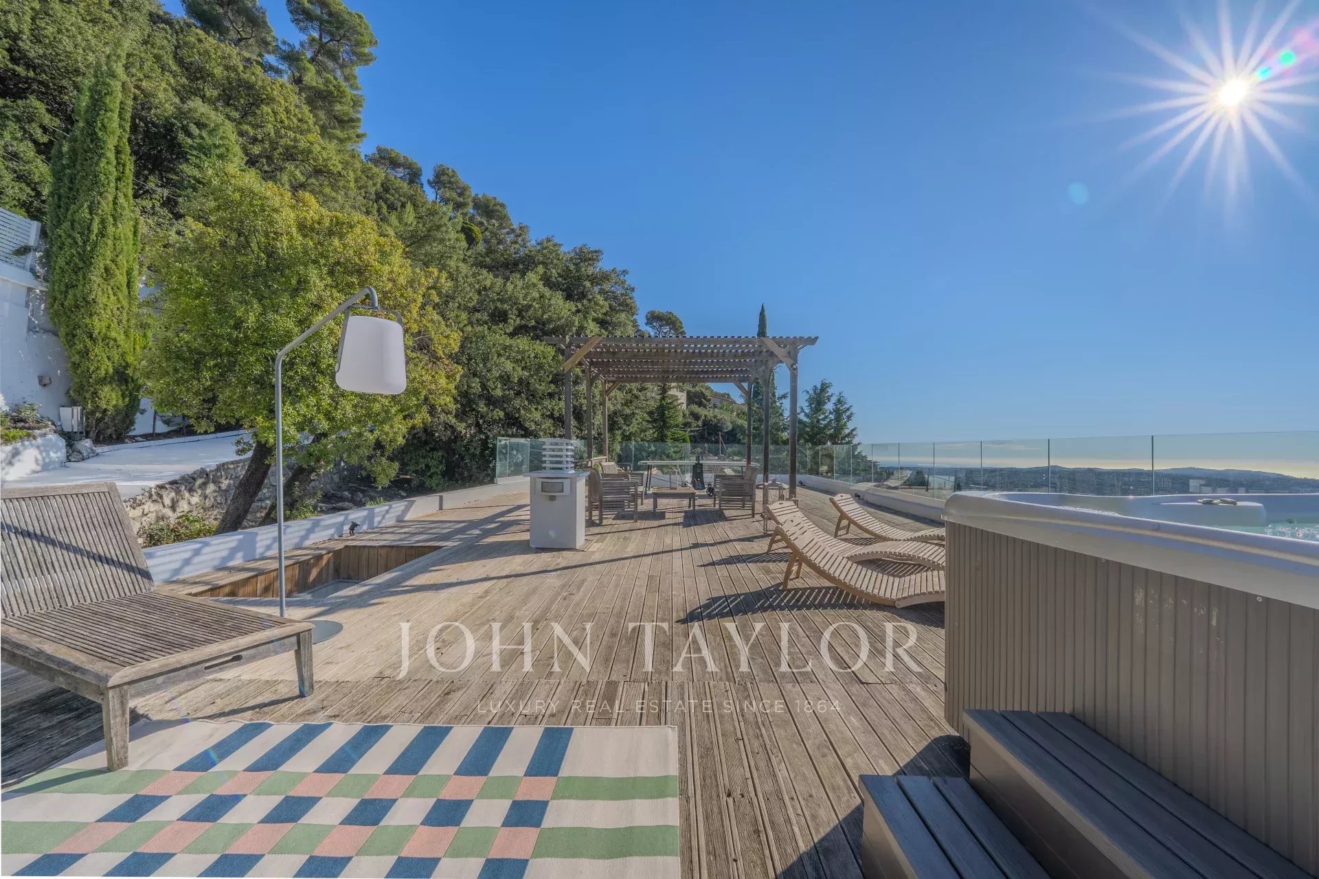 Die Villa wurde von einem renommierten Architekten erbaut und vollständig renoviert. Sie liegt in einer ruhigen Umgebung inmitten eines 800 m² großen Gartens mit Pool und mehreren Sonnenterrassen.