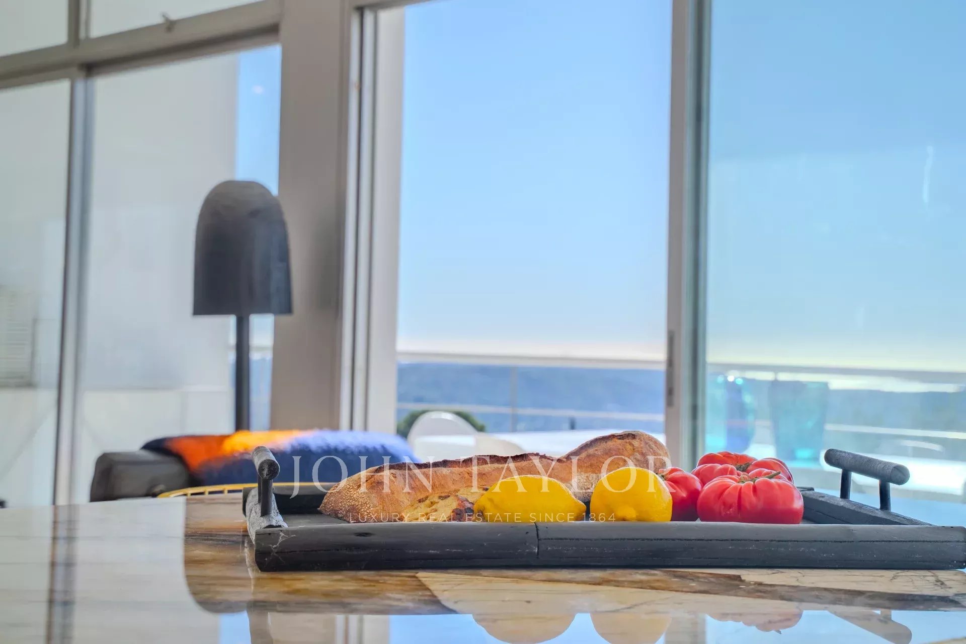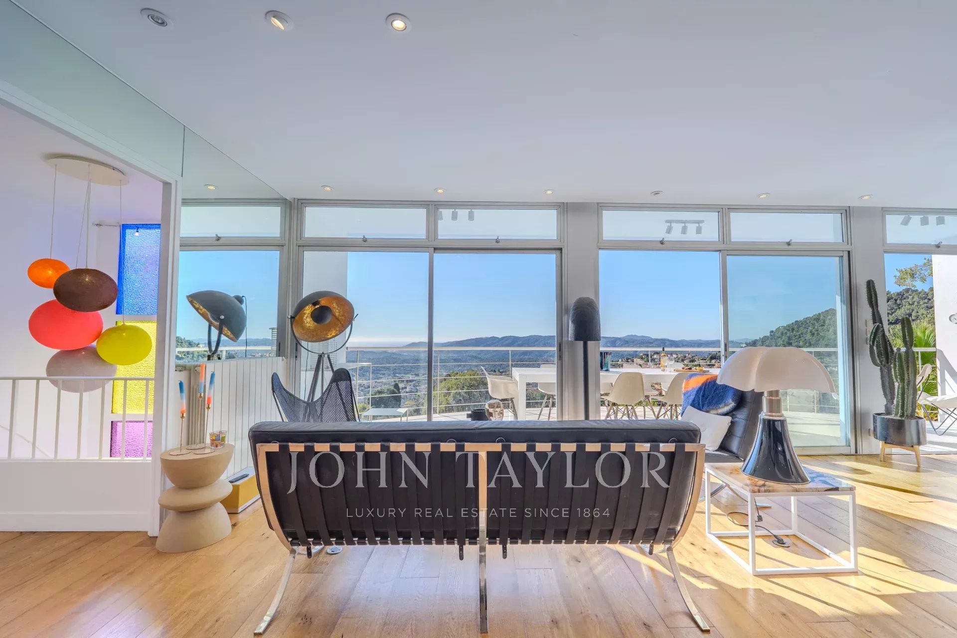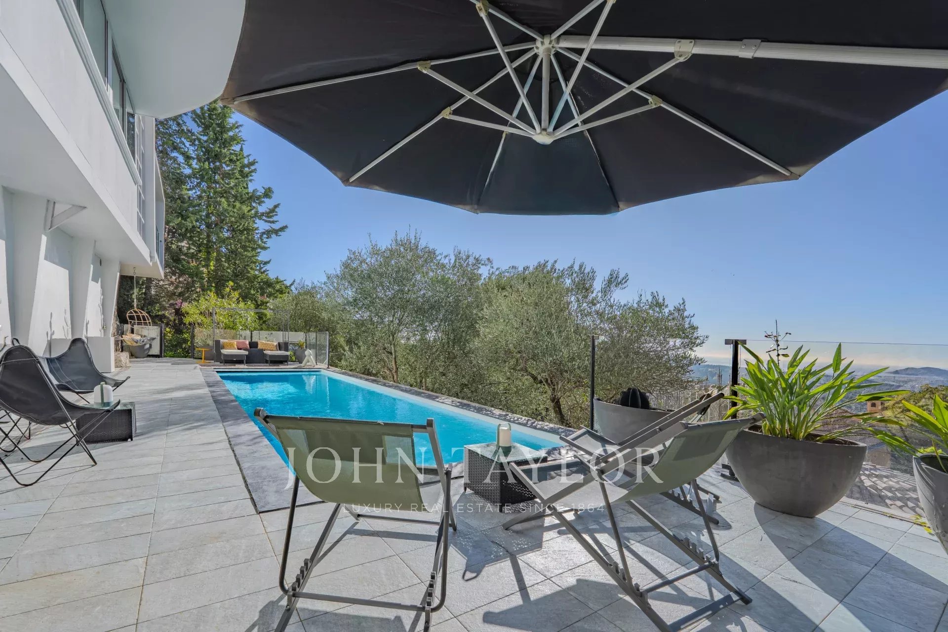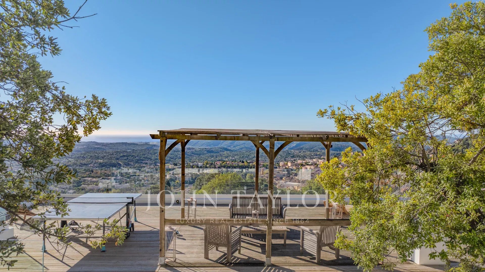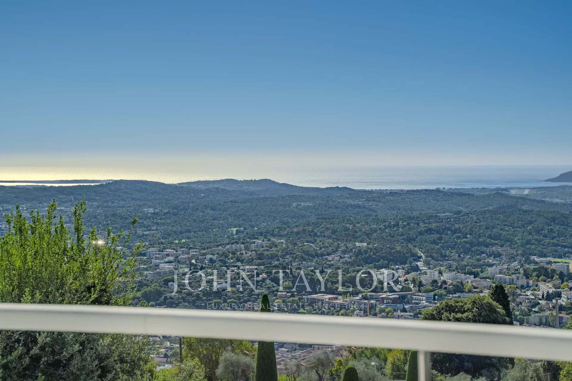 Diese moderne Villa, die auch möbliert erworben werden kann, eignet sich perfekt für eine Familie, die eine spektakuläre Aussicht, Ruhe, Licht und die Nähe zur Infrastruktur sucht: nur 3 Minuten von einer renommierten internationalen Schule, nur wenige Schritte von Golfplätzen, Tennisplätzen und anderen Freizeitangeboten und 40 Minuten vom Flughafen Nizza entfernt.
